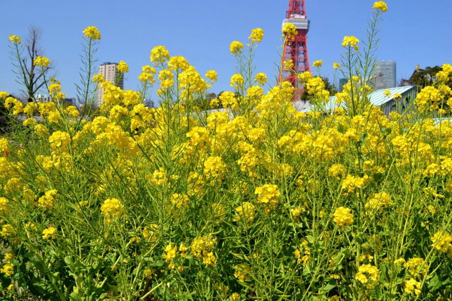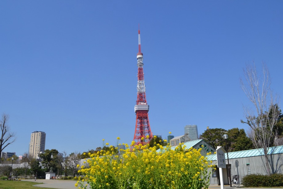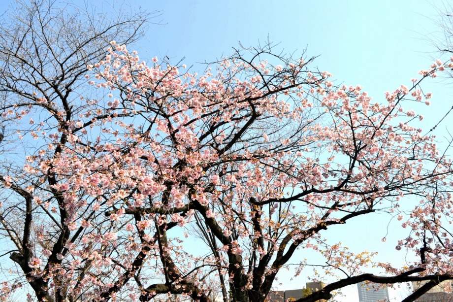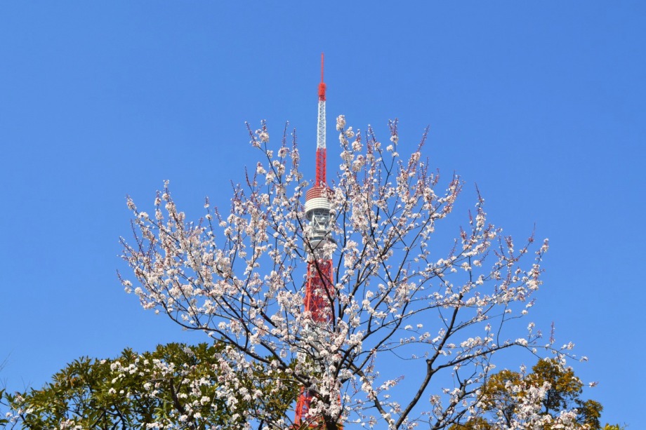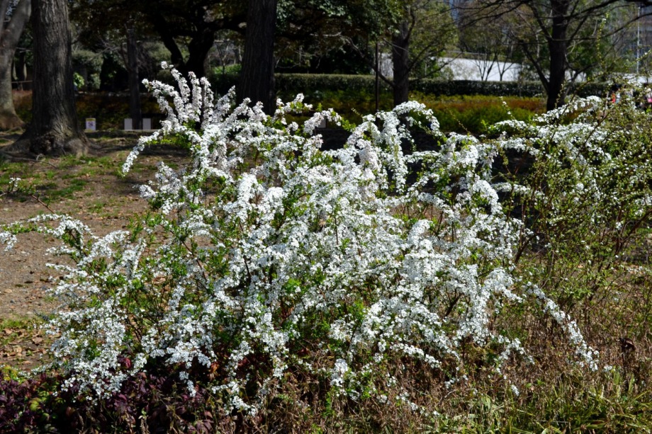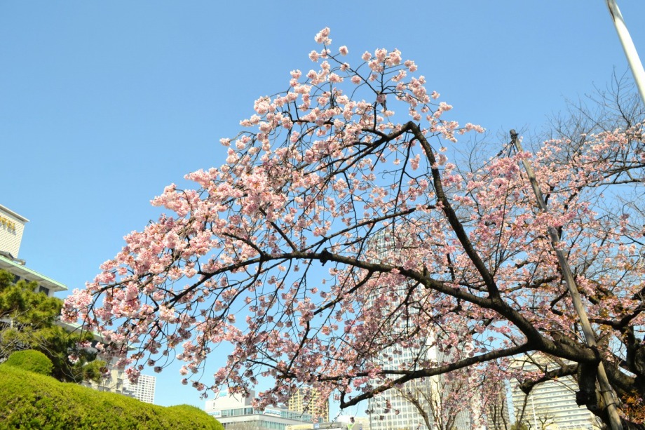 「一言」芝公園にはユキヤナギが見頃でした。東京プリンスホテルの庭にはエドヒガンザクラの大きな木が満開でした。