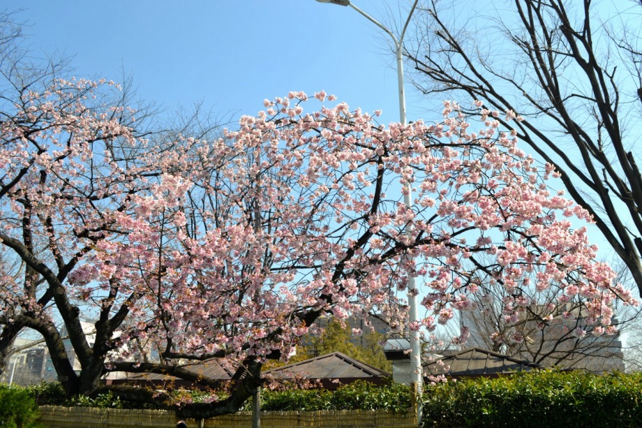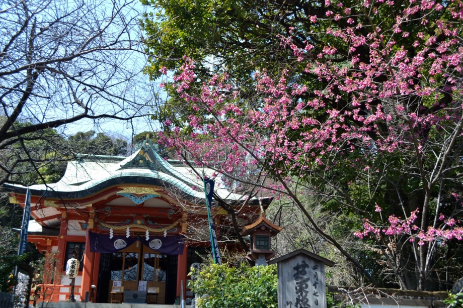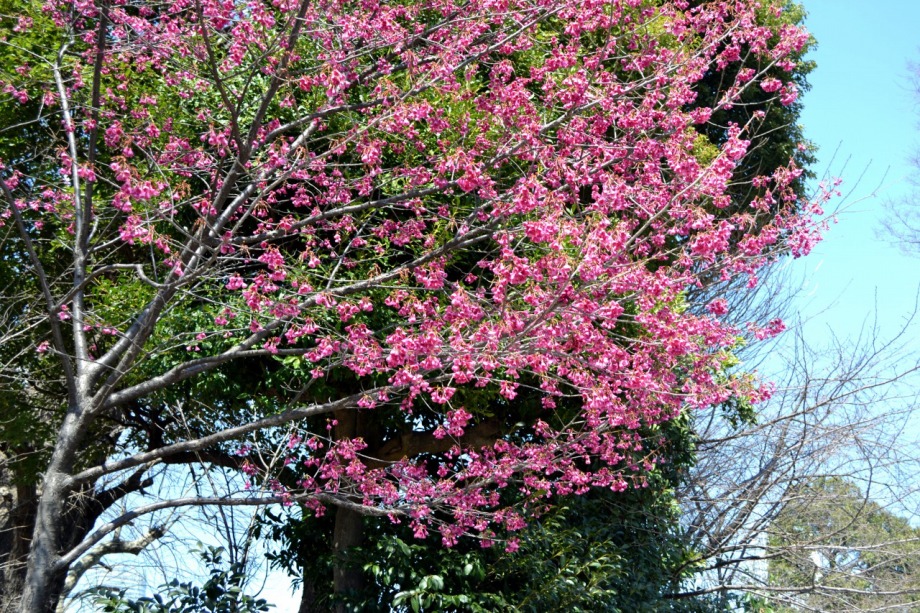 芝東照宮にはハナ桃の花が咲いていました。梅林にはヒヨドリがたくさん集まっていました。