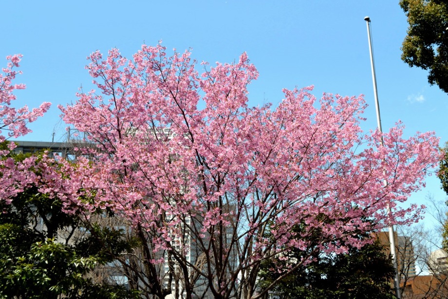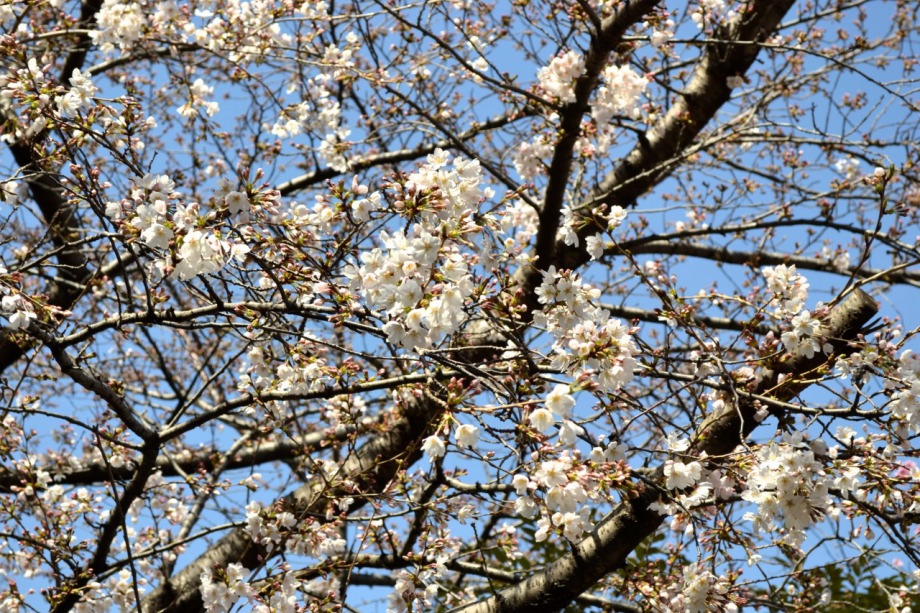 「一言」愛宕神社のお花の写真を撮りに行きました。愛宕神社の前の道にはネコヤナギがたくさん咲いていました。 愛宕神社の境内には濃いピンクの色の大きな木がいっぱい花をつけていて綺麗でした。白い花も咲いていました。 山の中腹には早咲きの桜が咲いていました。