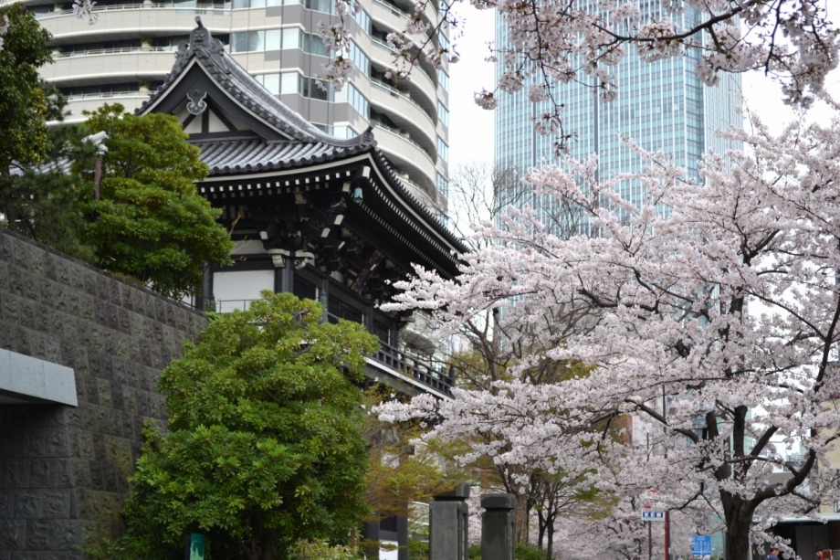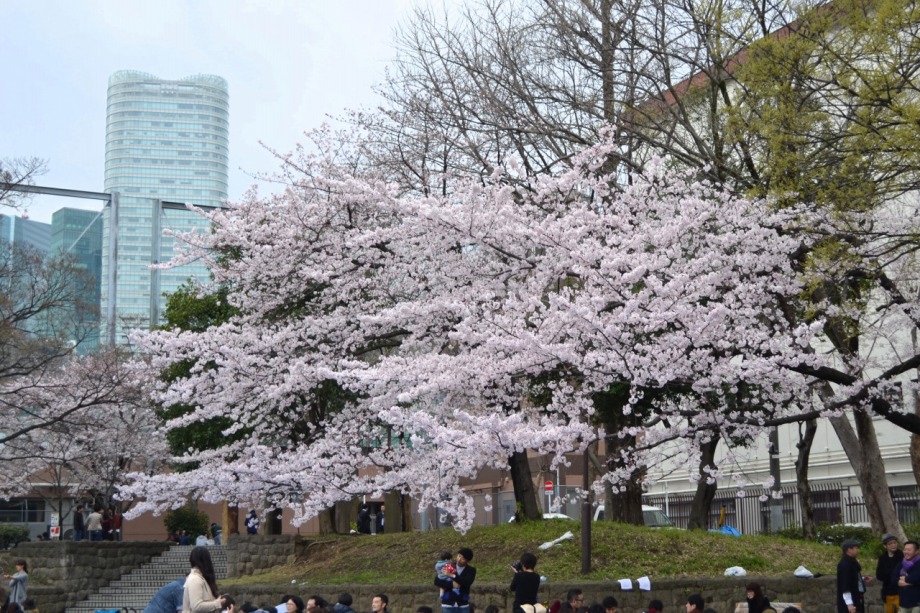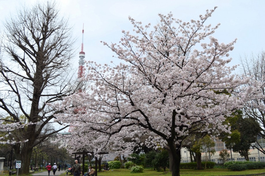 「一言」愛宕神社の前の通リに立派な桜並木が出来ていました。愛宕神社から愛宕グリーンヒルズの回りまで、長い桜並みで綺麗です。 芝公園の入り口にも桜の花が咲いていて、東京プリンスホテルの回りまで、桜の木がつながっています。芝公園の入り口には チューリップの花が咲いていました。芝高の横の広場にも大きな桜の木が多く、花見をする人がたくさんいました。