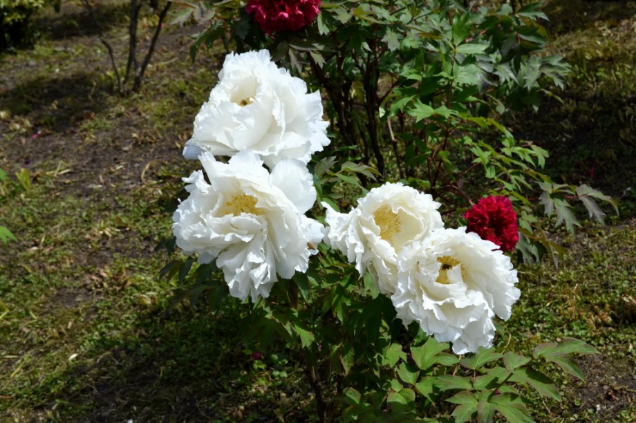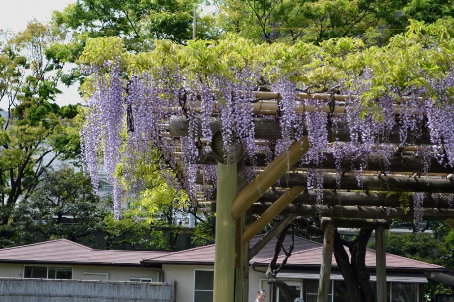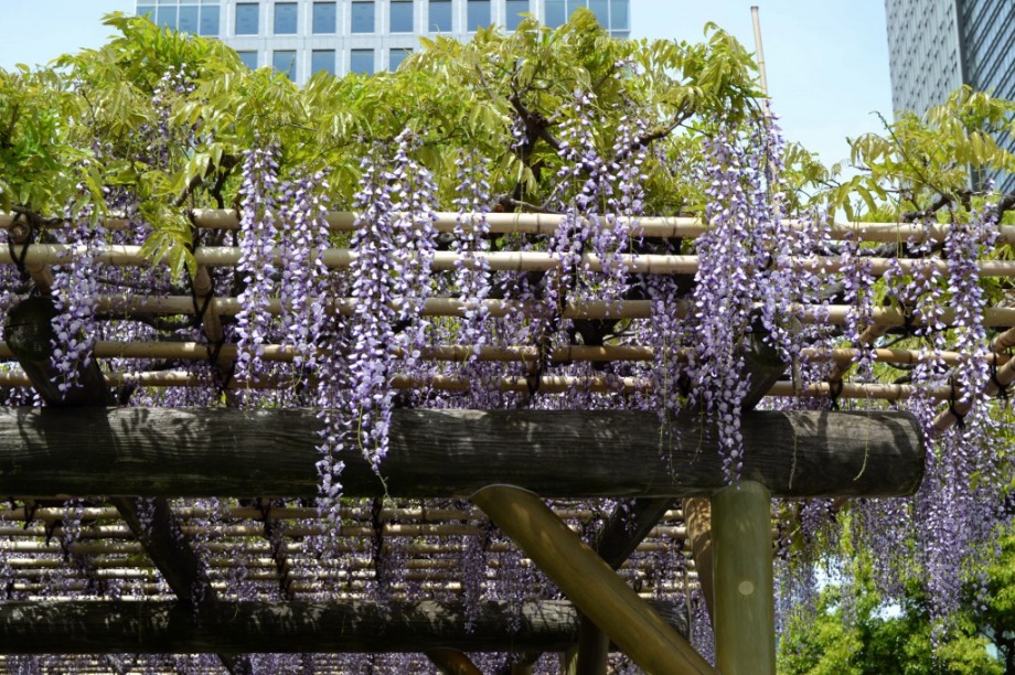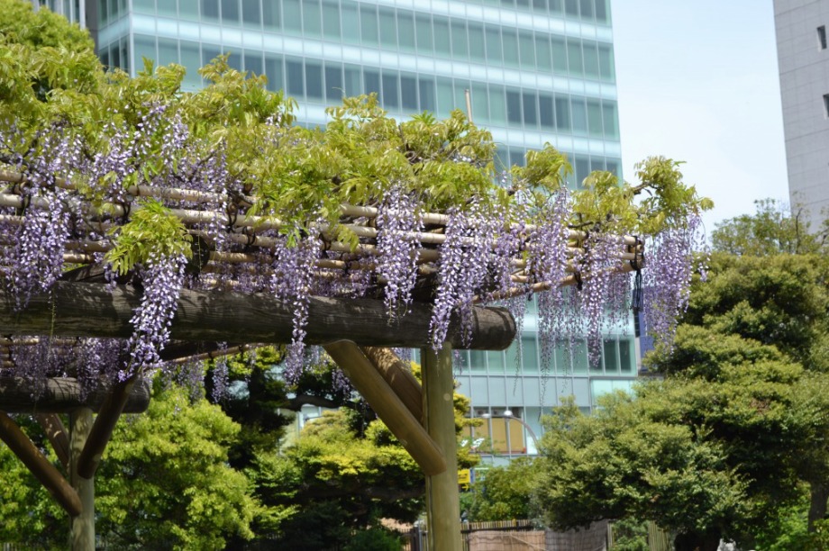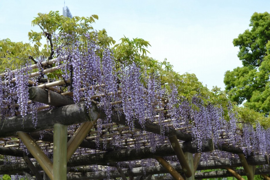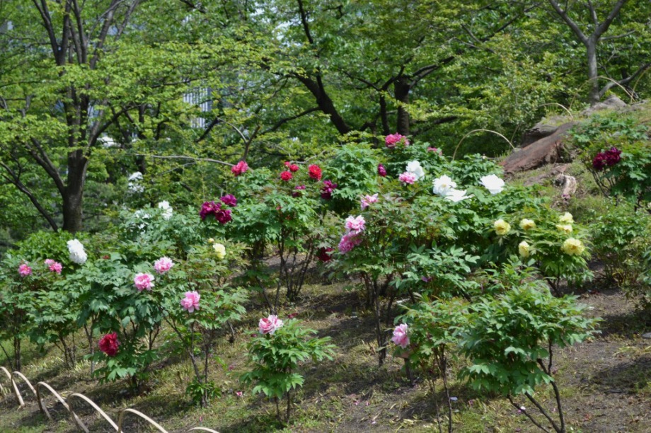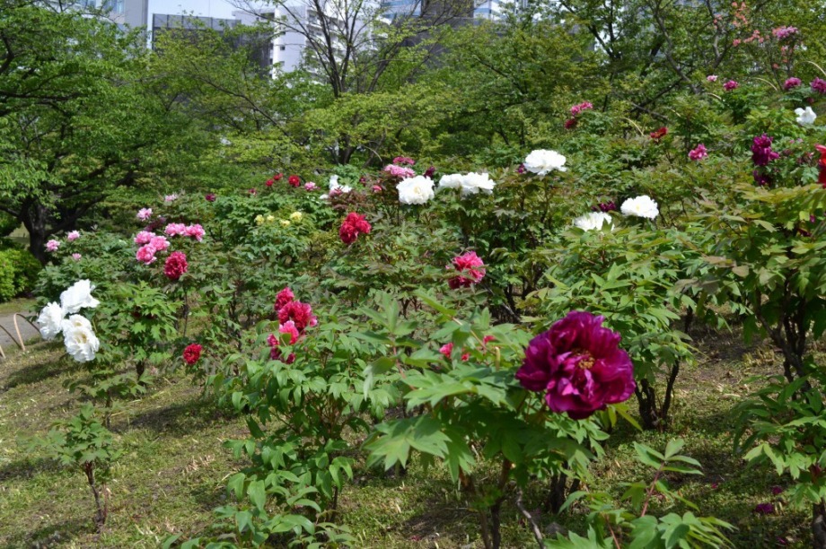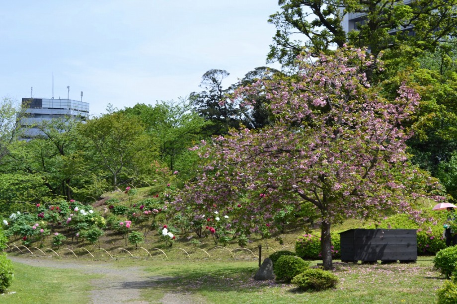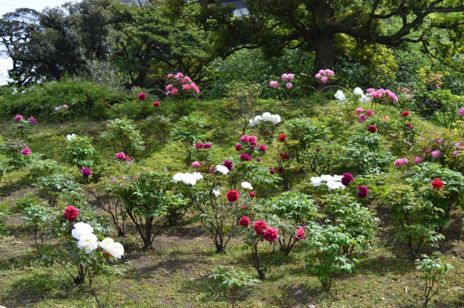 「一言」旧芝離宮に行くと牡丹と藤が見頃と書かれていましたので、入ってみました。大きな藤棚があり、藤の花が咲いていました。藤の花が かなり長くなっていて見頃という感じでした。牡丹は奥の丘にあり、丘一面に植えられていました。既に見頃になっていましたが、丘の 中には入れませんので、遠くから見るという感じでした。あやめや八重桜、ハナミズキなども咲いていました。
