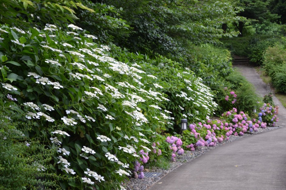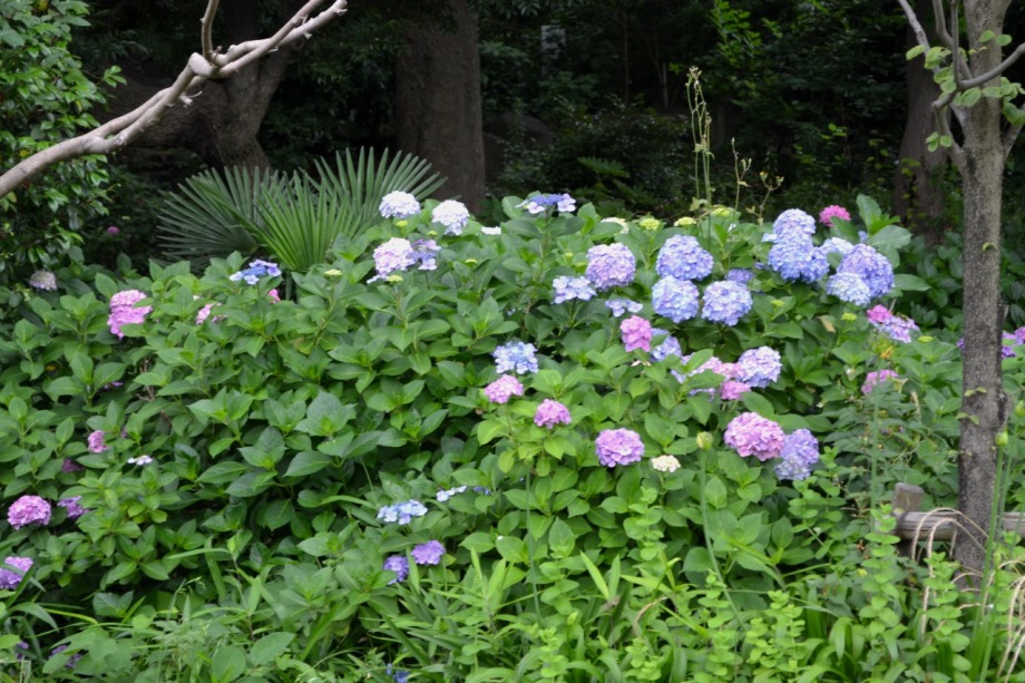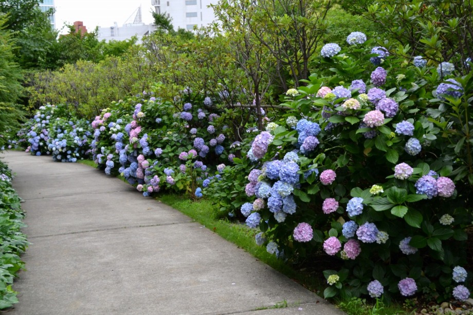 「一言」プリンス芝公園にお花を見に行きました。バラの花も残っていました。紫陽花は大きな木が色々な色の花を一杯につけていて綺麗でした。 人の背丈より高い紫陽花の木がたくさんあり、すべてがお花を一杯につけていんました。特に、色の濃いお花が多い感じがしました。 芝公園にも紫陽花が咲いていましたが、かなりお花が少ない感じがしましたが、紫陽花以外のお花が一杯咲いていました。