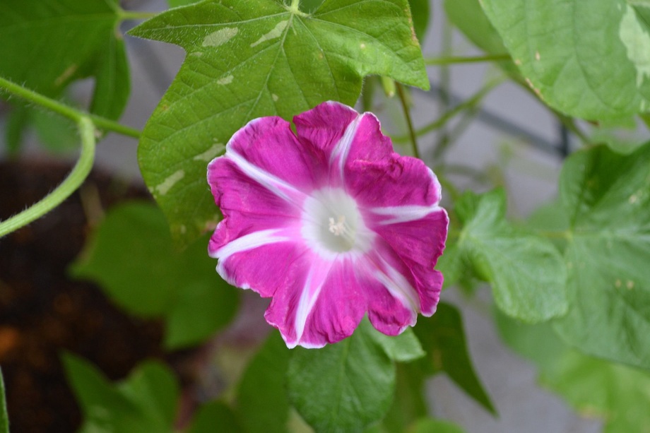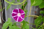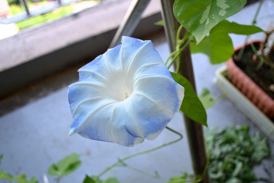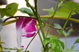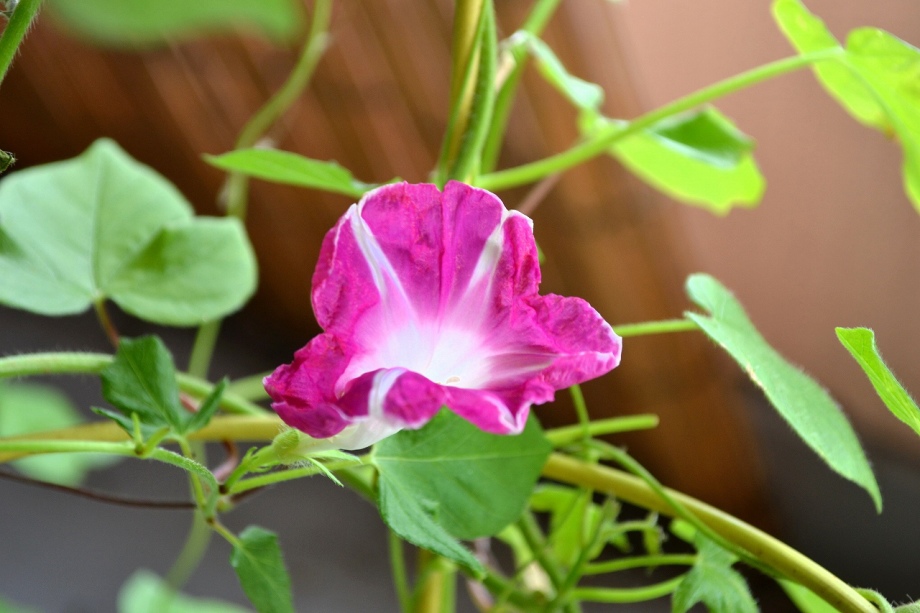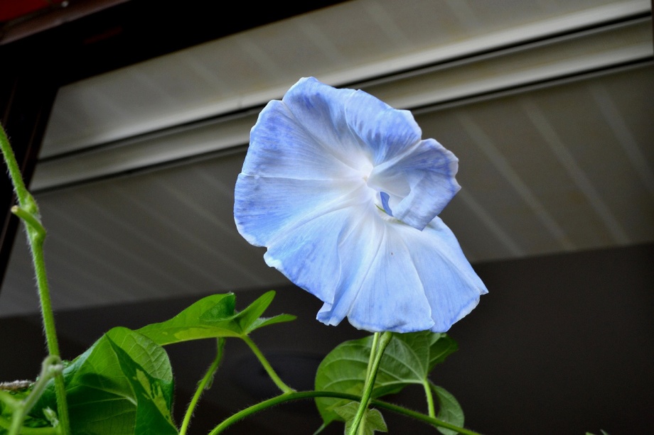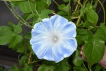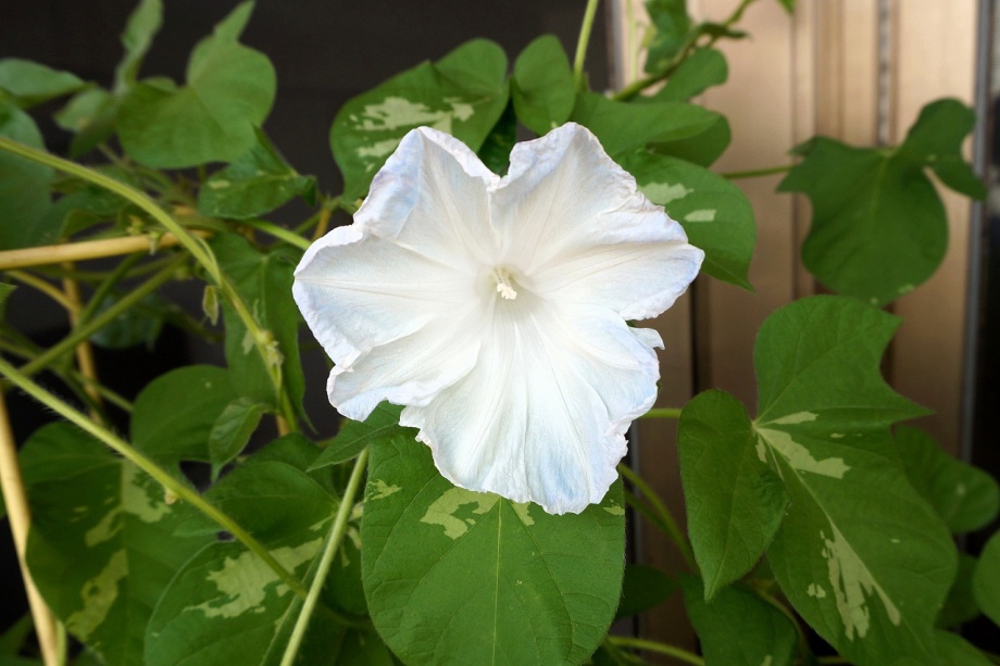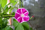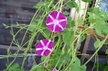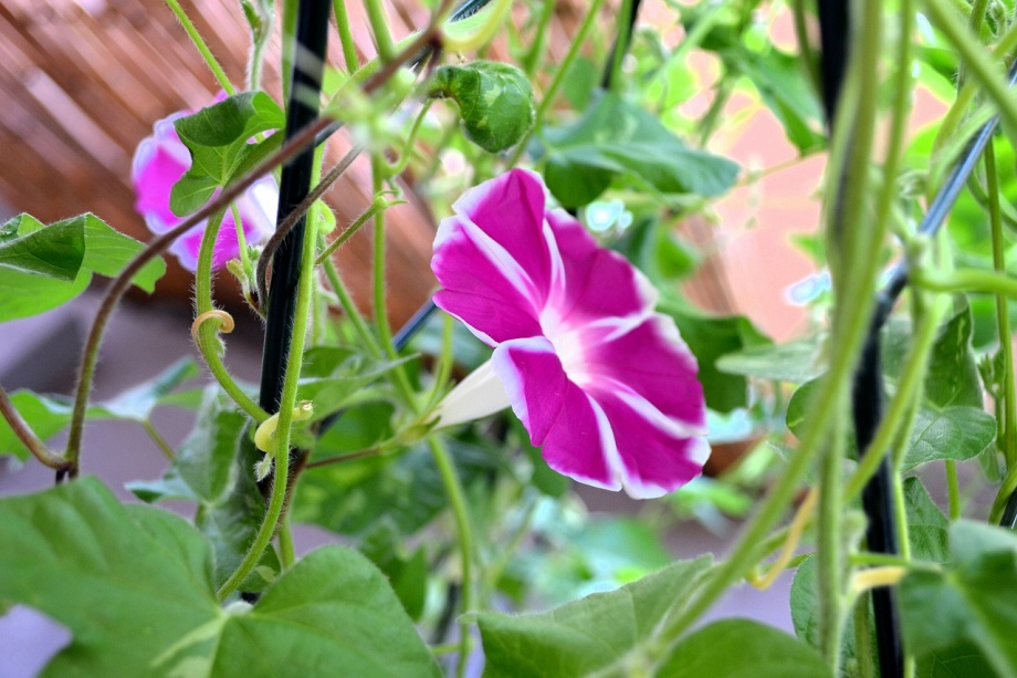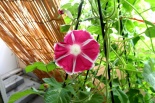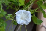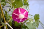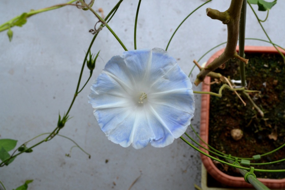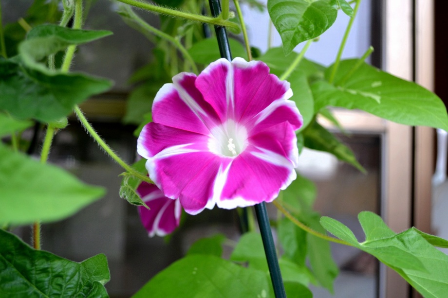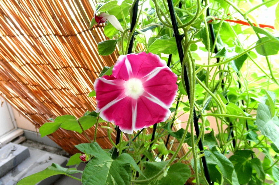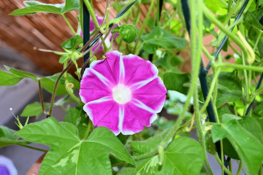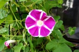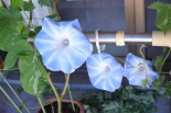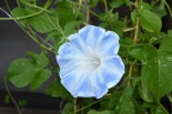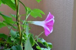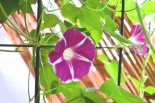 しましたので、朝顔が枯れるかと思いましたが、16日に花が咲きました。しかし、朝顔は傷んでいて、綺麗な花は少なくなっています。22日の台風の中でも一輪の