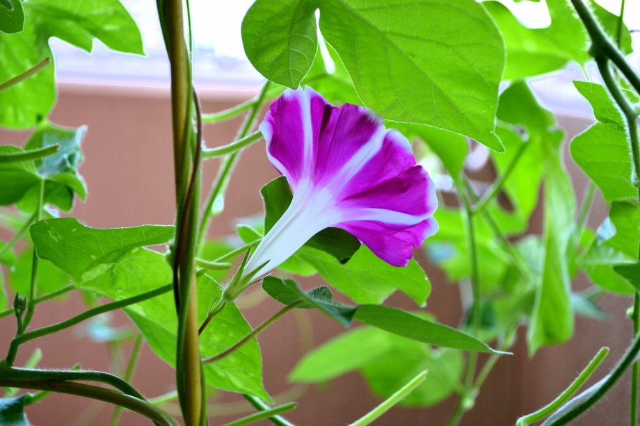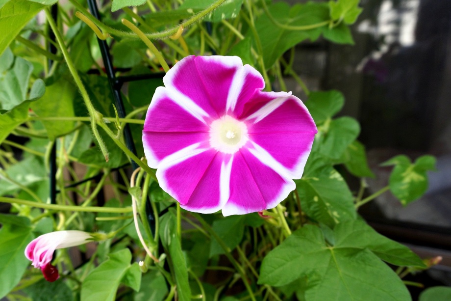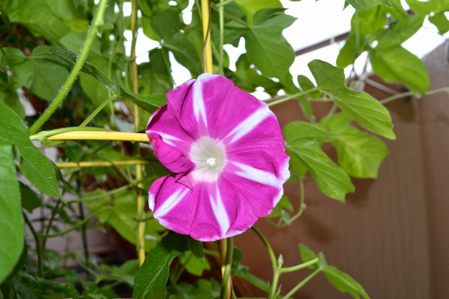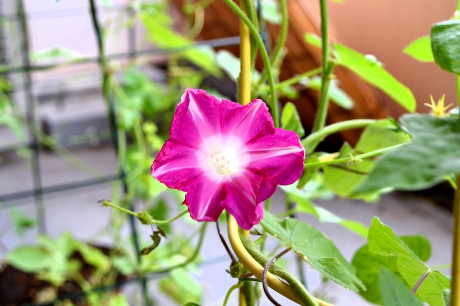 花が咲きました。朝顔の花は8月末まで一輪咲いたり、咲かなかったしました。花が咲いても綺麗な丸にはなりませんでした。