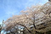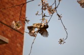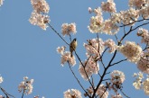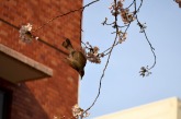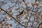 「一言」三田5丁目のバス停の近くに桜の綺麗なところがありますので、桜の花が咲く状況と飛んでくる鳥の写真を撮りました。