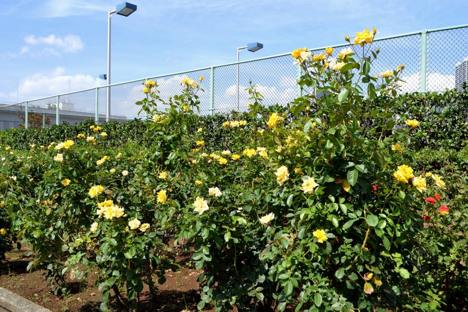 「一言」芝浦中央公園のバラの花を見に行きました。まだ、バラの花は咲いていませんでした。芝浦運動場のバラ園には黄色いバラが 中心にたくさん咲いていました。本格的に秋咲のバラが咲くのはこれからかも知れませんが、綺麗でした。ダリアの花も咲いていました。