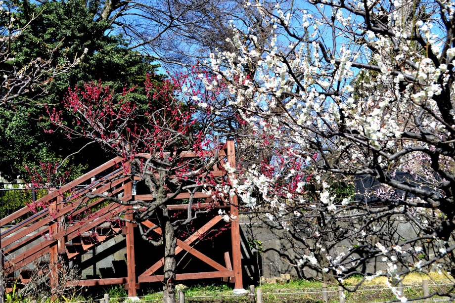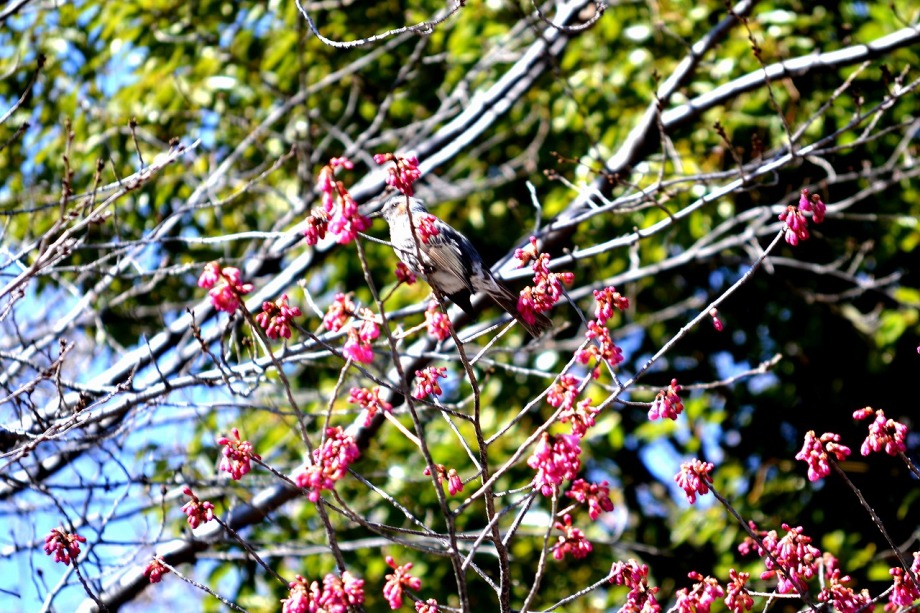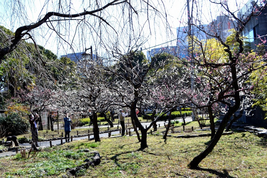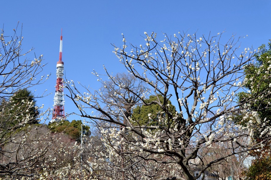 「一言」芝東照宮の寒緋桜が咲き出しました。芝公園の梅園は、白銀の花の銀世界と言われるように、rたくさんの白梅が花盛りになりました。 メジロがたくさん飛んで来ていて梅の花をついばんでいました。濃い赤い色の梅の花も咲いていました。外人の女性が着物を着て写真を 撮っていました。 、白梅