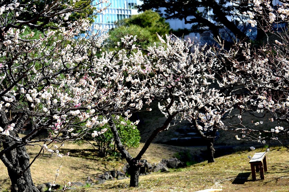 「一言」旧芝離宮に梅の花が見頃になりました。白梅と紅梅が一つの枝から咲いている思いのままにも見頃です。福寿草も見頃です。 池には鴨がたくさん泳いでいました。特に、小さな鴨がたくさんいました。鷺も鴨と一緒に休んでいました。