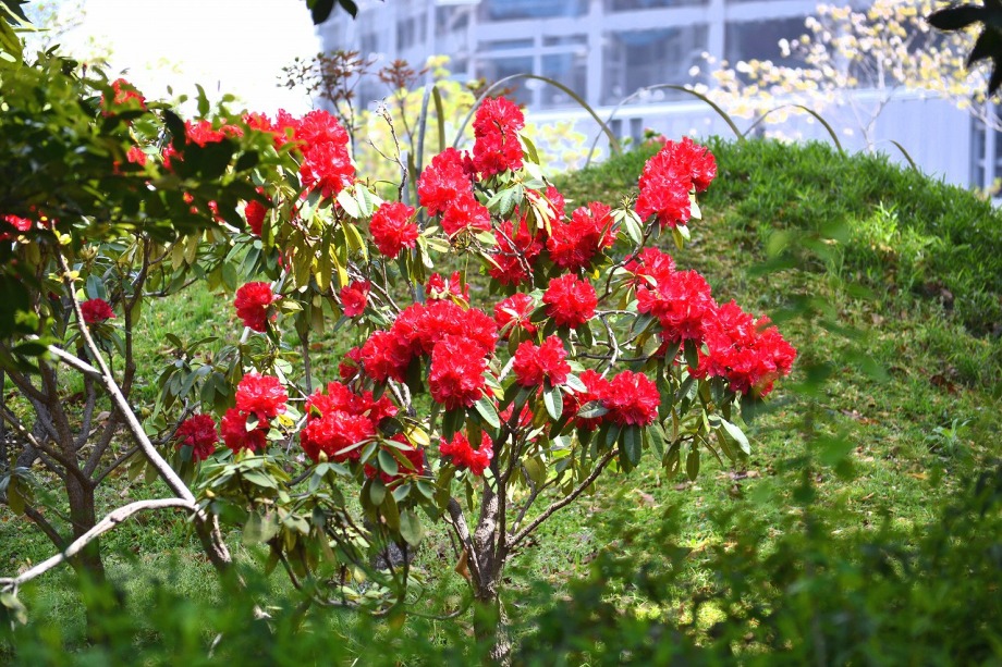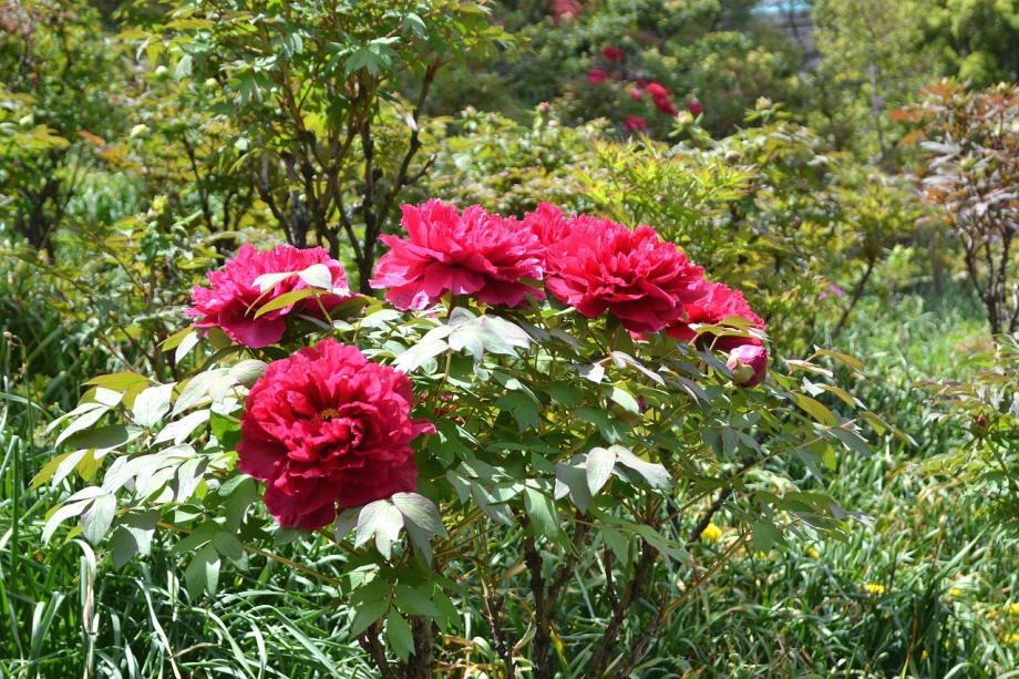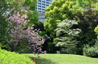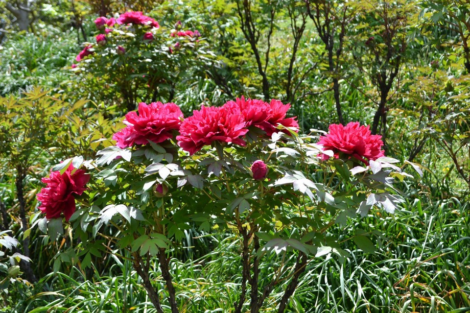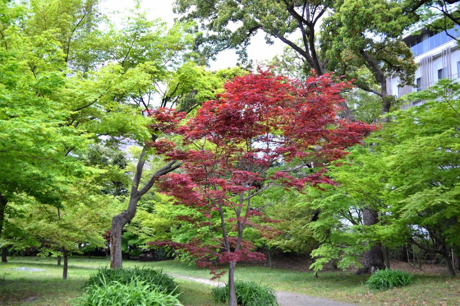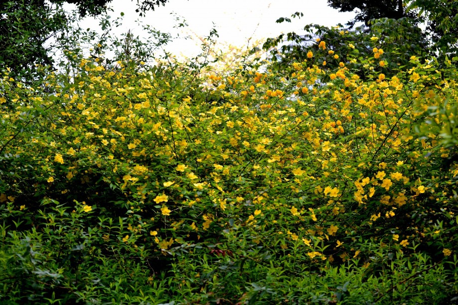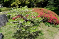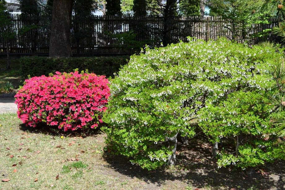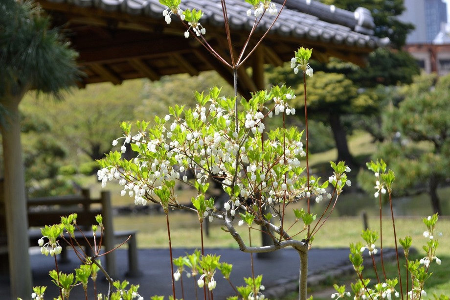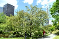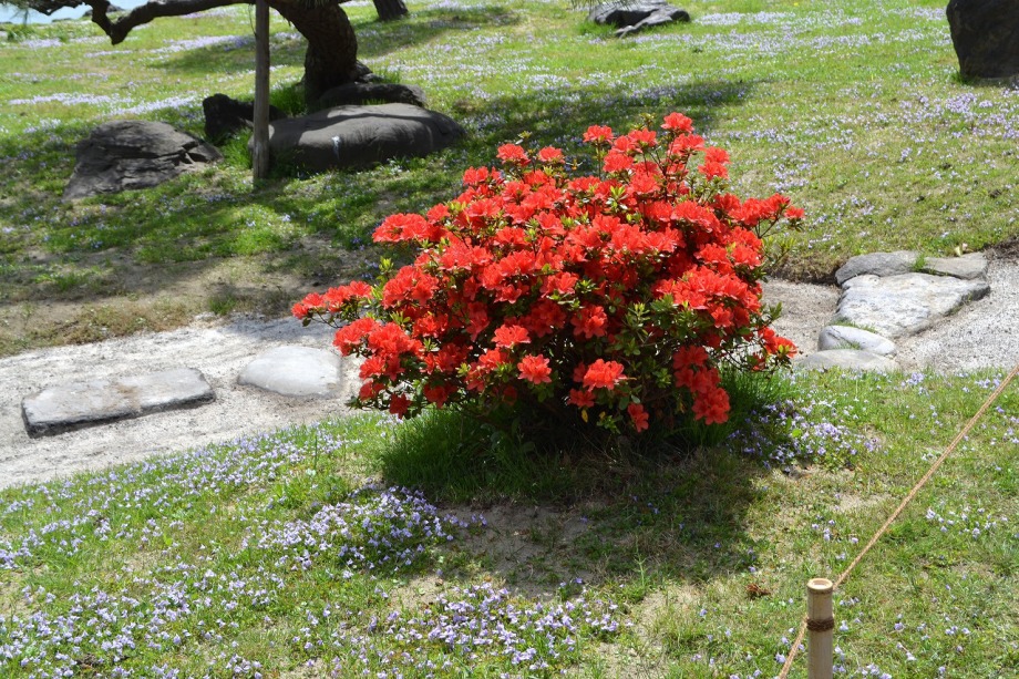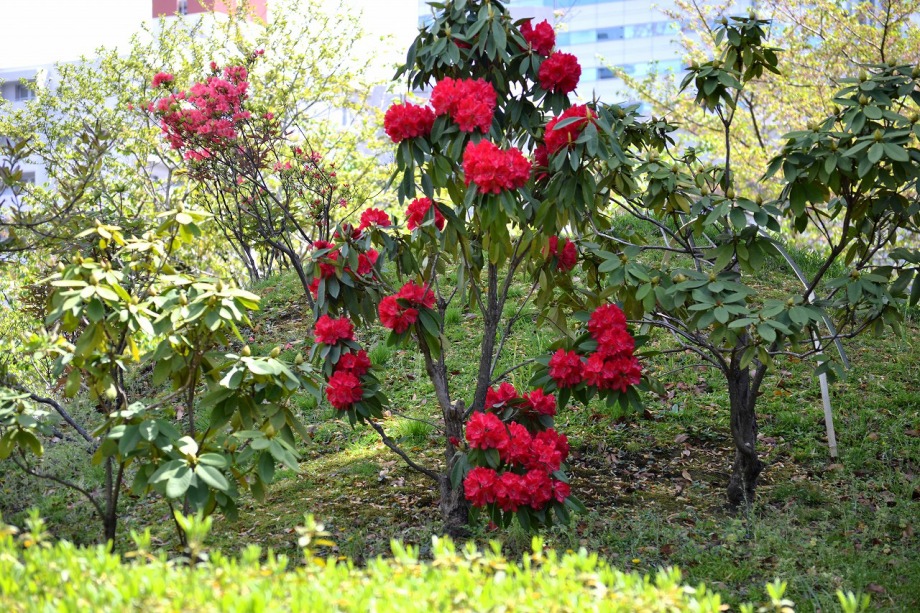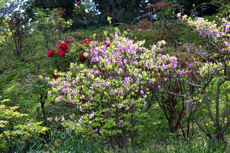 「一言」芝離宮のソメイヨシノは散りましたが、八重桜やボタン桜、御衣黄桜などが満開です。丘のボタンも咲き出しました、 ボタンの奥に植えられているたくさんの山吹が満開で綺麗です。ツツジもあちこちで咲いています。モミジのッ新緑が綺麗です。 むらさきしらんもまとまって咲いています。