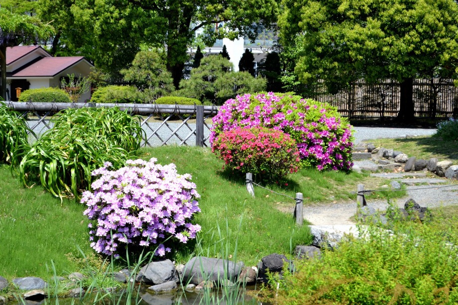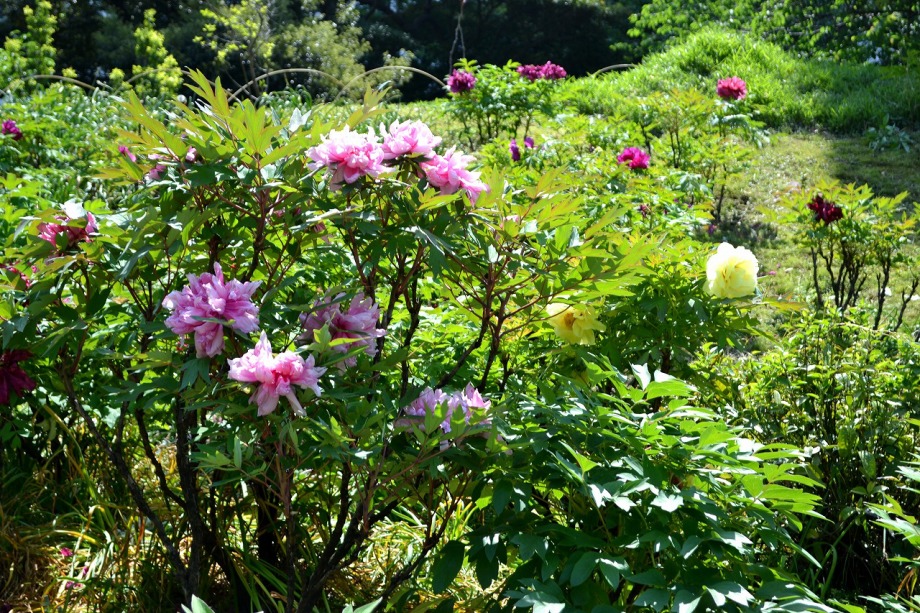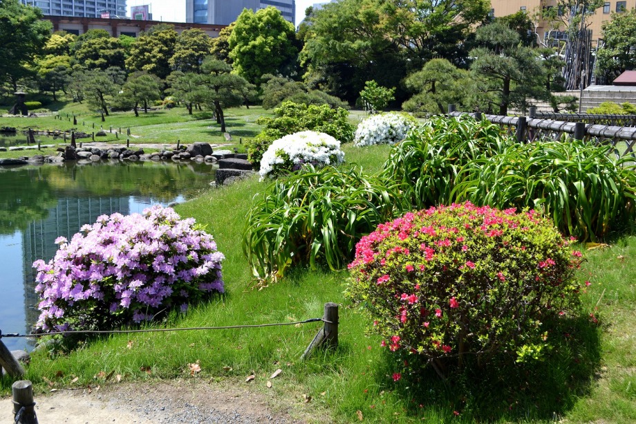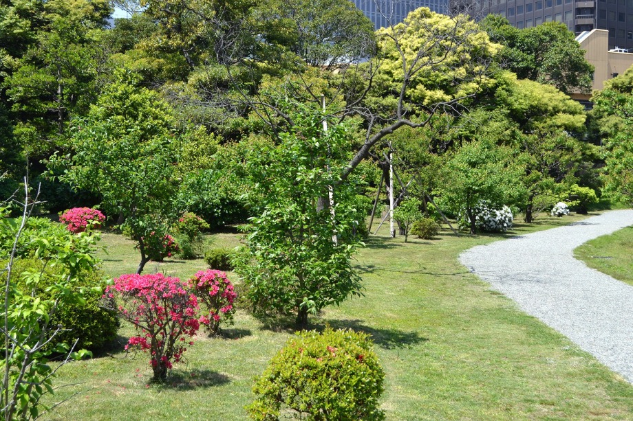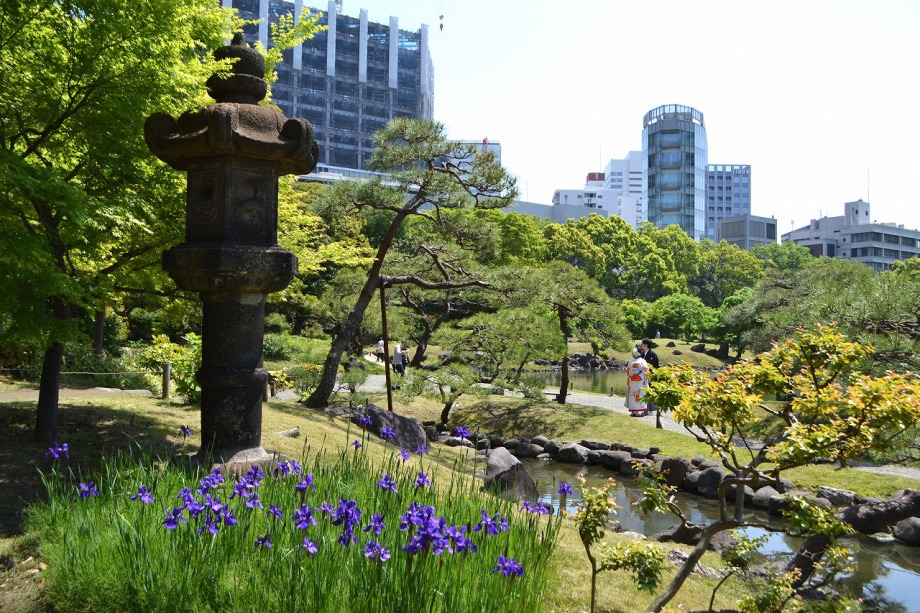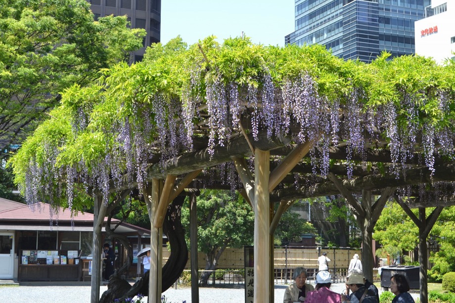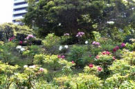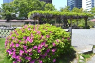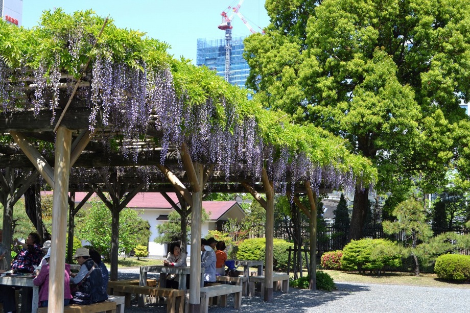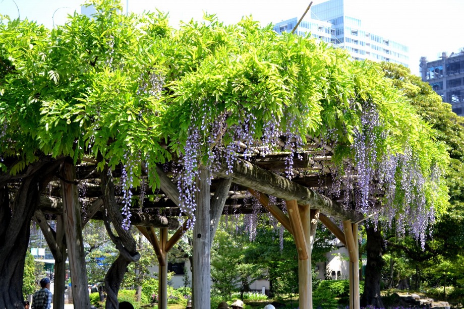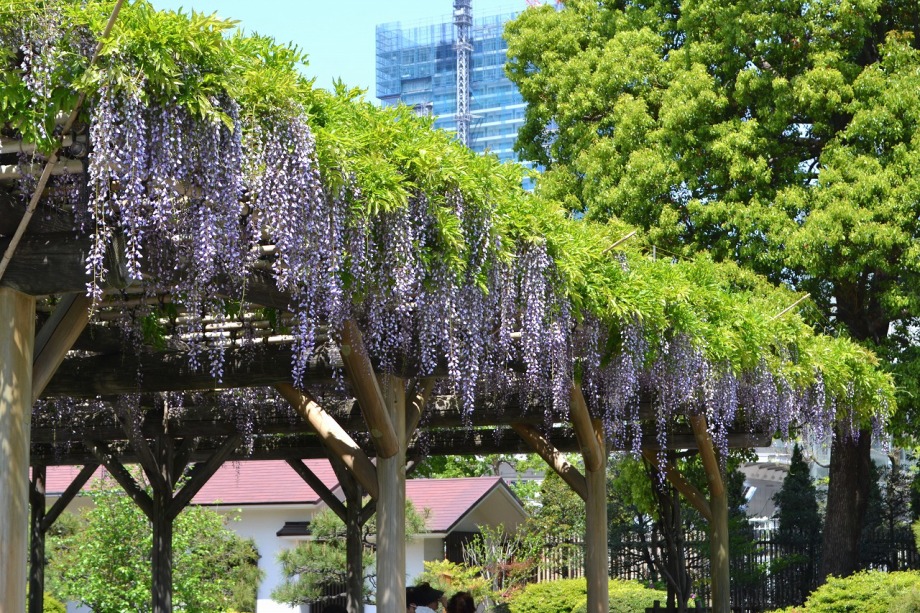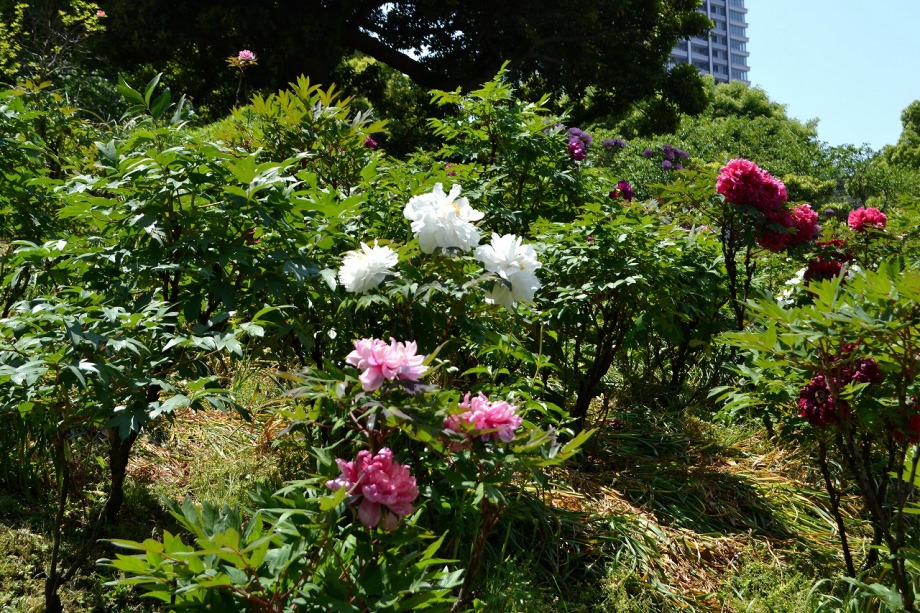 「一言」旧芝離宮の藤の花が見頃になっています。今年は非常に早く咲いた感じです。アヤメやムラサキシラン、シャリンバイなど色々な花が 咲いています。まだ、ハナミズキも白い花をつけています。牡丹の丘には色々な色の牡丹が咲いて楽しめます。形の良いツツジがお庭 のあちこちに再提案す。ハルモミジも新緑に合って綺麗です。