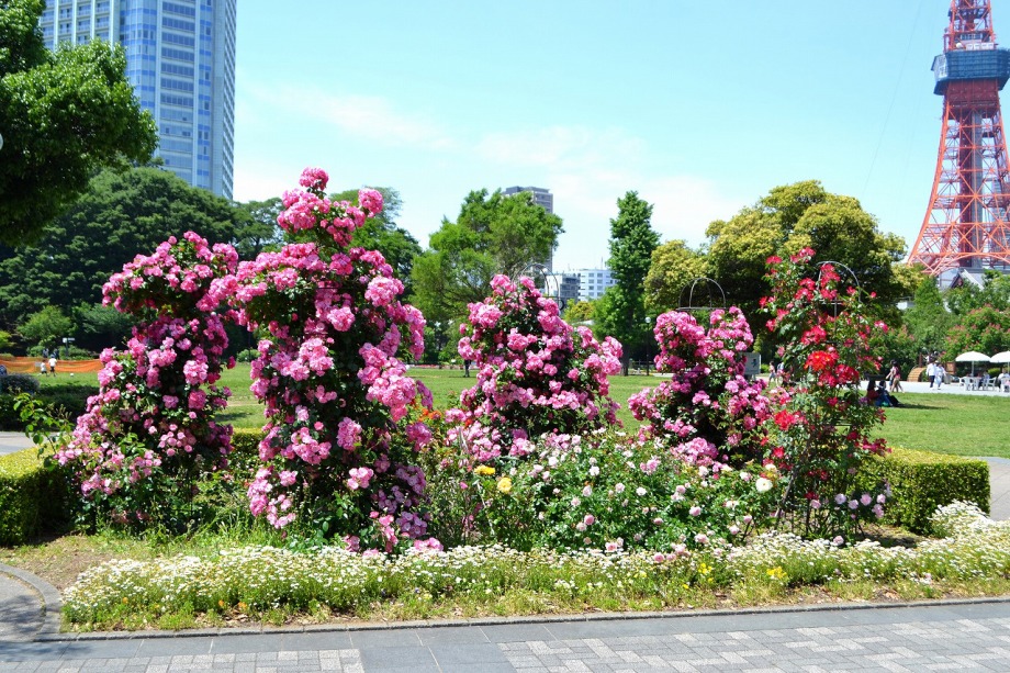 「一言」芝公園にはバラの塔を飾っていました。東京タワーを背景に多くの人が写真を撮っていました。芝プリンス公園にはバラが たくさん咲いていました。先週も写真を撮りましたので、今日は綺麗な花に絞って写真を撮ったつもりでしたが、写真が非常に 多くなり、絞るの苦労しました。