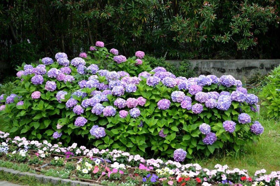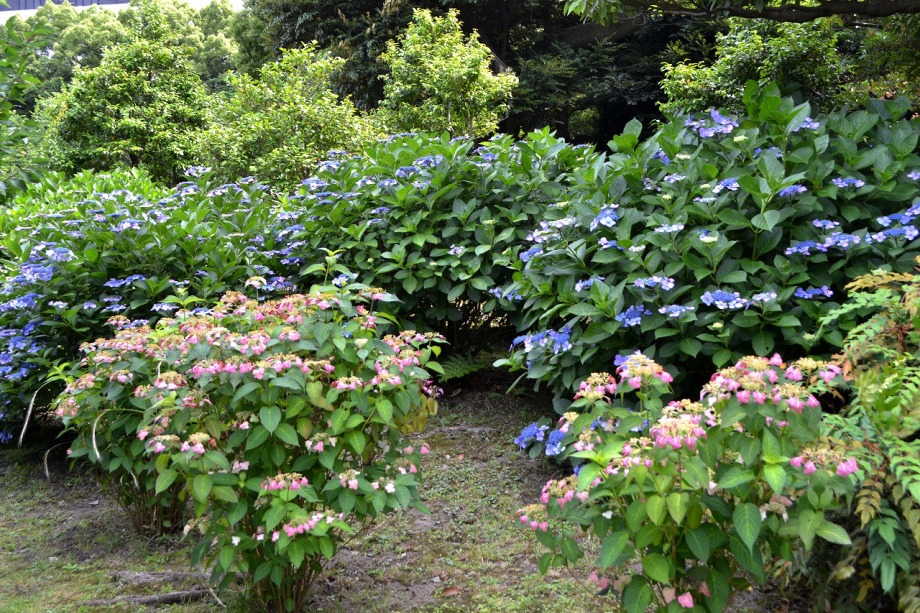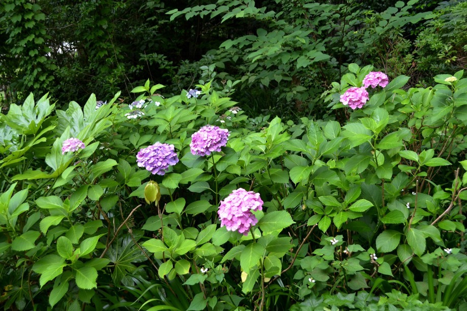 色々な種類のアジサイが咲いています。夾竹桃も咲き始めました。