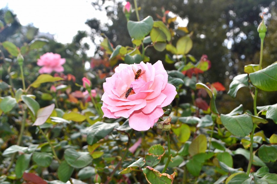 「一言」芝プリンス公園に遅咲きのバラの花が本格的に咲き出しました。ピンク色や黄色、白い花や真っ赤な花など色々な色の花ががたくさん 咲いていて見ていると楽しくなります。芝公園の増上寺の銀杏も黄葉し始めました。ここの銀杏は先日の台風の塩害に耐えた感じです。