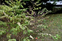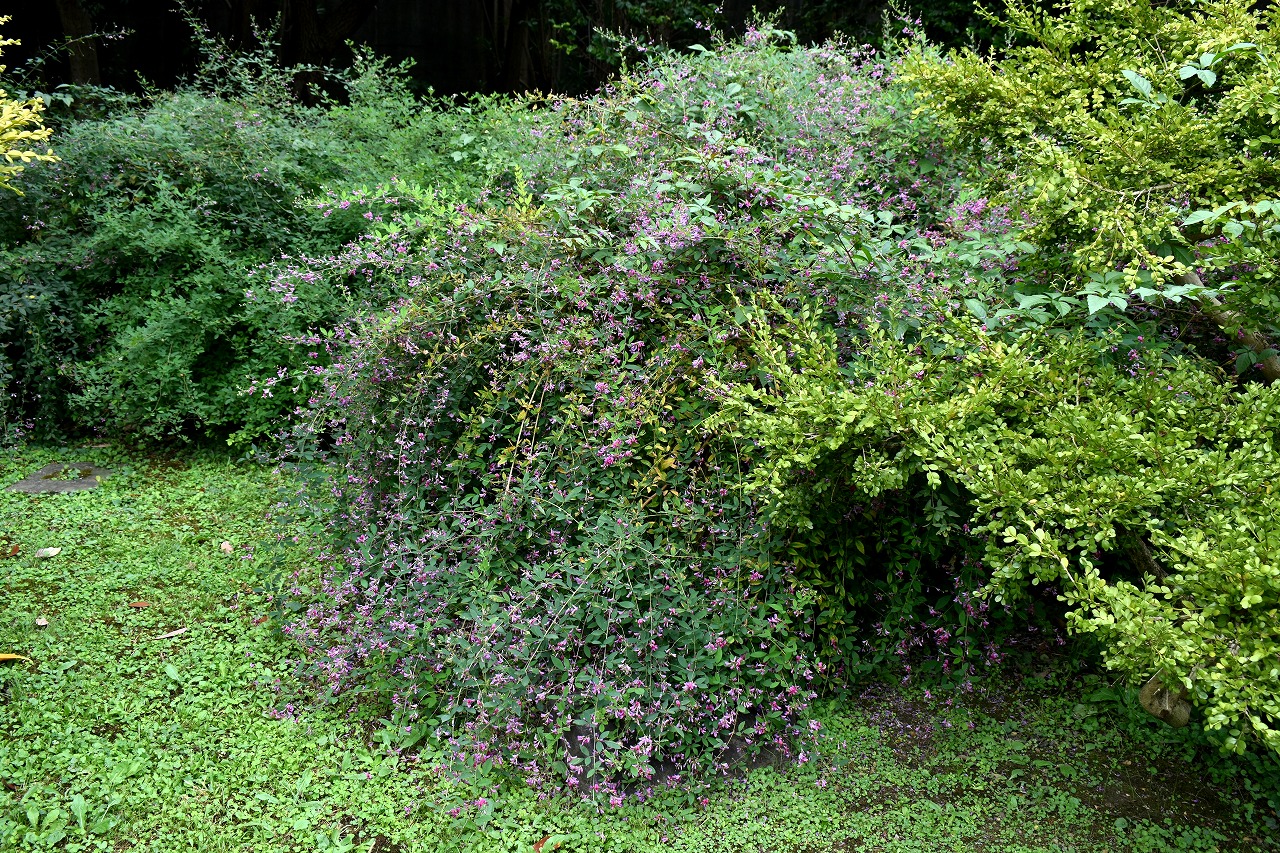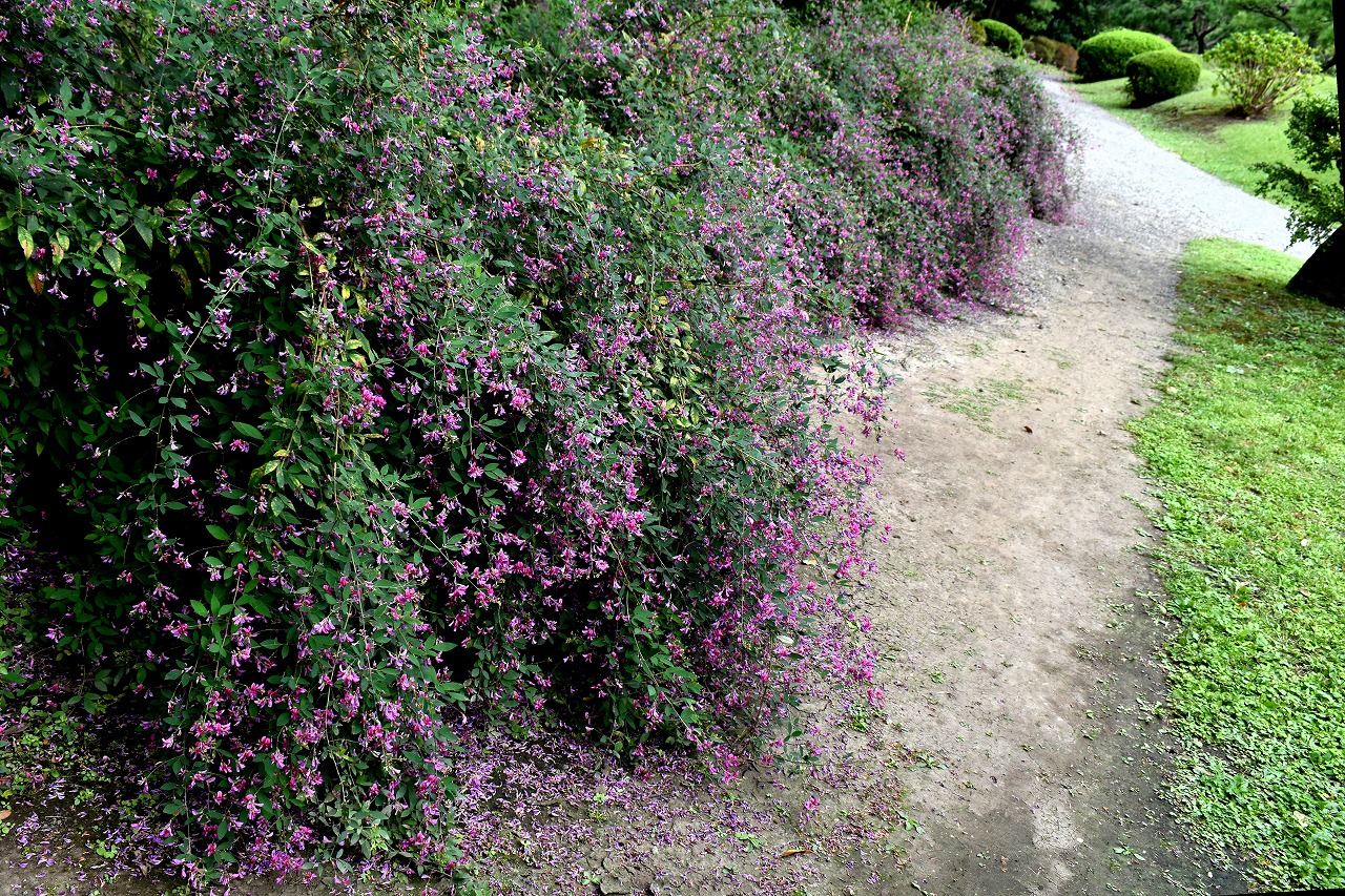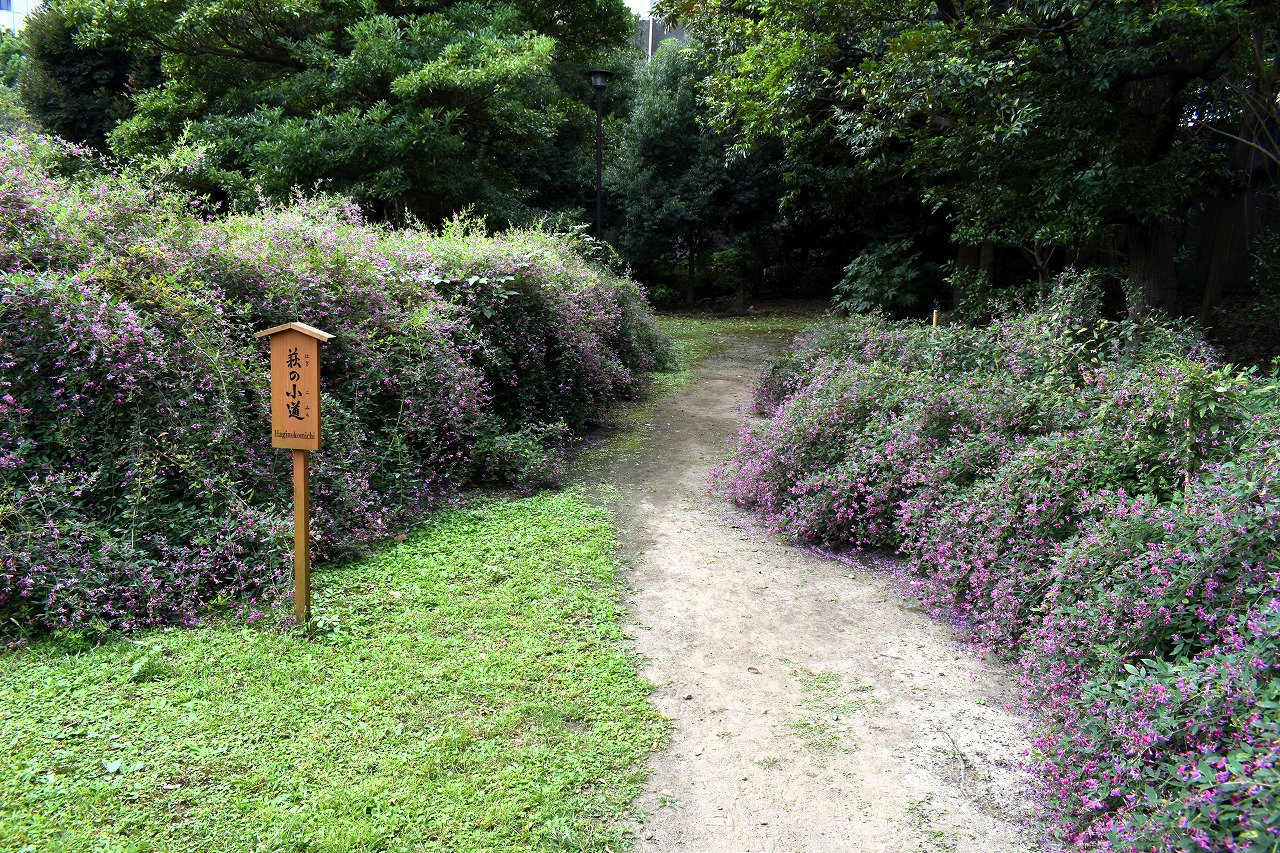 「一言」芝公園や旧芝離宮に萩の花が咲き見頃です。芝公園のピンク色の花の花は峠を越えつつありますが、白い花は今上ごりです。 旧芝離宮の萩の花は大きな木にたくさん咲いて見事です。入口の桔梗も花の数は少なくなっていますが綺麗です。入口の前には シュウメイギクが咲き出し綺麗です。シャリンバイの花も咲いています。