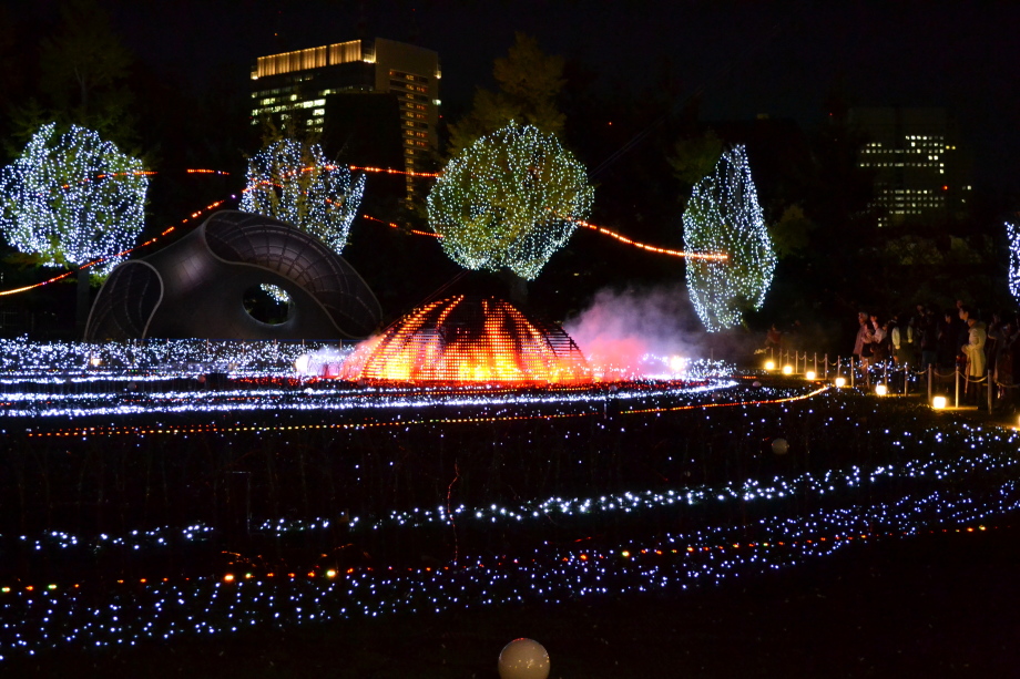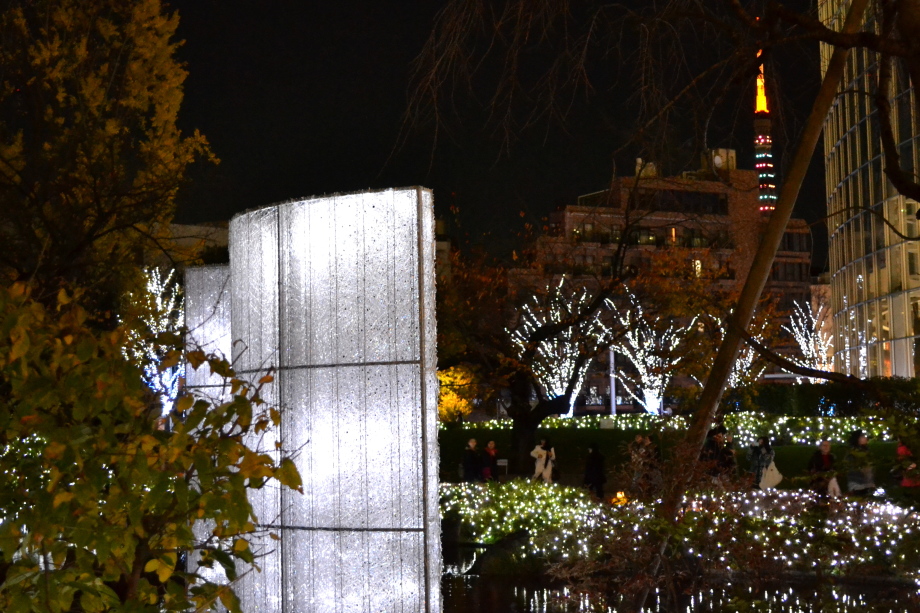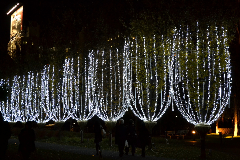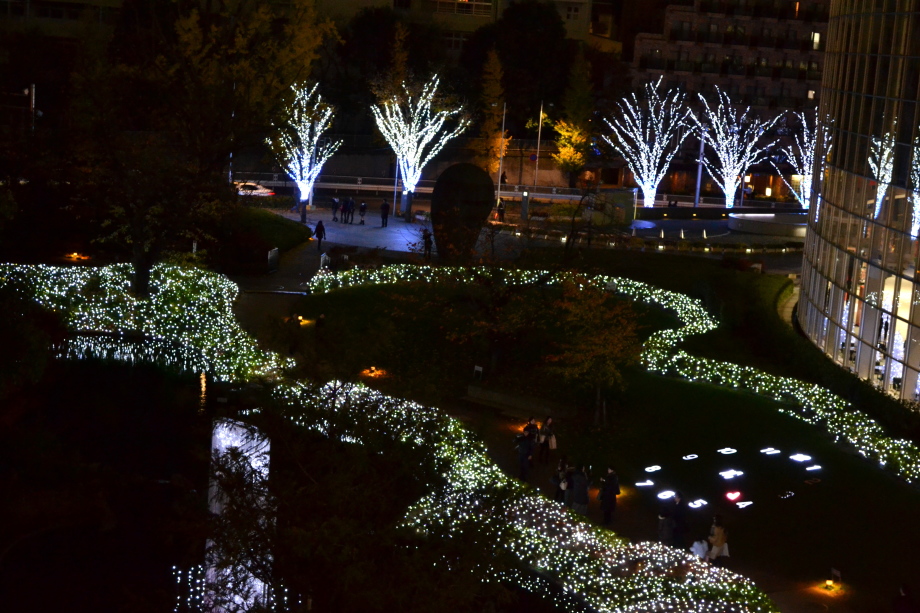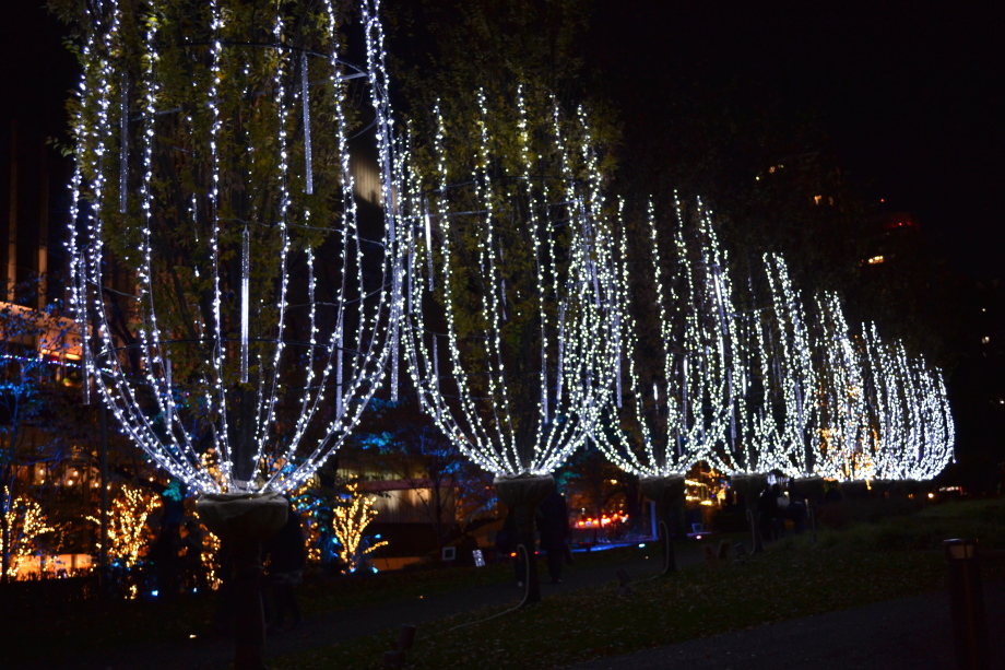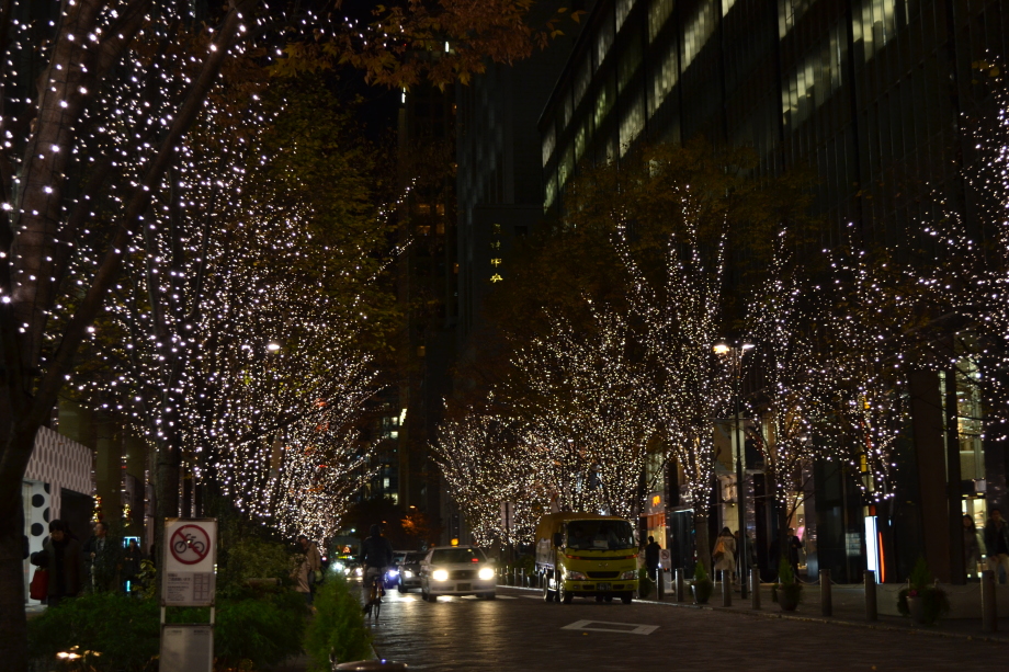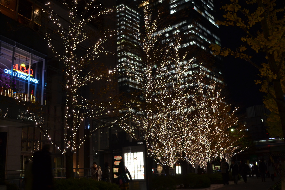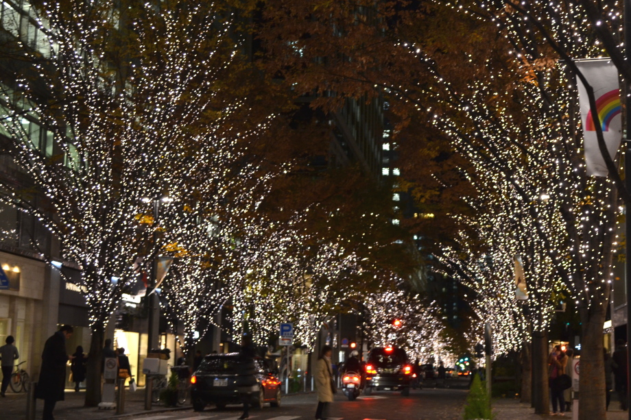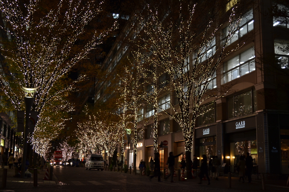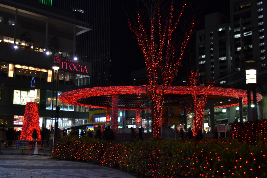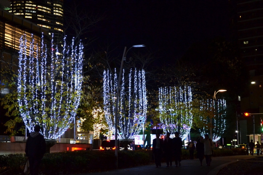 12月に入り、年末も近づいていましたので、都心のイルミネーションを撮影に行きました。 最初に新橋の機関車、次が汐留、更に、銀座に行きました。有楽町の駅前は赤のイルミネーションです。 丸の内のイルミネーションや丸ビルのクリスマスツリーもきれいでした。 その後、六本木ミッドタウンのイルミネーションは大きく、地球の起源のテーマで大規模でした。 最後は六本木ヒルズの細川庭園やけやき坂のイルミネーションです。色々行ったので、疲れました。