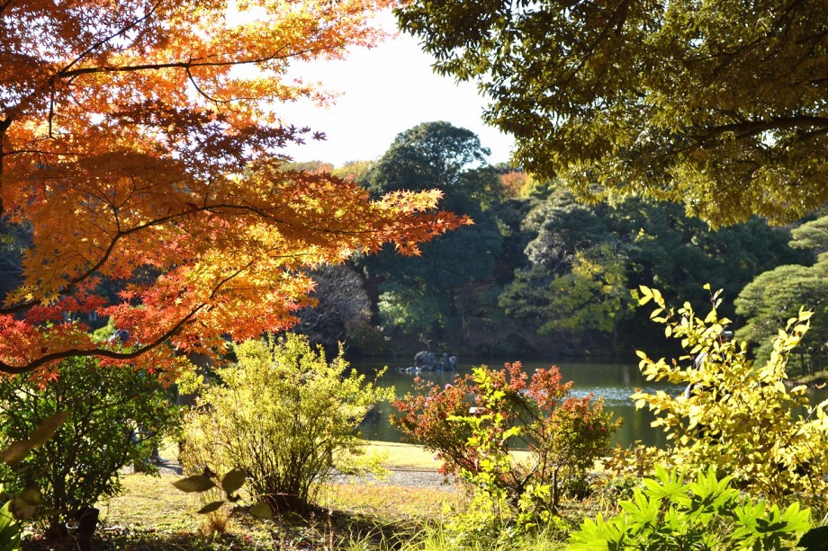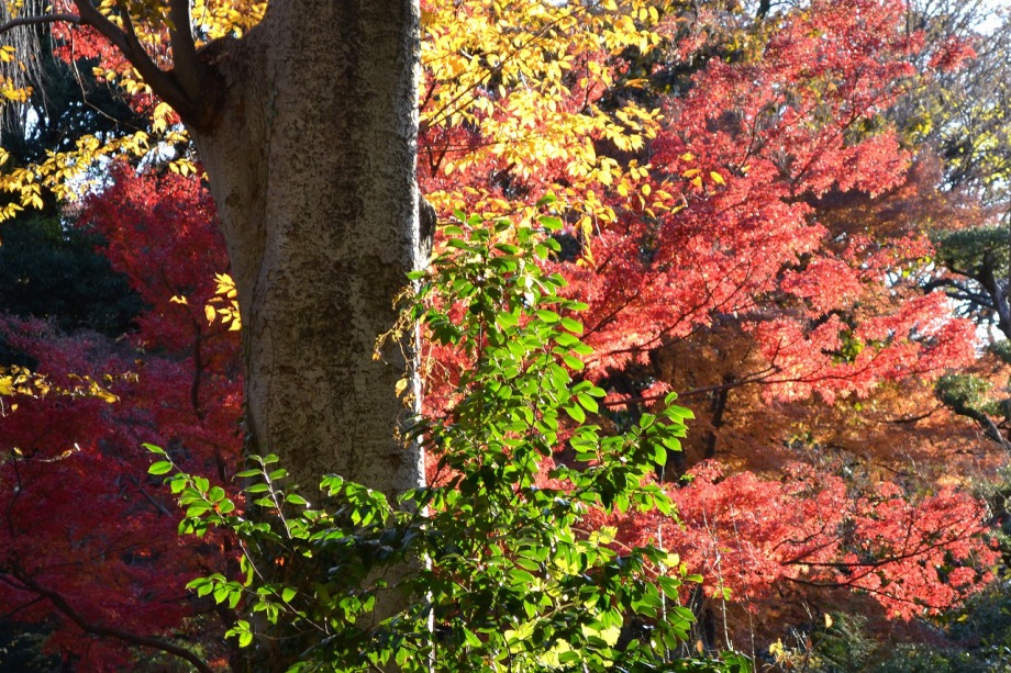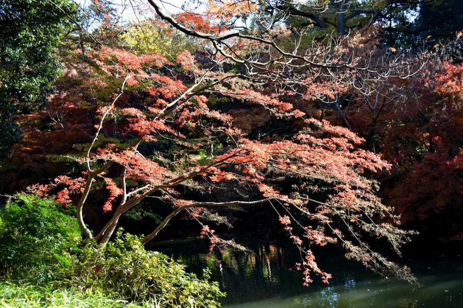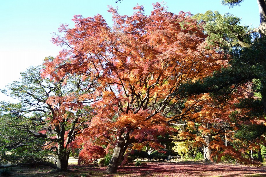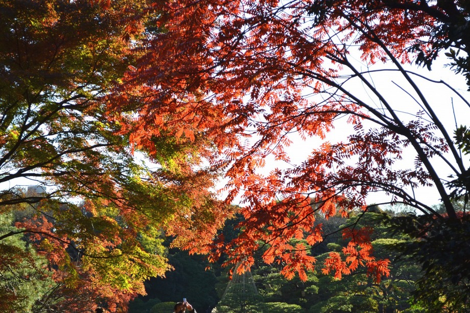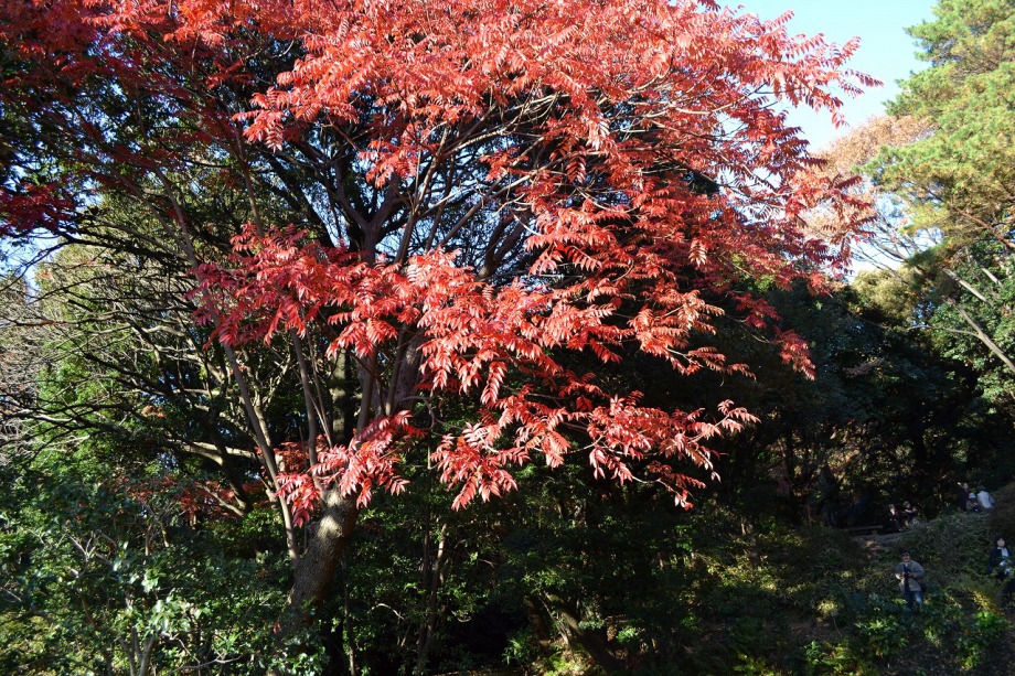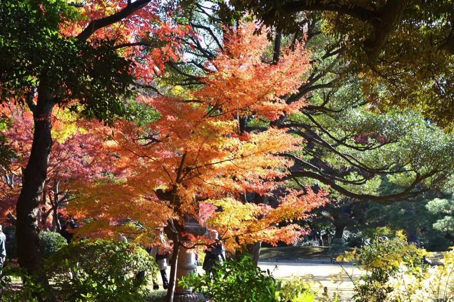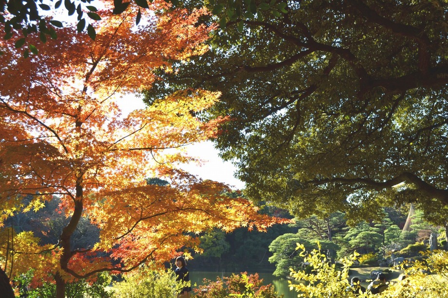 六義園のイチョウともみじを見に行った。イチョウは非常に少なく、高い木ばかりで、写真を撮ることは難しかった。