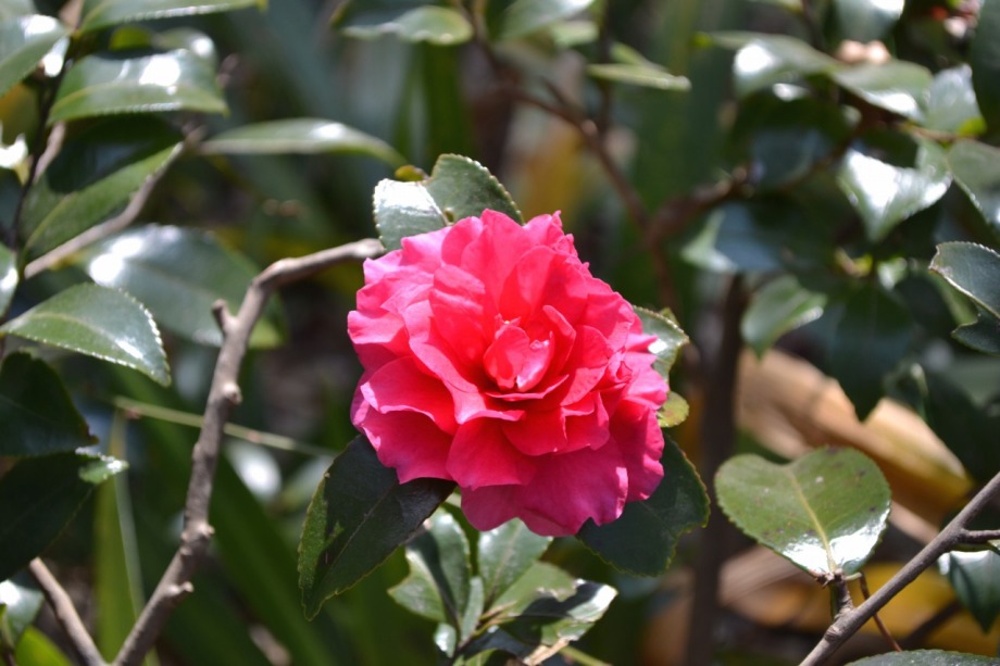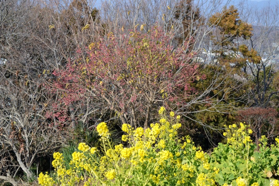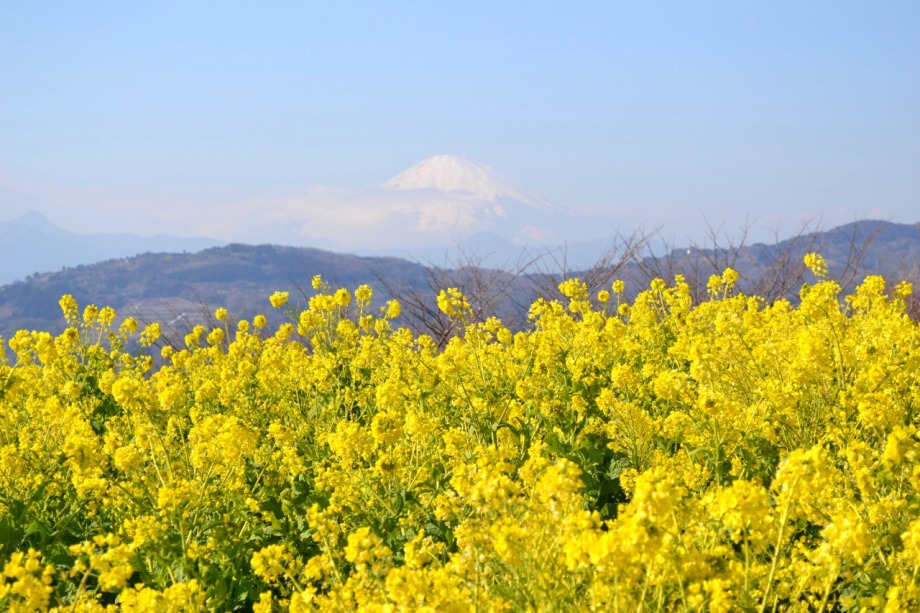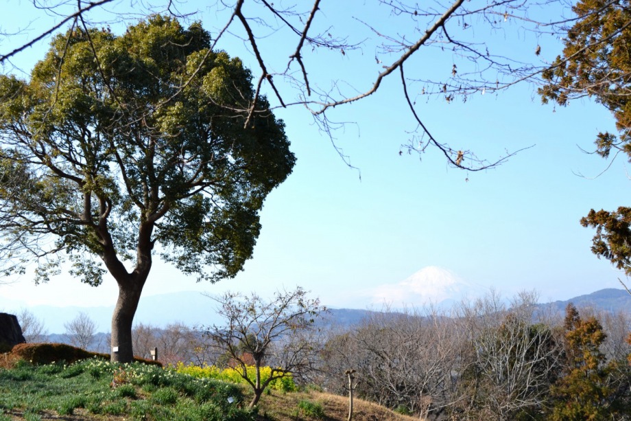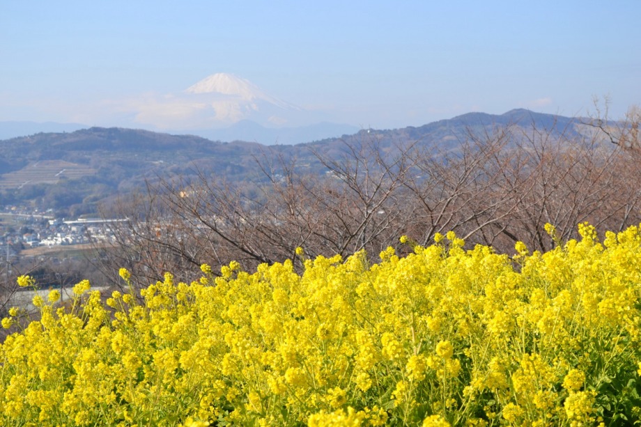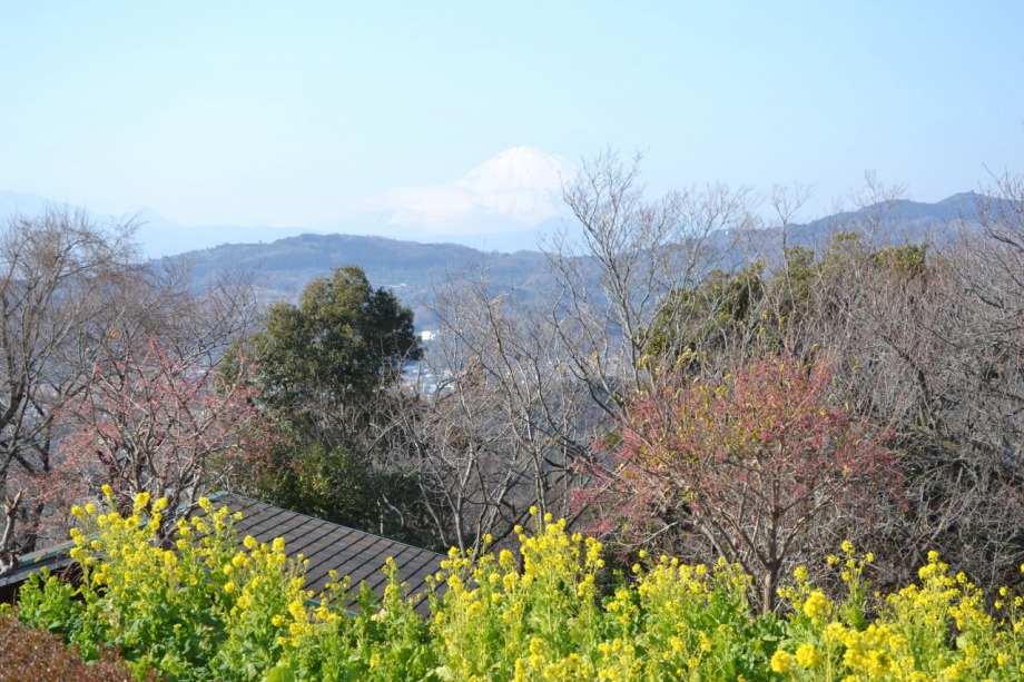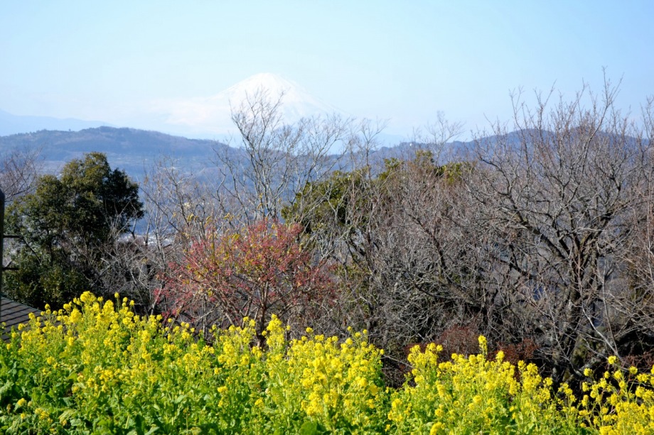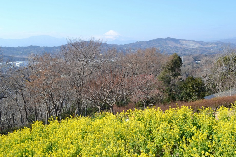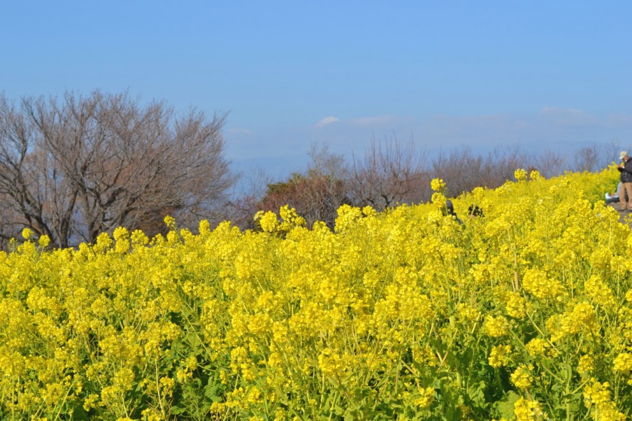 天気も良く、富士山を背景とした菜の花はなかなか良かった。寒椿も赤い花をつけていました。