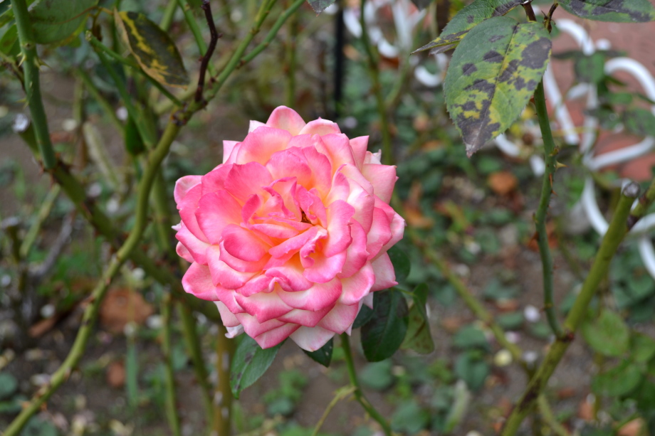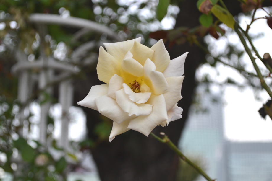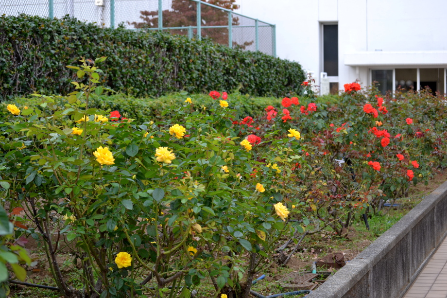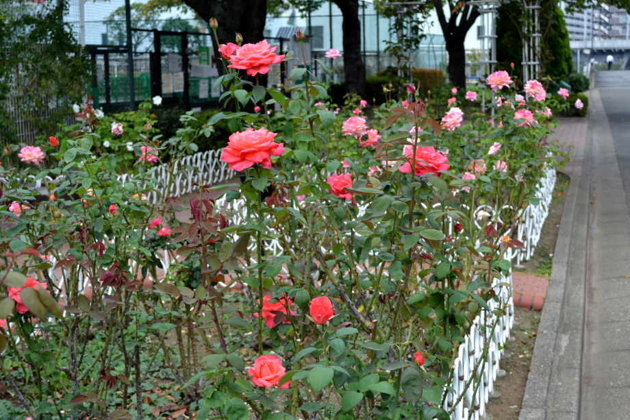 芝浦中央公園のバラが咲き出した。今年は9月に陽射しが厳しかったので、バラの花が傷んでいるものが多かった。