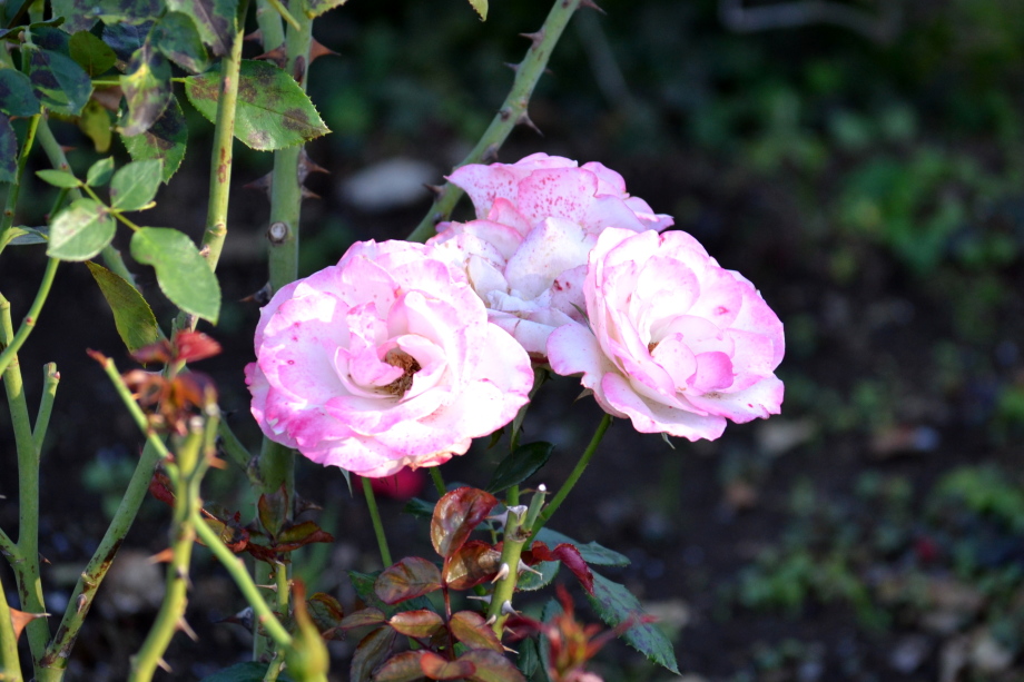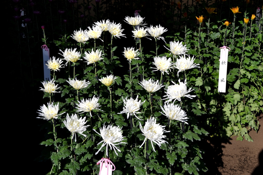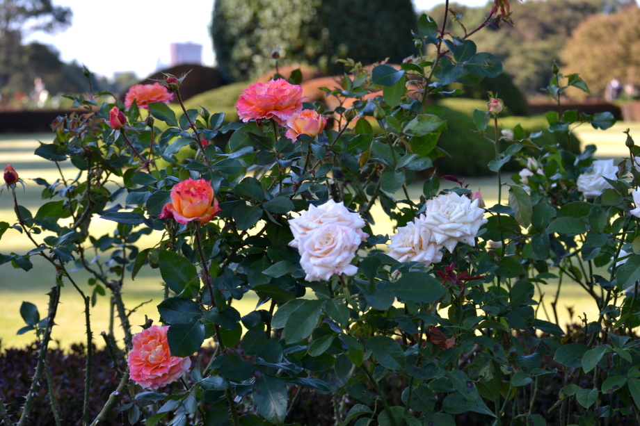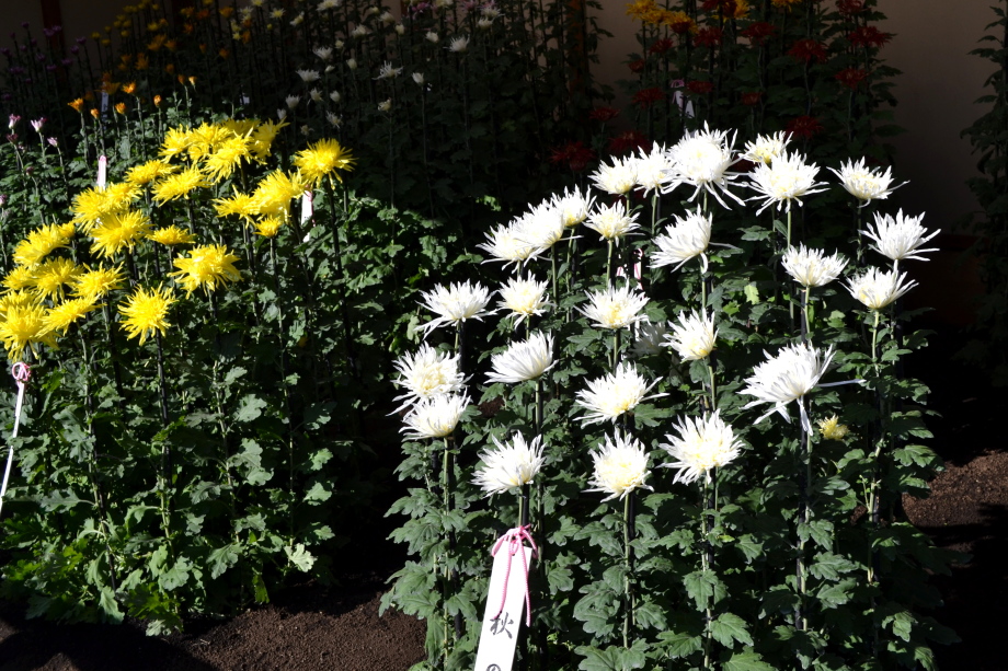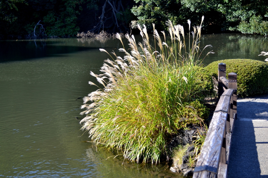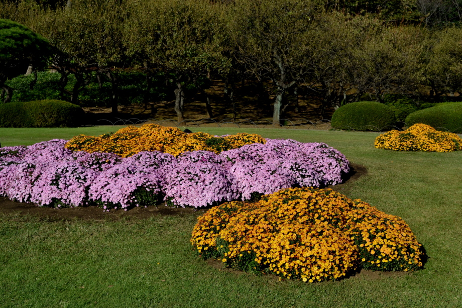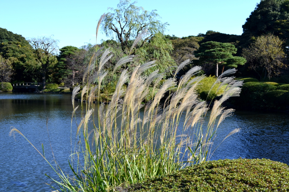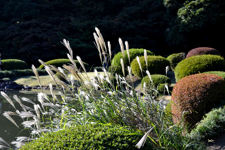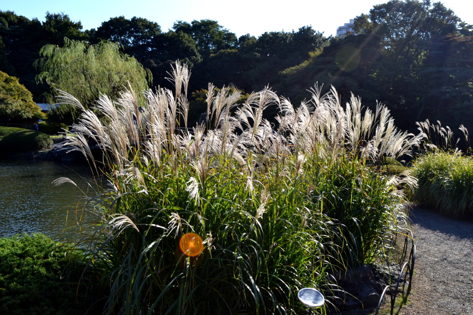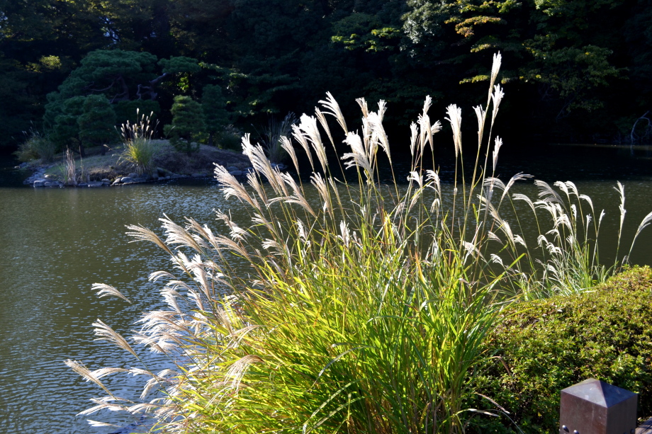 新宿御苑で菊の展示をしているということなので、見に行った。日本庭園内に色々な菊を展示していた。まだ、咲いていない、 蕾の菊が多く、もう少しすると見頃になると思った。ススキ、バラも咲いていた。最後に、秋が深くなっているので、木漏れ日 の景色が良かった。