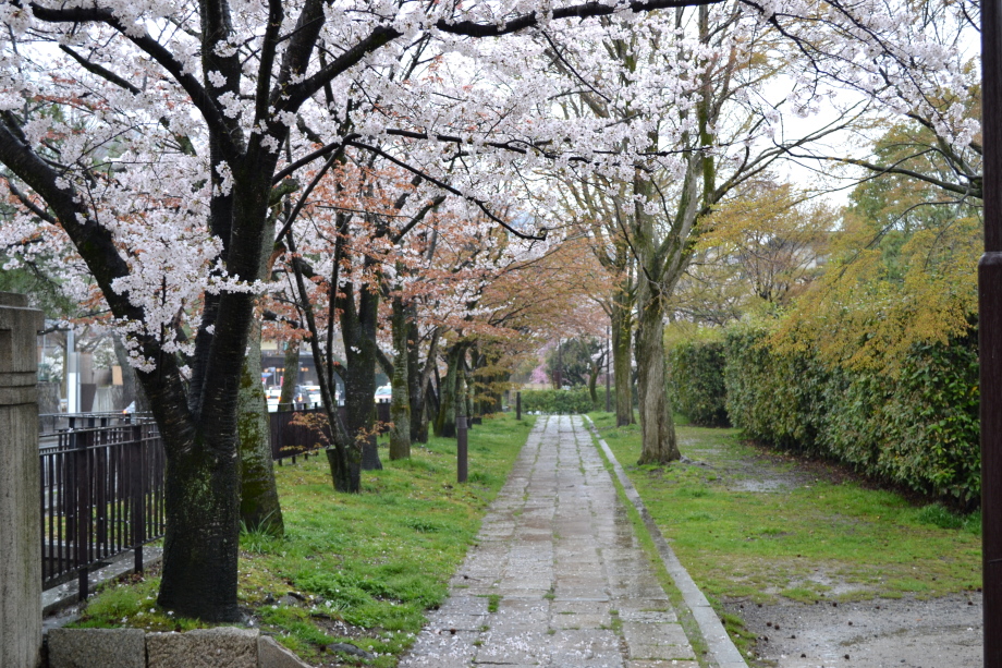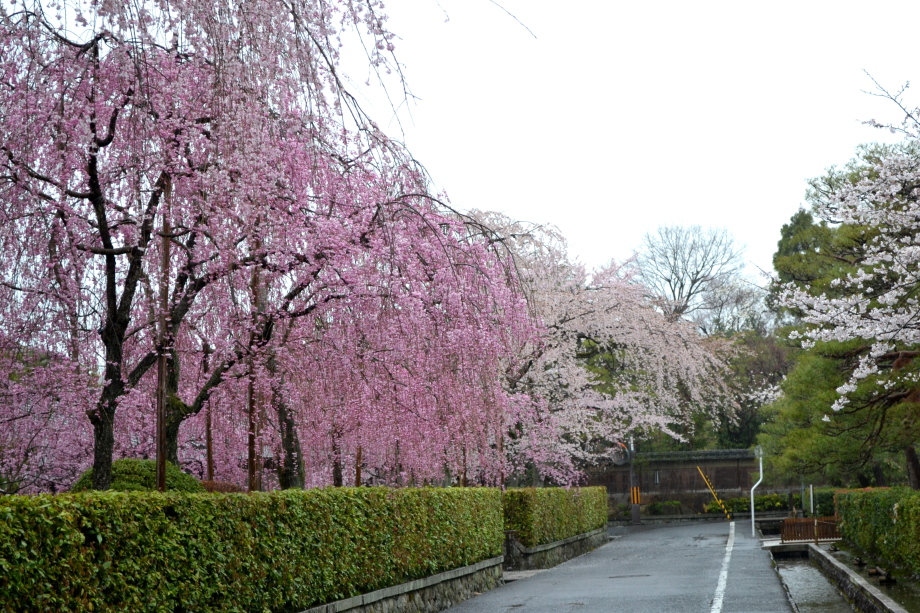 11日は午後から雨でしたが、平安神宮の横道や琵琶湖疏水、南禅寺などを見て回りました。特に、大松清流亭の枝垂桜は綺麗でした。