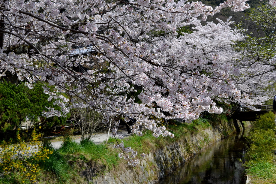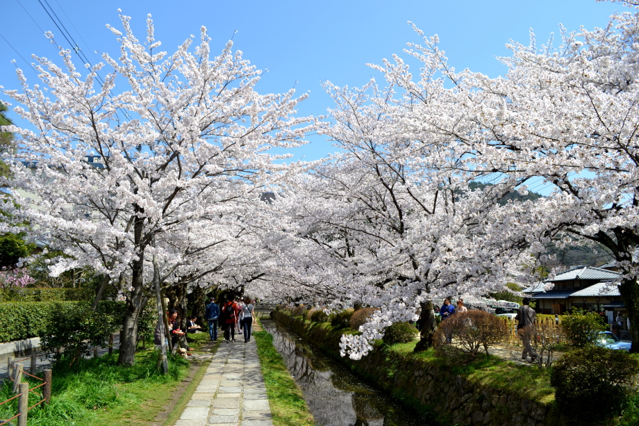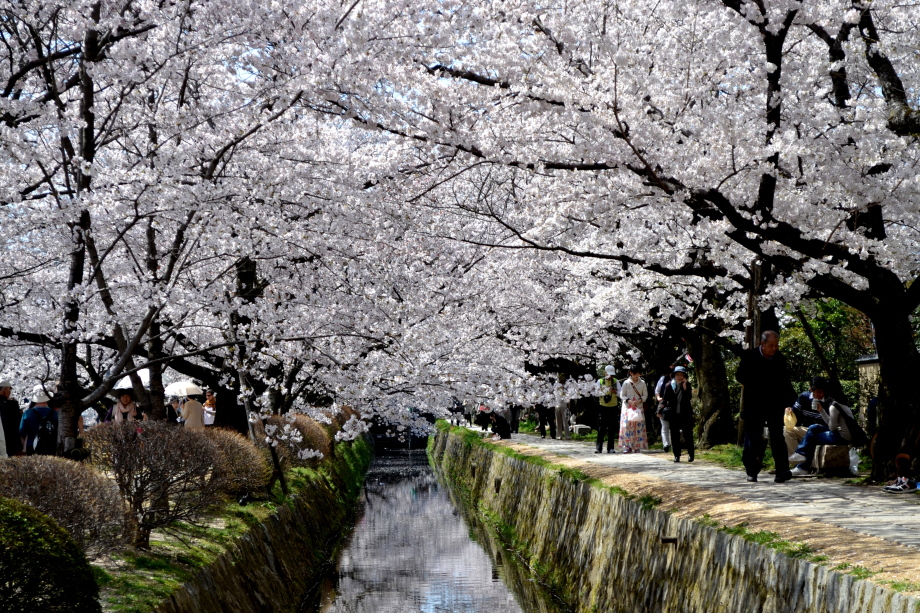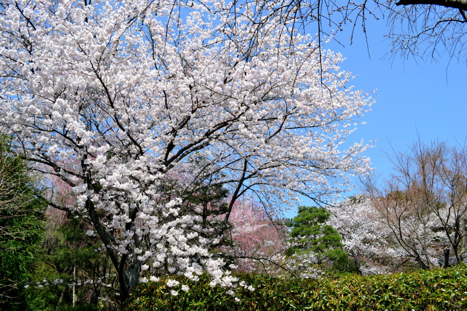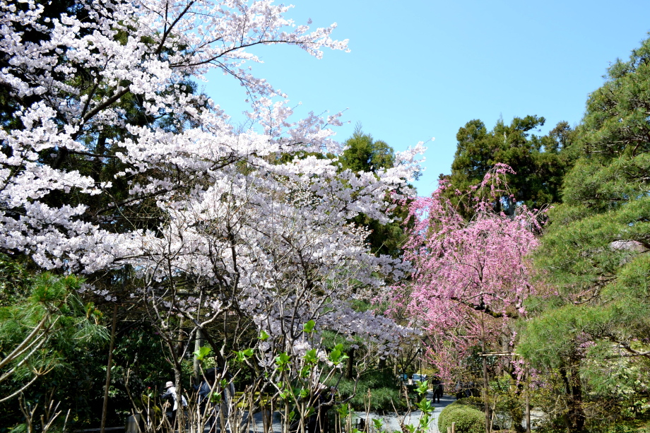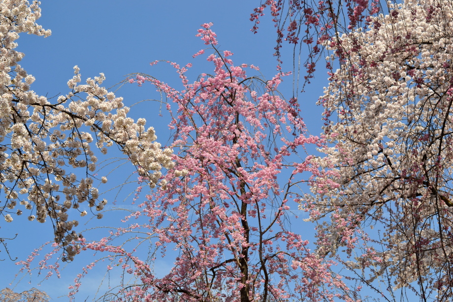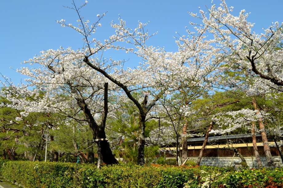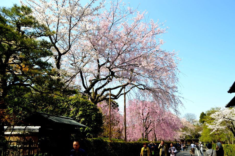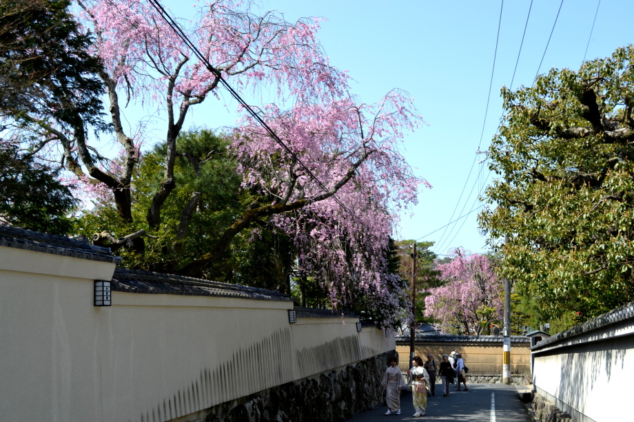 京都の竜安寺から平野神社、哲学の道、琵琶湖疏水、南禅寺周辺、知恩院、丸山公園と歩きました。 竜安寺の石庭の桜はまだ、盛りの前でしたが、平野神社は沢山の種類に桜が咲いていました。哲学の道も桜は満開でした。 着物を着た女性が歩いていました。南禅寺界隈の別荘地の庭は綺麗であった。円山公園のしだれ桜は貫禄があった。