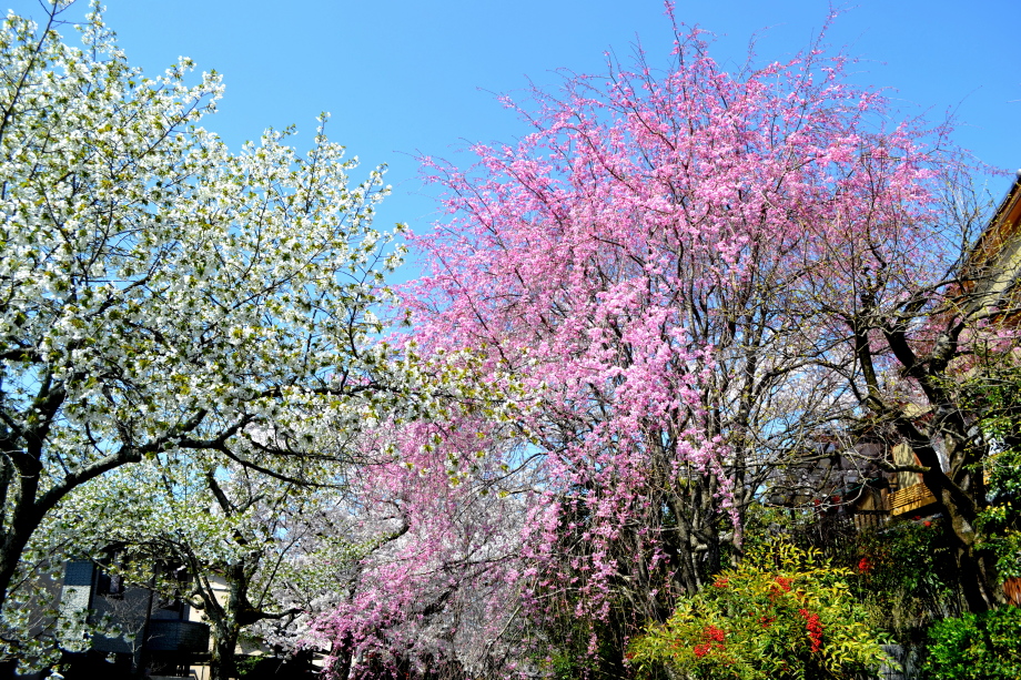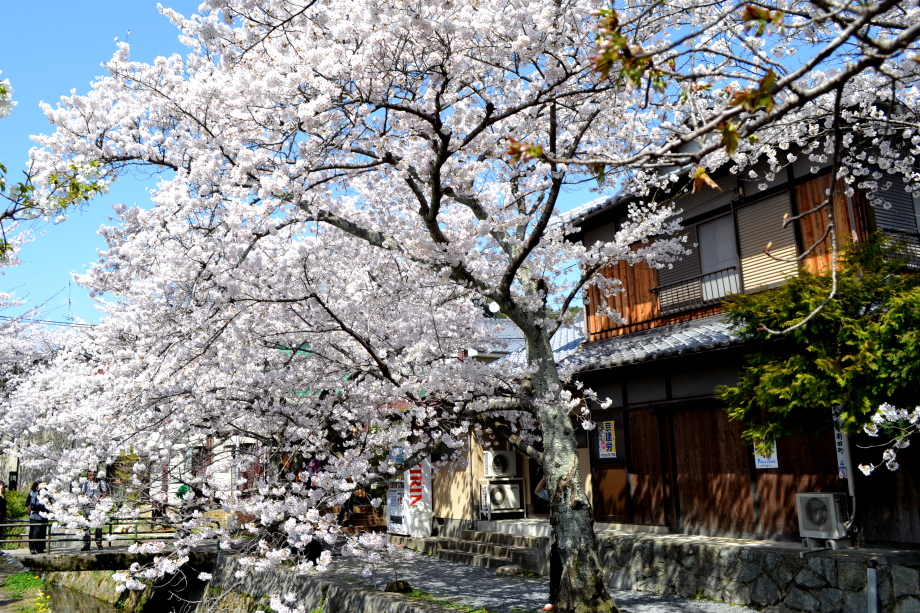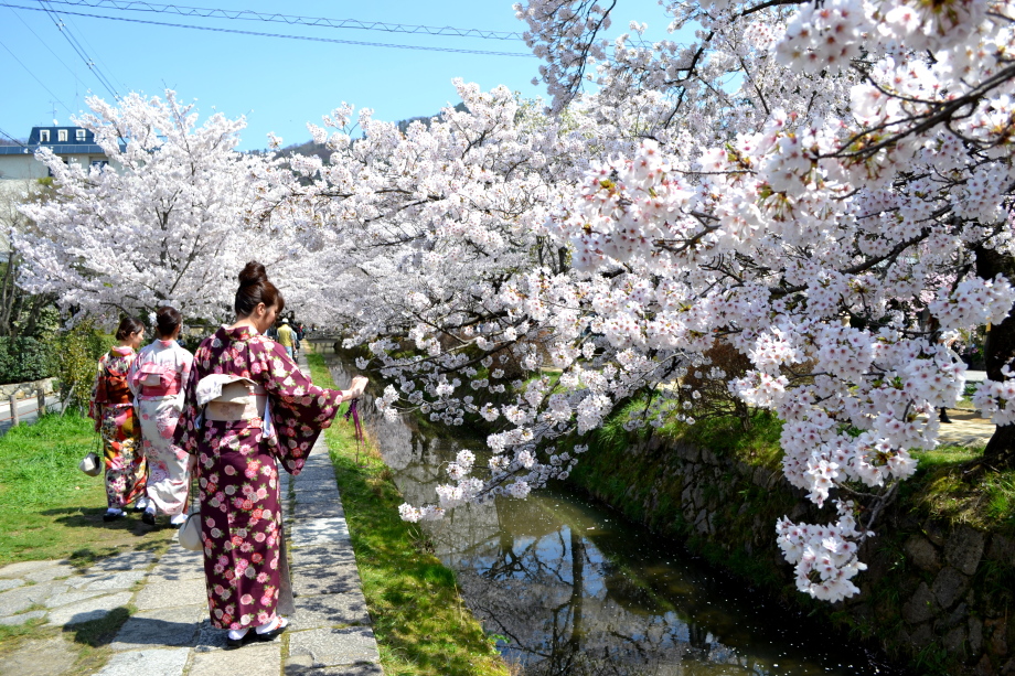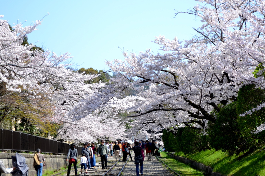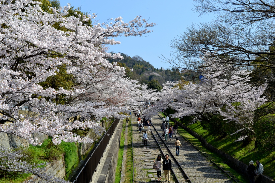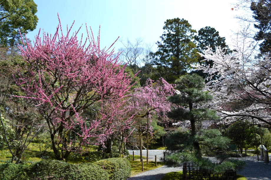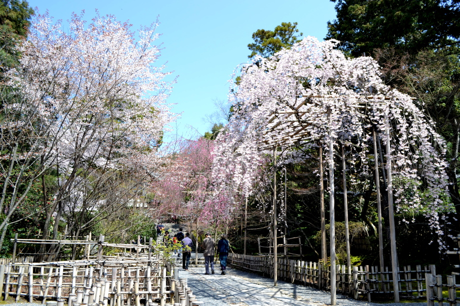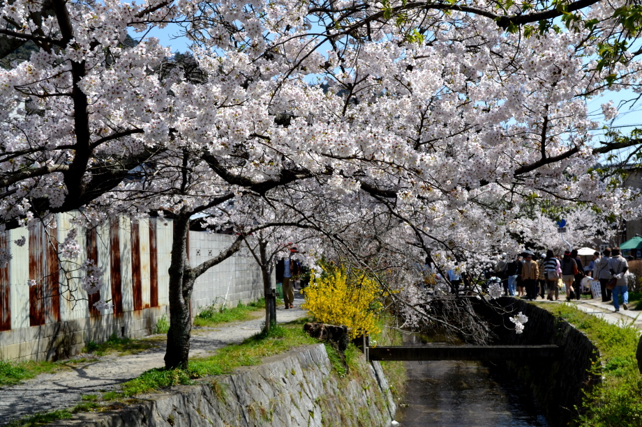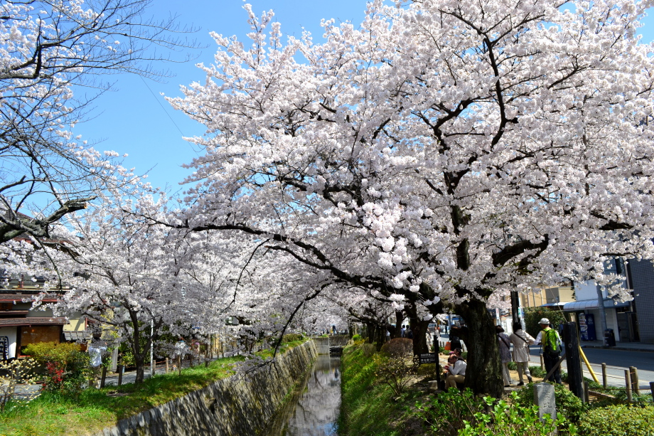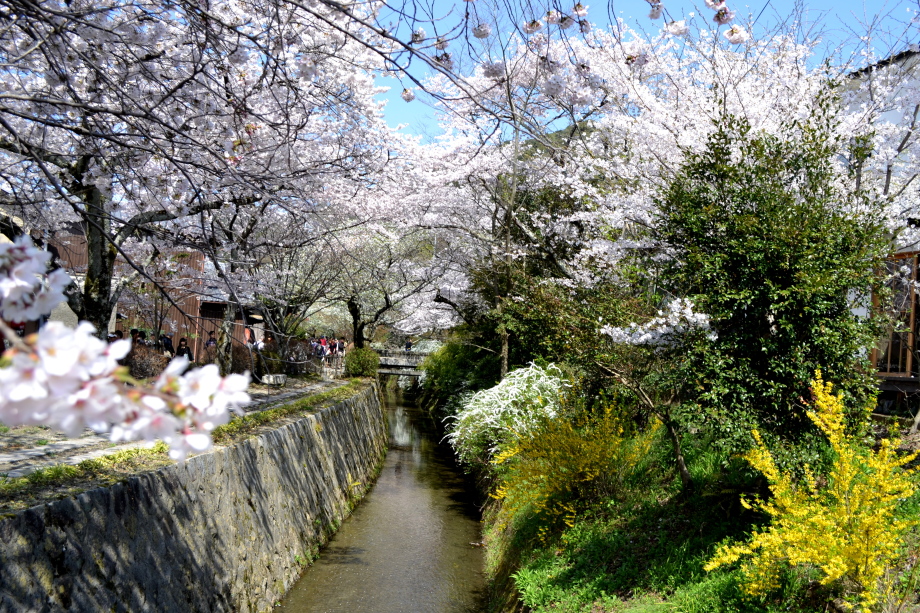 京都の竜安寺から平野神社、哲学の道、琵琶湖疏水、南禅寺周辺、知恩院、丸山公園と歩きました。 竜安寺の石庭の桜はまだ、盛りの前でしたが、平野神社は沢山の種類に桜が咲いていました。哲学の道も桜は満開でした。 着物を着た女性が歩いていました。南禅寺界隈の別荘地の庭は綺麗であった。円山公園のしだれ桜は貫禄があった。