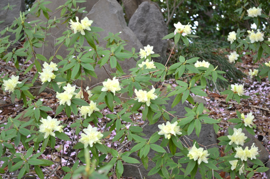 皇居の東御苑のつつじを見に行きました。今年はつつじも遅れているようで、もう少し時間がかかる感じです。しかし、しだれ桜やボタン桜、 庭桜、ウコン、海棠などが盛りと咲いていました。シャクナゲが沢山咲いていて綺麗でした。黄色いヒカゲツツジも咲いていました。