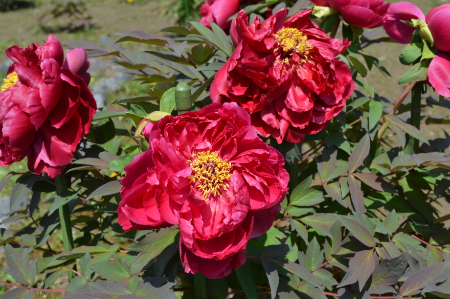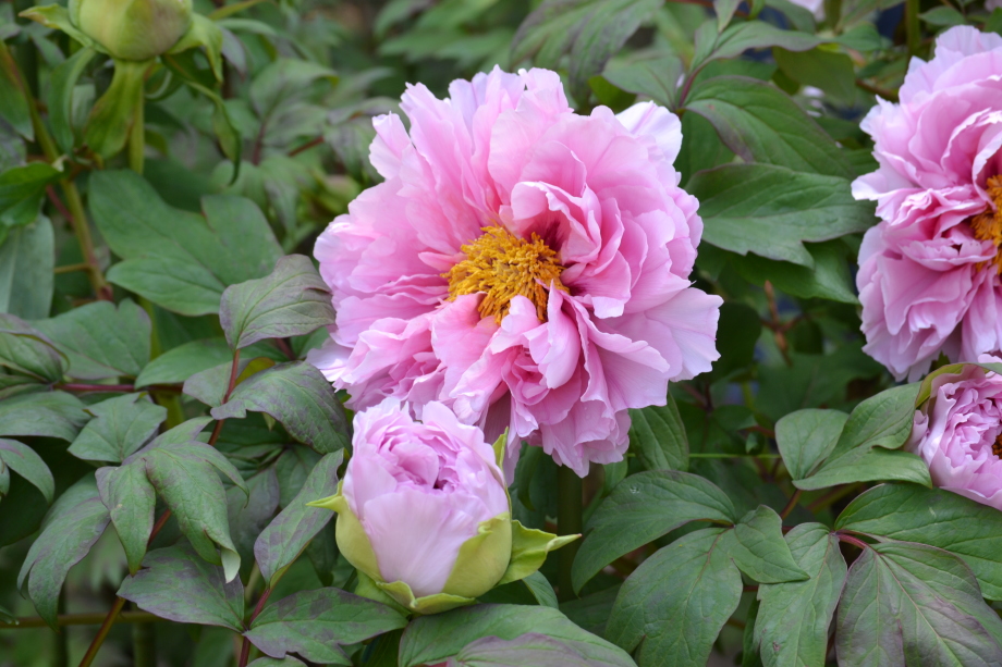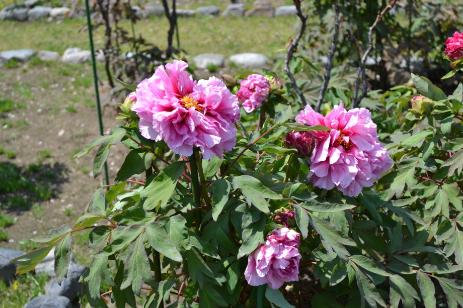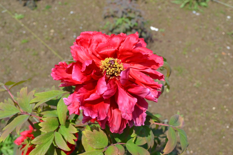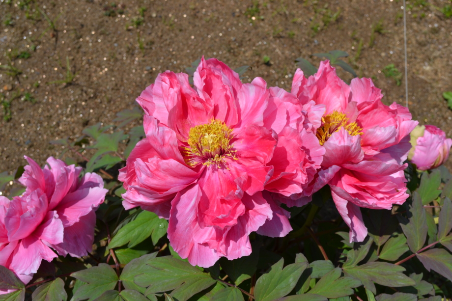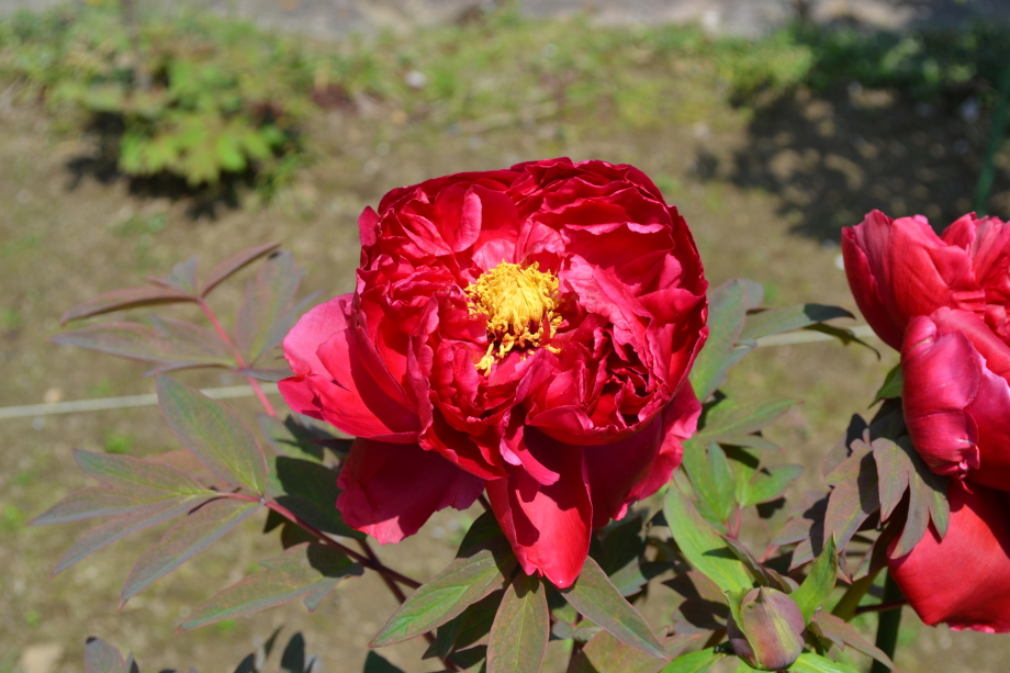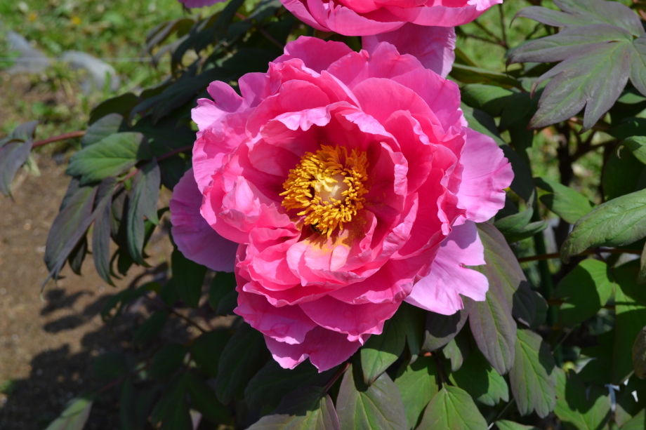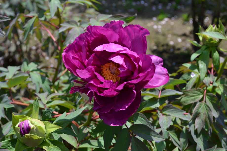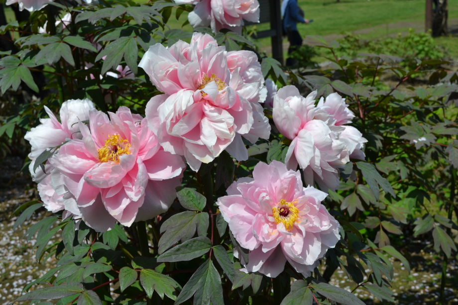 浜離宮に牡丹を見に行った。そろそろ咲き始めていた。寒牡丹に比べると花が大きく暴れている感じである。