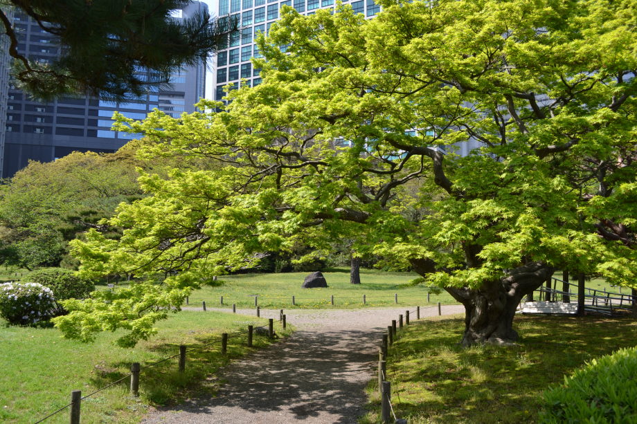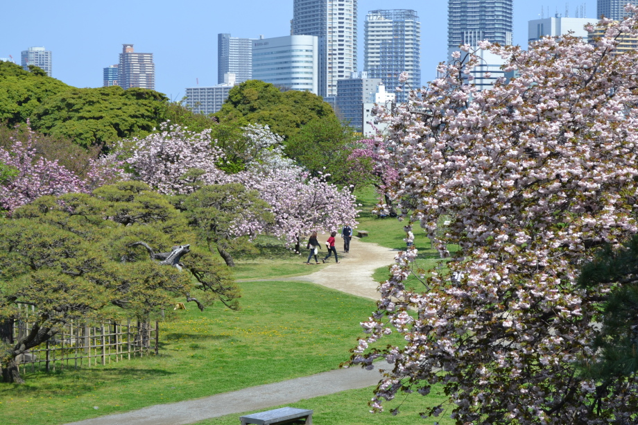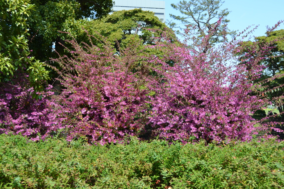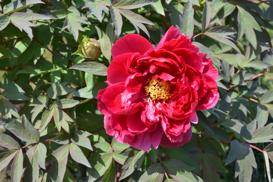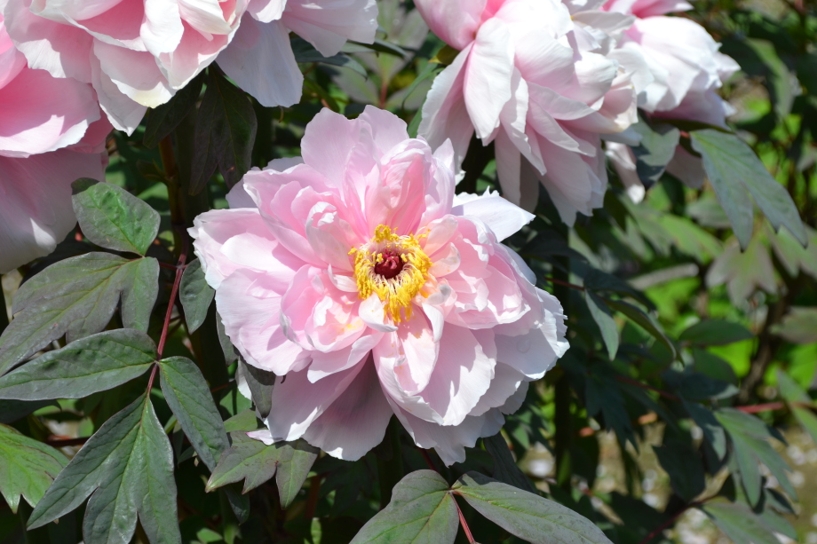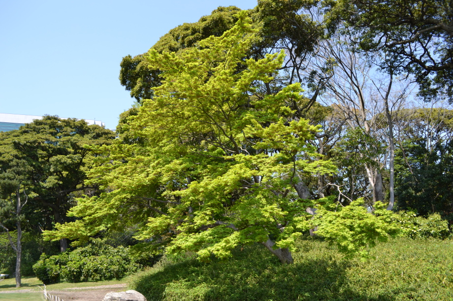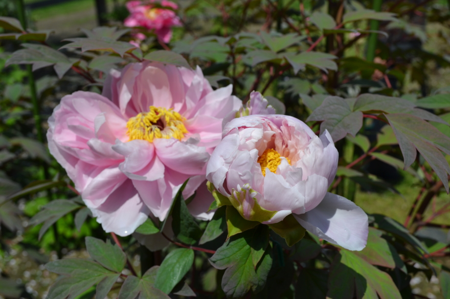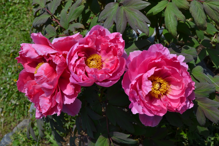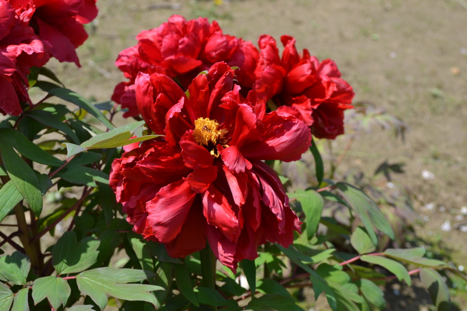 浜離宮に牡丹を見に行った。そろそろ咲き始めていた。寒牡丹に比べると花が大きく暴れている感じである。