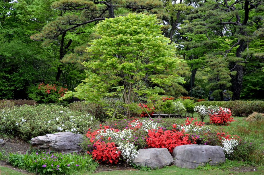 やっと皇居東御苑のつつじが見頃になった。いつもの年より管理おけれている。東御苑は見学者が少なく、写真を楽しく撮ることが 出来ます。また、新緑も良くなっており、雑木林も良い感じになりました。東御苑の見学者は外人が多い感じです。港区の木である 花水木も見頃です。最後の写真は東京プリンスホテルのシャクナゲです。