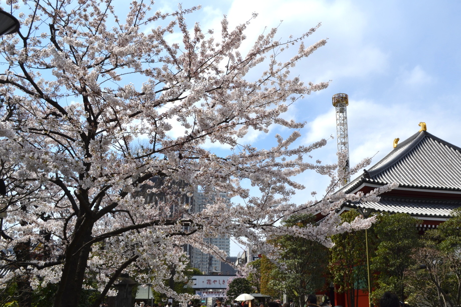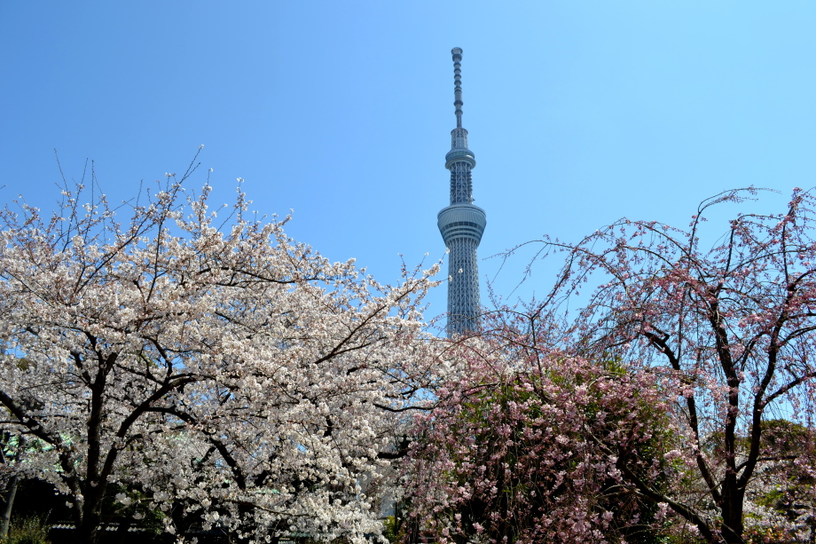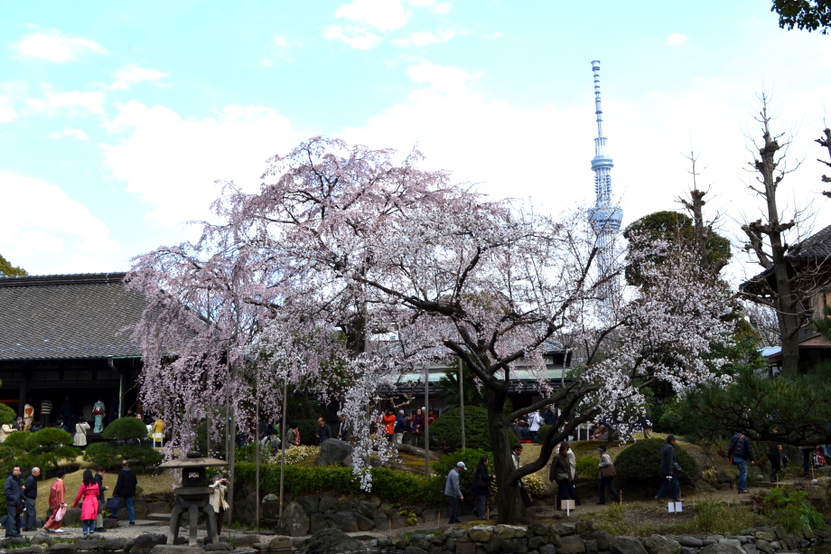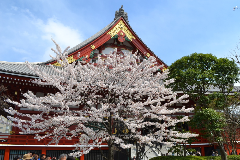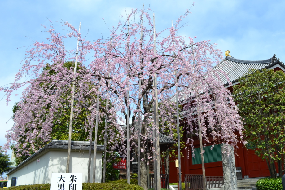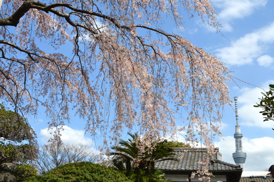 隅田川に桜が満開でした。隅田川の桜の後ろに東京スカイツリーが顔を出しています。浅草寺にお参りした後、伝法院の桜を見ました。