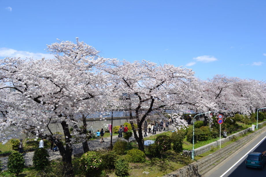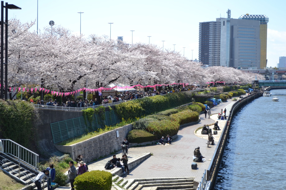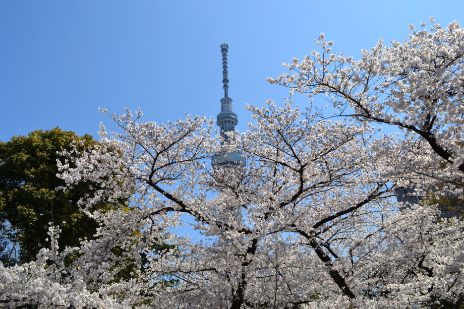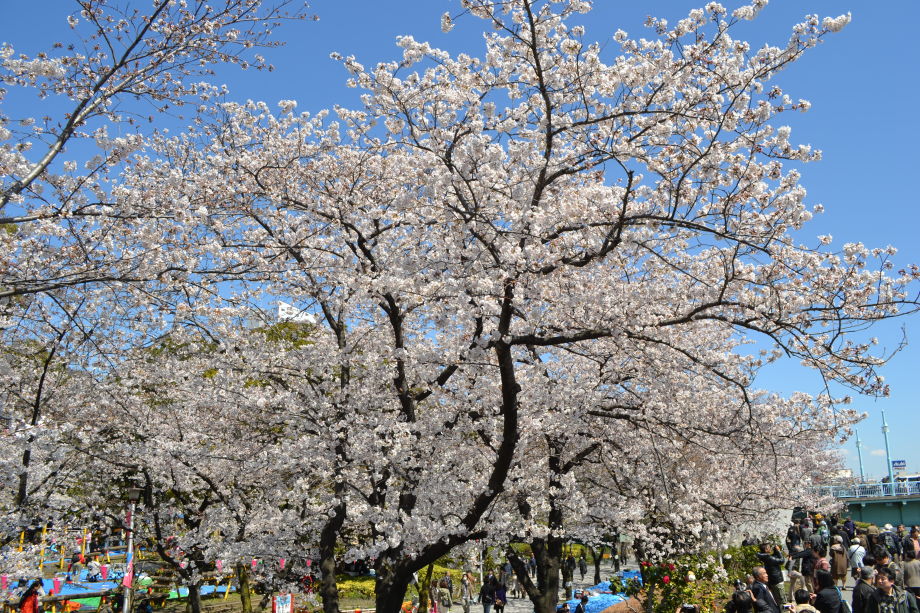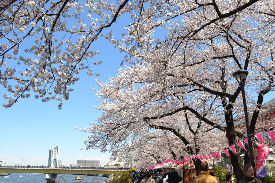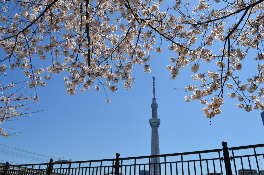 隅田川に桜が満開でした。隅田川の桜の後ろに東京スカイツリーが顔を出しています。浅草寺にお参りした後、伝法院の桜を見ました。