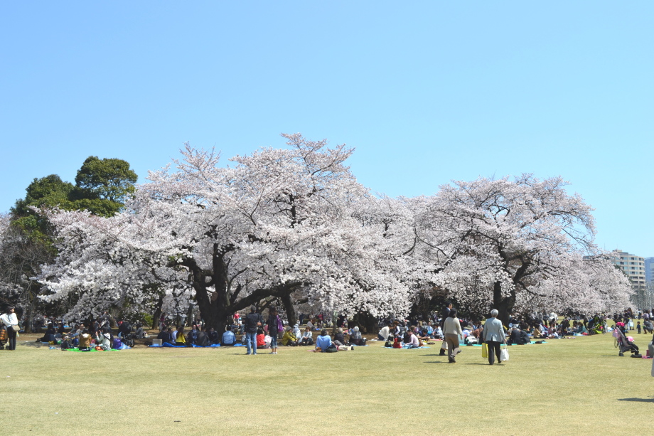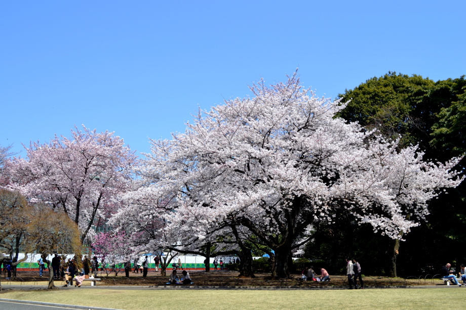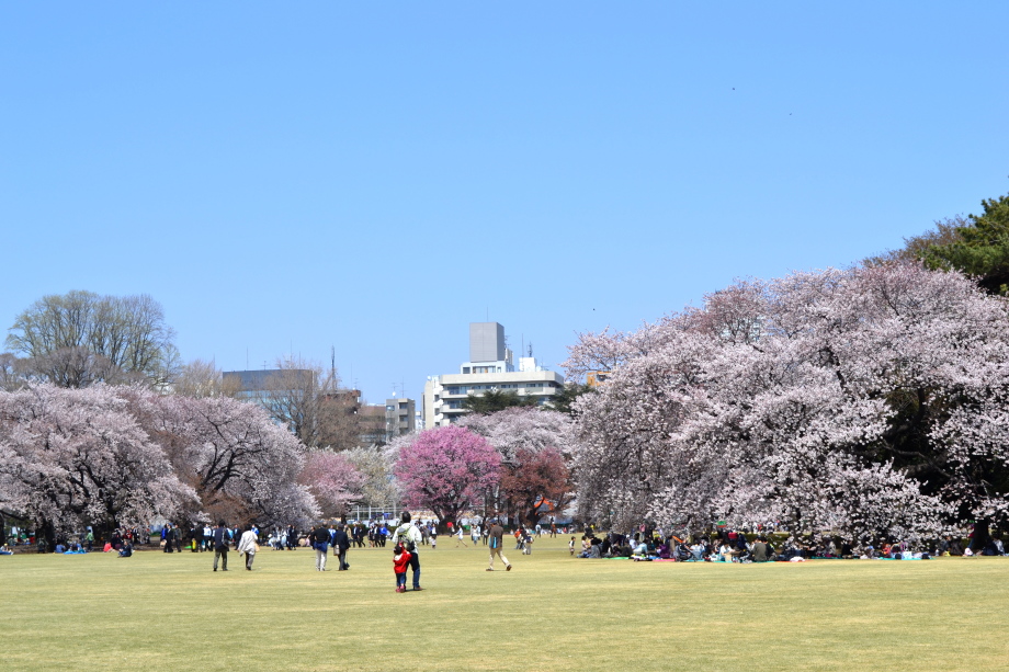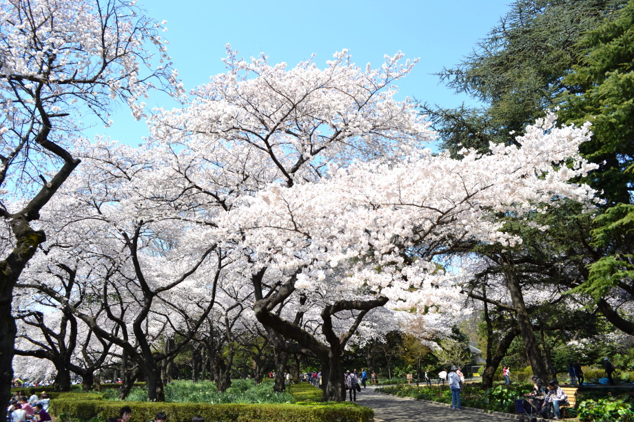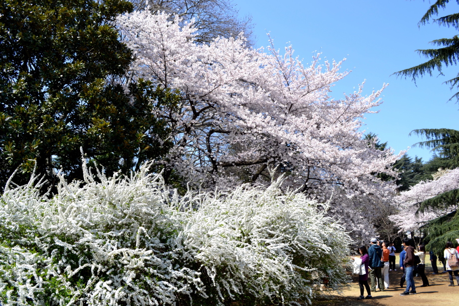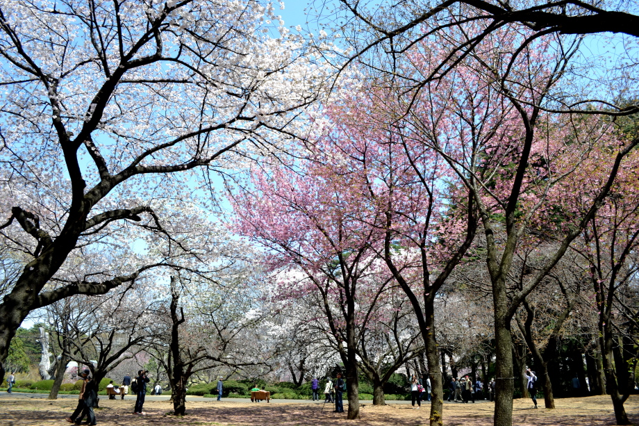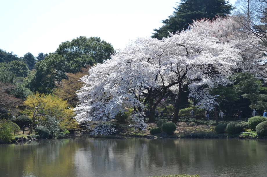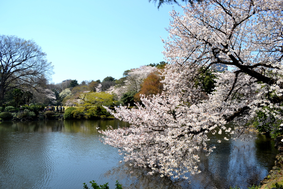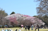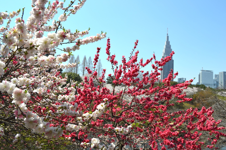 新宿御苑の桜は色々な種類があり、花を楽しむことが出来ます。また、つつじや木瓜、水仙、山吹など色々な花が咲いていました。 満開の染井吉野の下では、たくさんの人が花見をしていました。また、ピンクと白色の花が一緒に咲いている桃の花にはたくさんの人が 集まっていました。