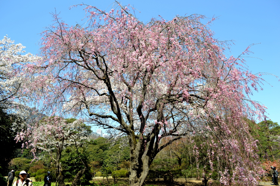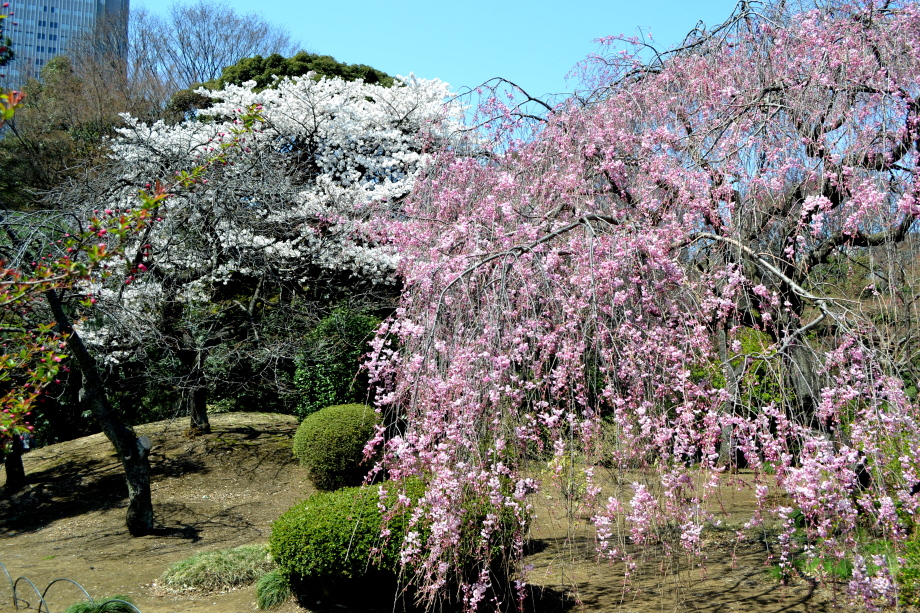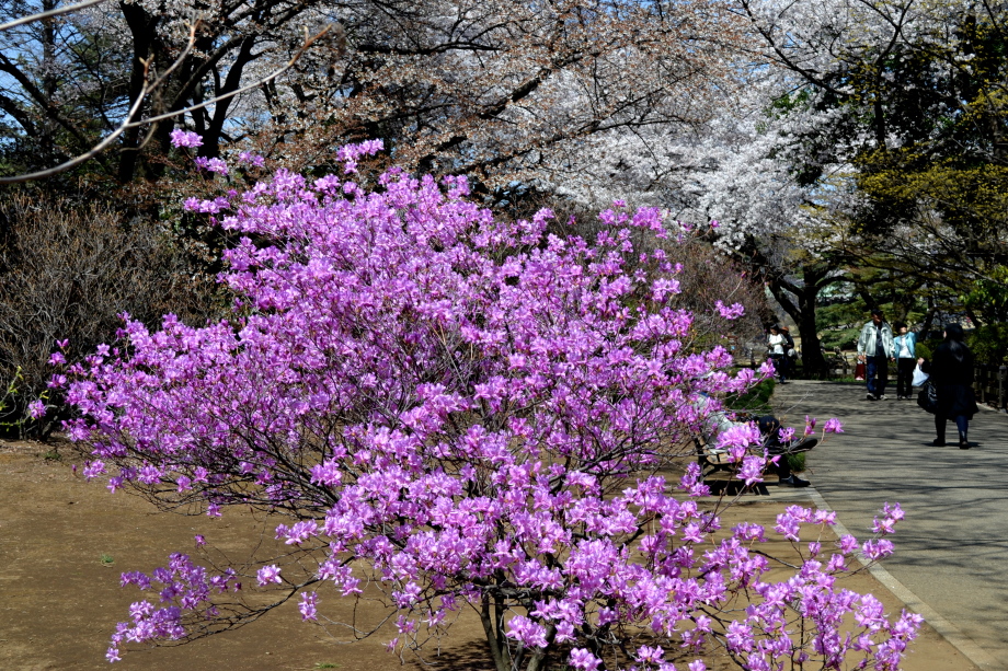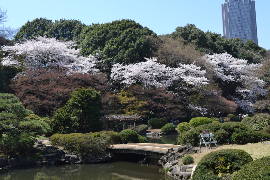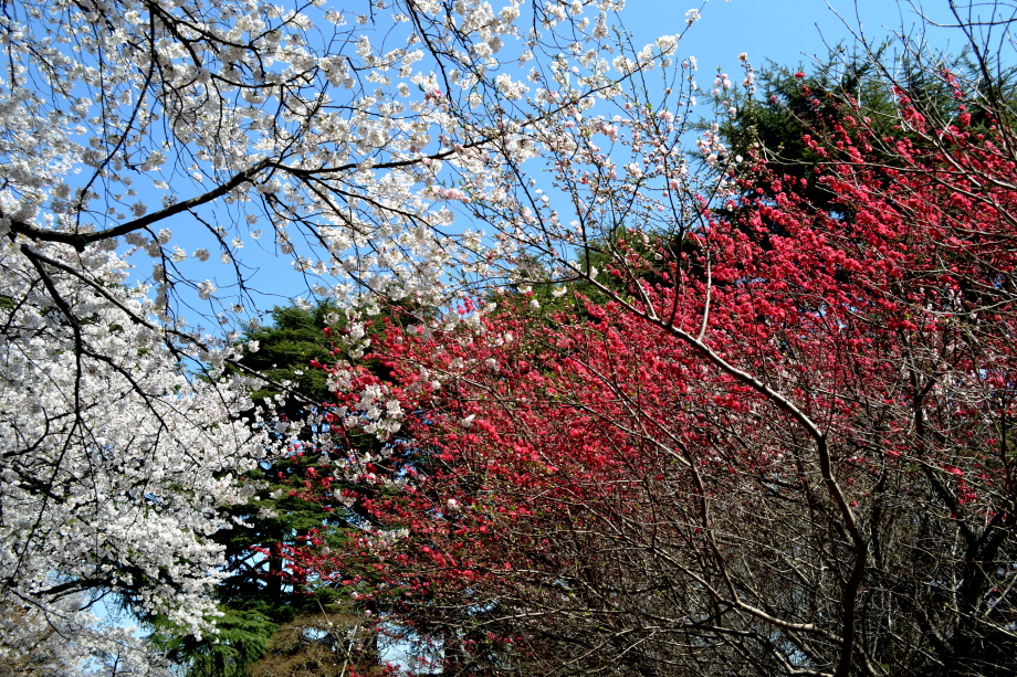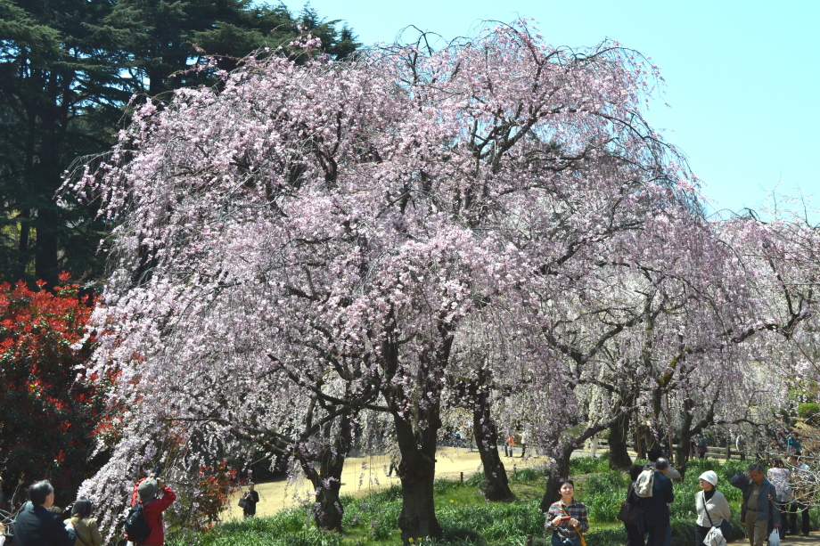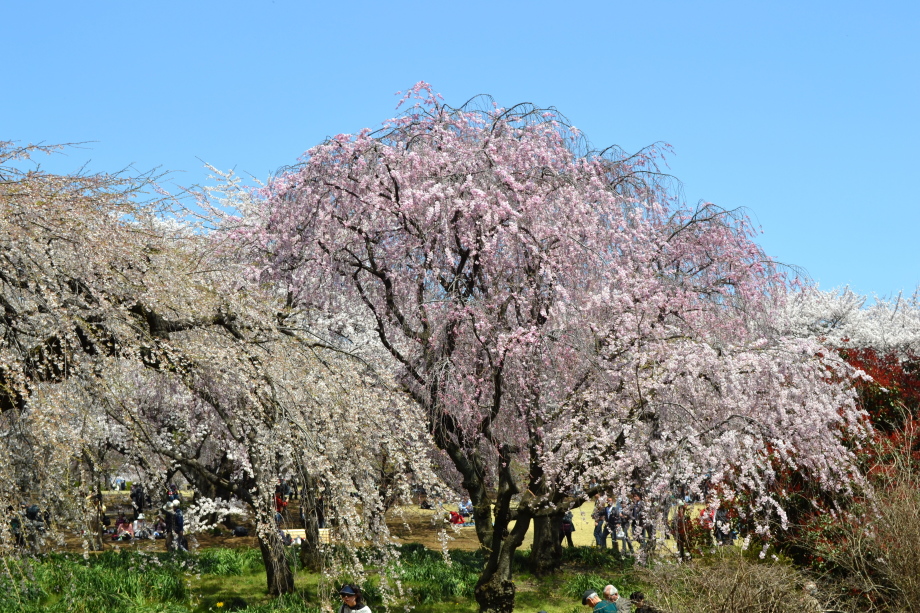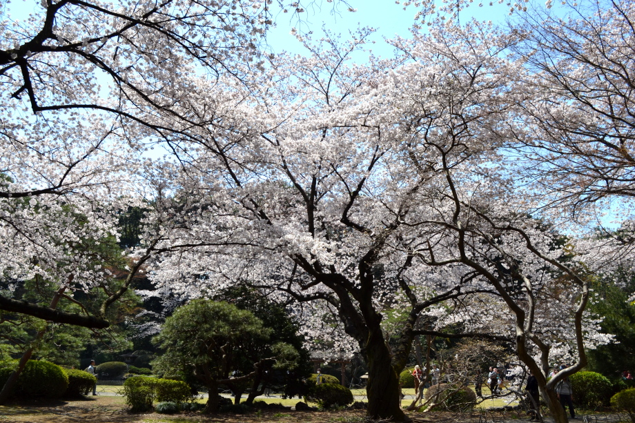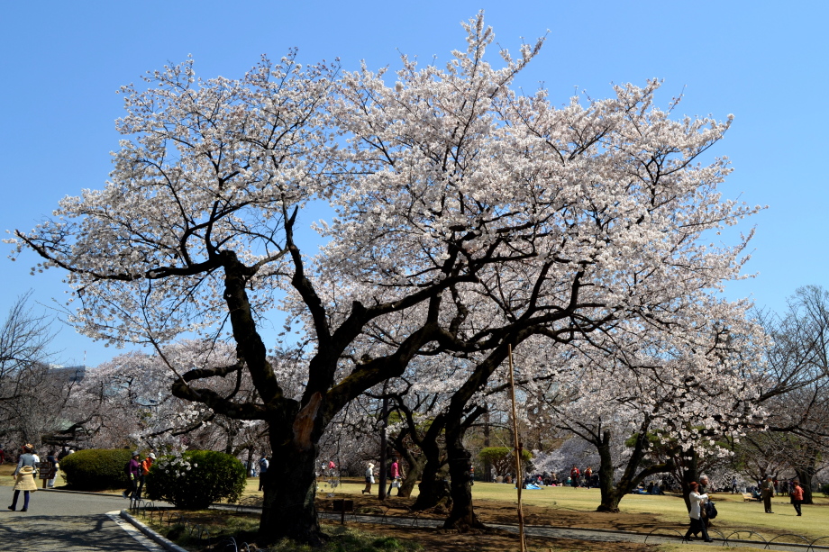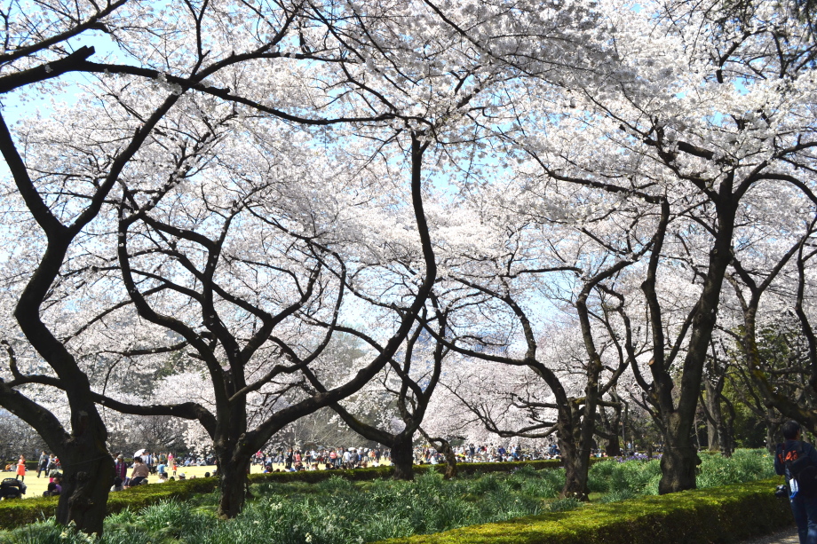 新宿御苑の桜は色々な種類があり、花を楽しむことが出来ます。また、つつじや木瓜、水仙、山吹など色々な花が咲いていました。 満開の染井吉野の下では、たくさんの人が花見をしていました。また、ピンクと白色の花が一緒に咲いている桃の花にはたくさんの人が 集まっていました。