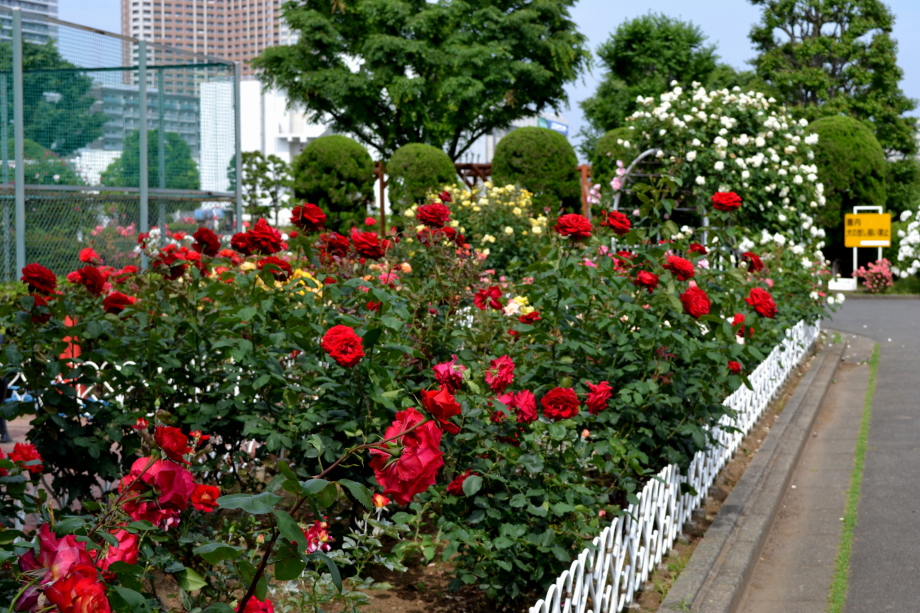 芝浦中央公園のバラが盛りとなりました。テニスの練習の時に写真を撮りました。