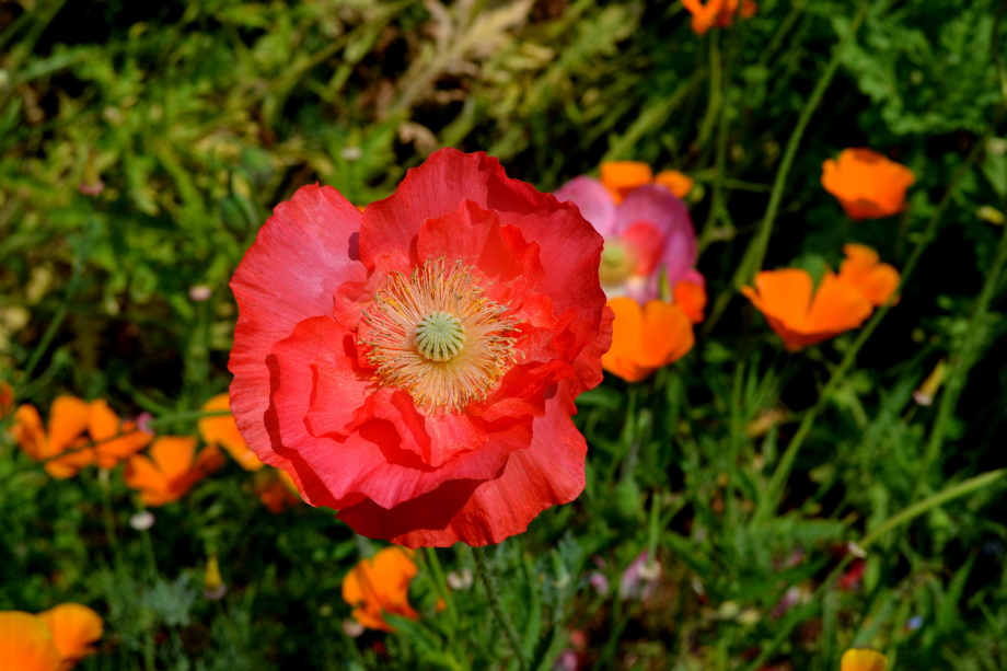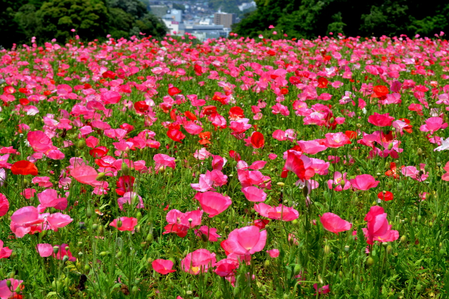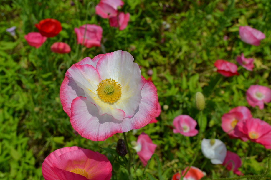 久里浜の花の国に出掛けた。ポピーの花が盛りを過ぎかかっていたので、大変綺麗だった。その他にも色々な花が咲いていた。