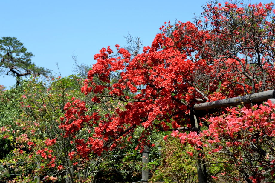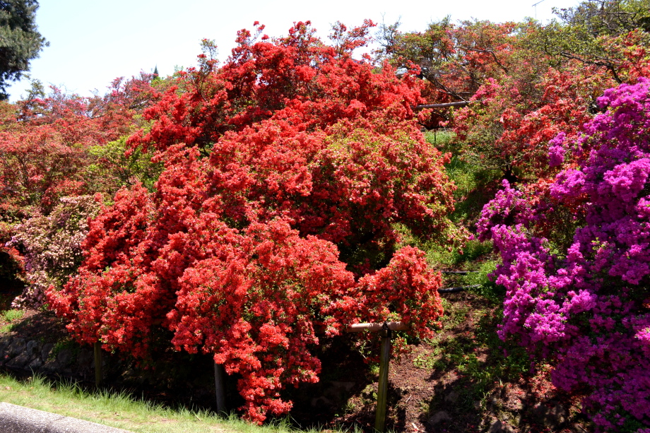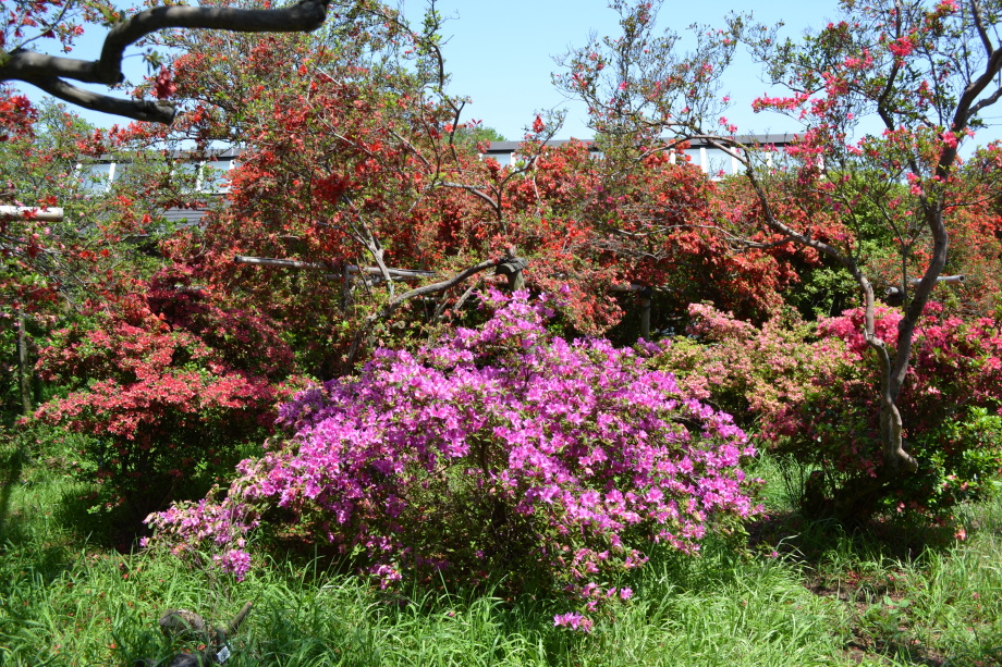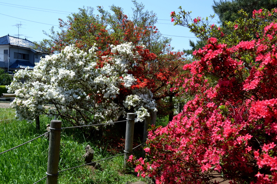 館林のつつじ園に出掛けて、つつじを見た。入り口の近くのつつじはほとんど盛りを過ぎていて、心配した。奥に入ると大きなつつじの木が 沢山花をつけていて綺麗だった。木が大きく見事な感じであった。特に、真っ赤なつつじなど色々な種類があり、楽しかった。