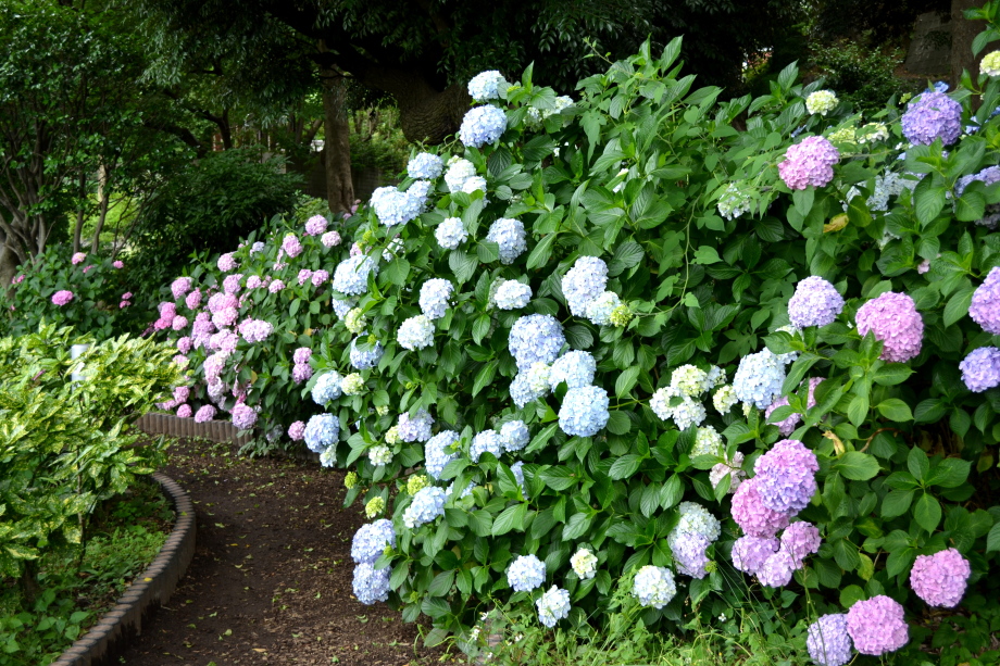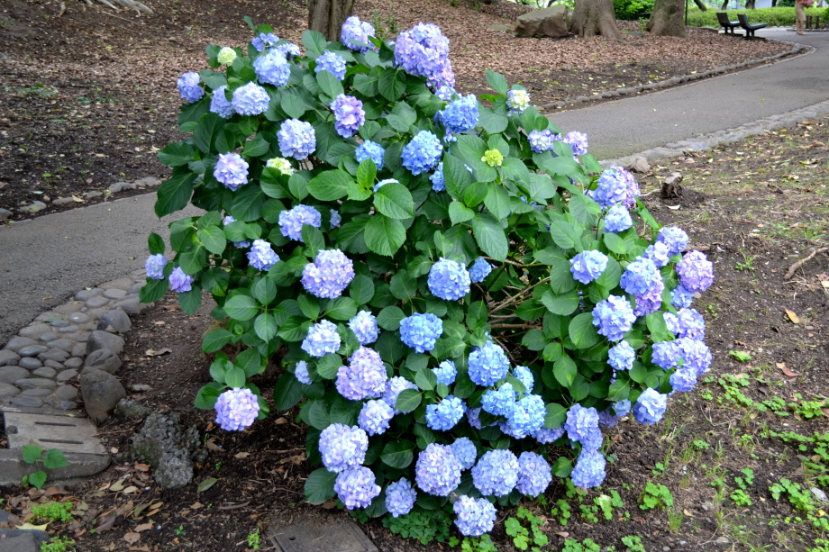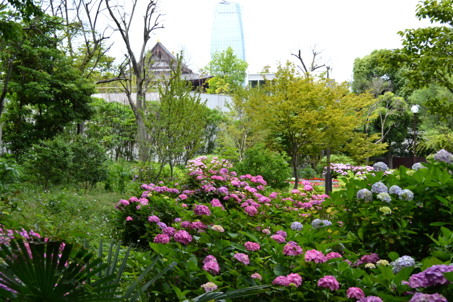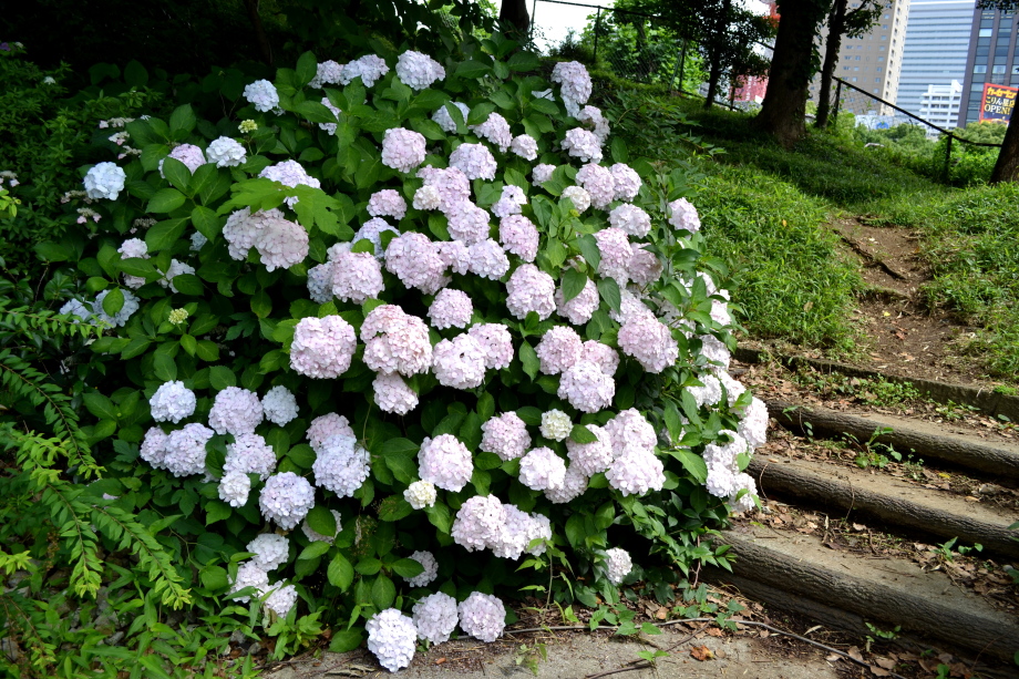 芝公園やプリンスホテルに紫陽花を見に行った。途中の春日神社の前に面白い紫陽花が咲いていました。