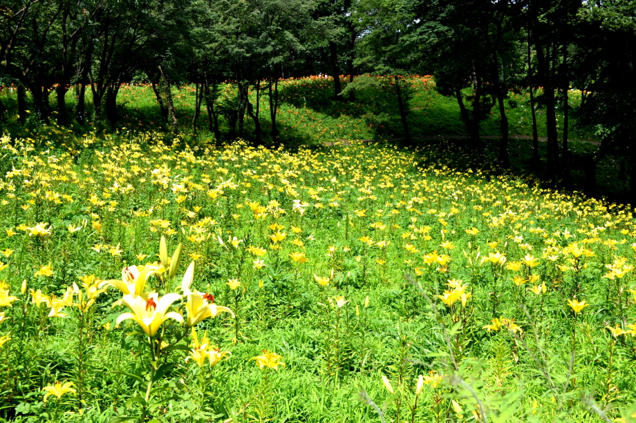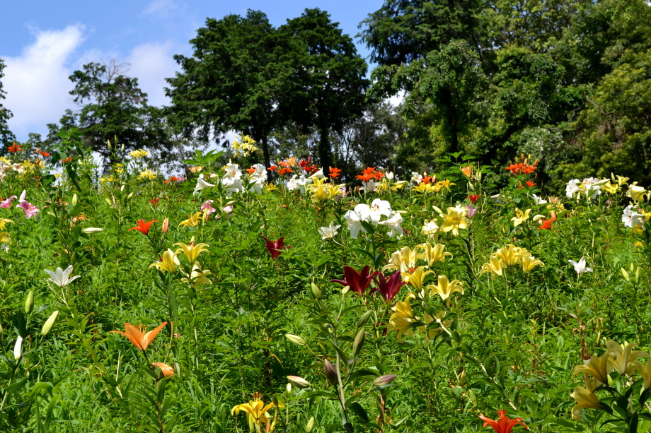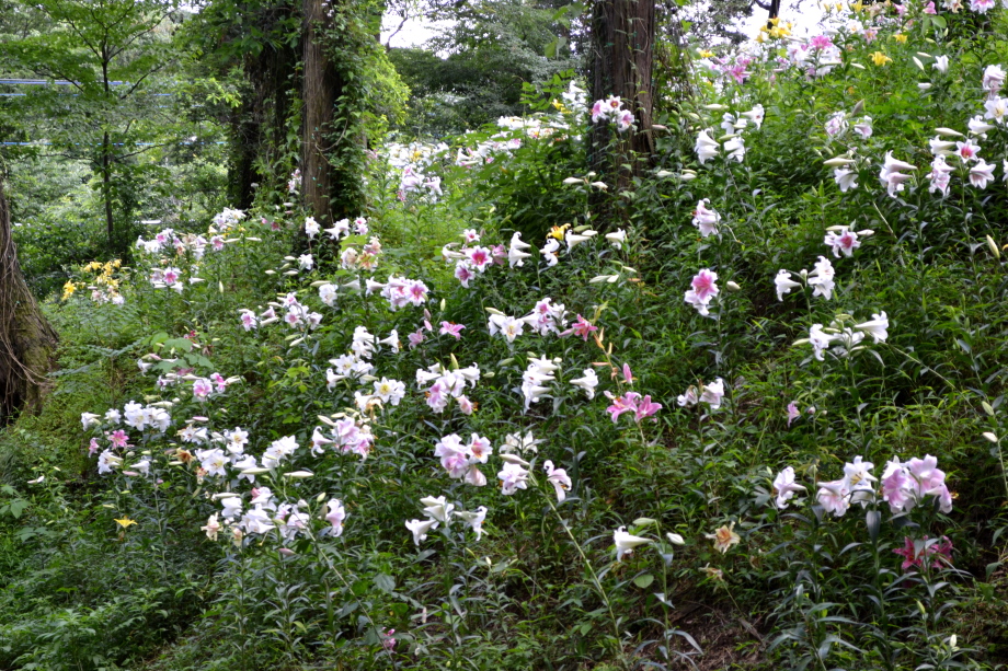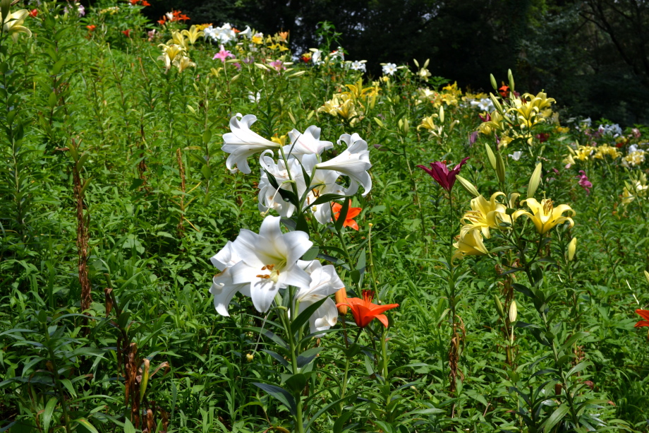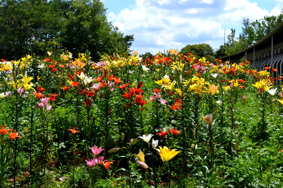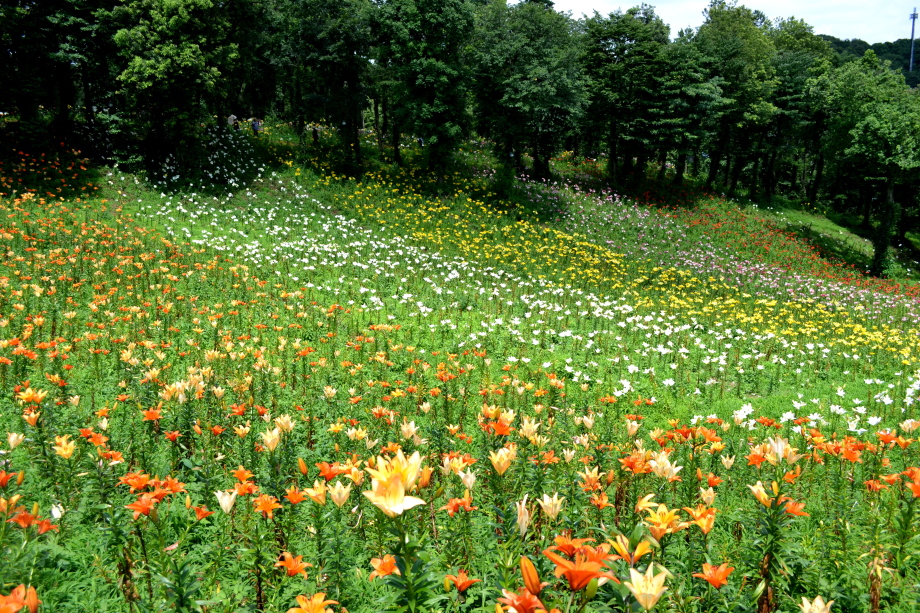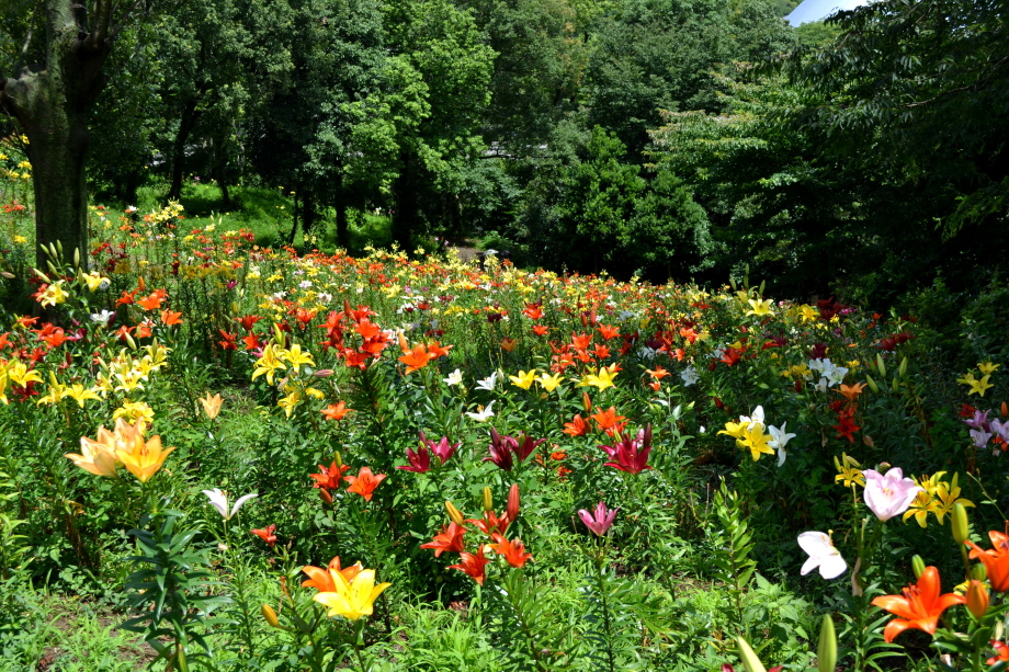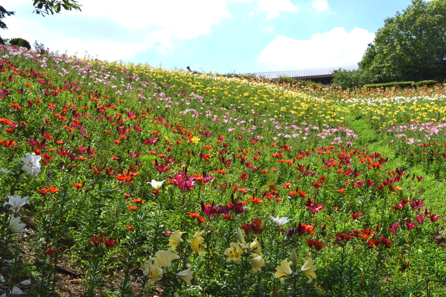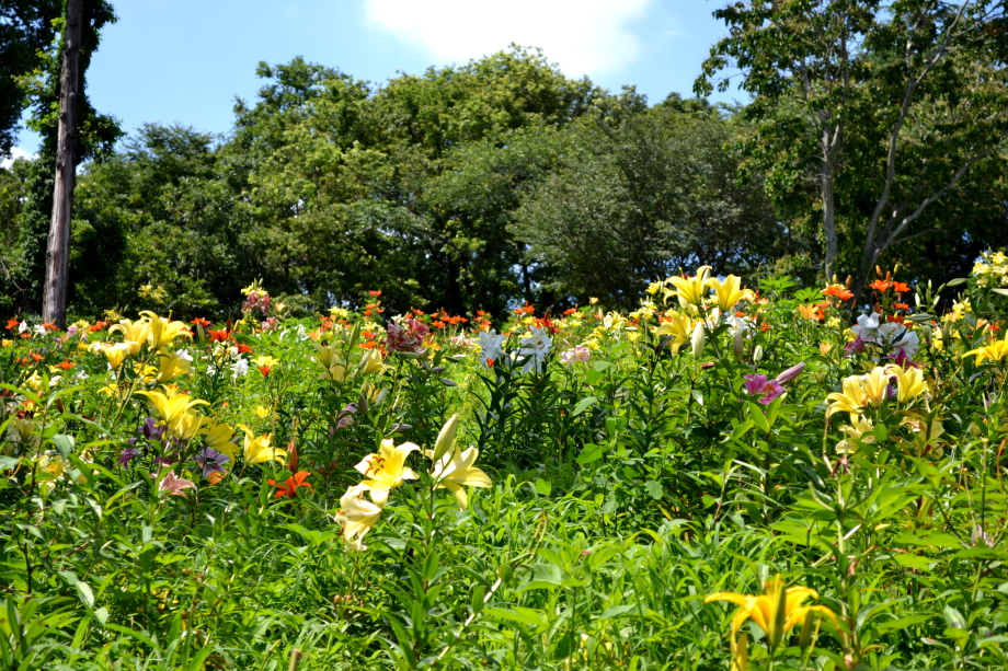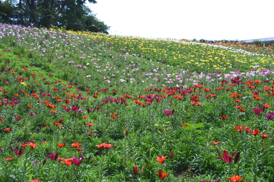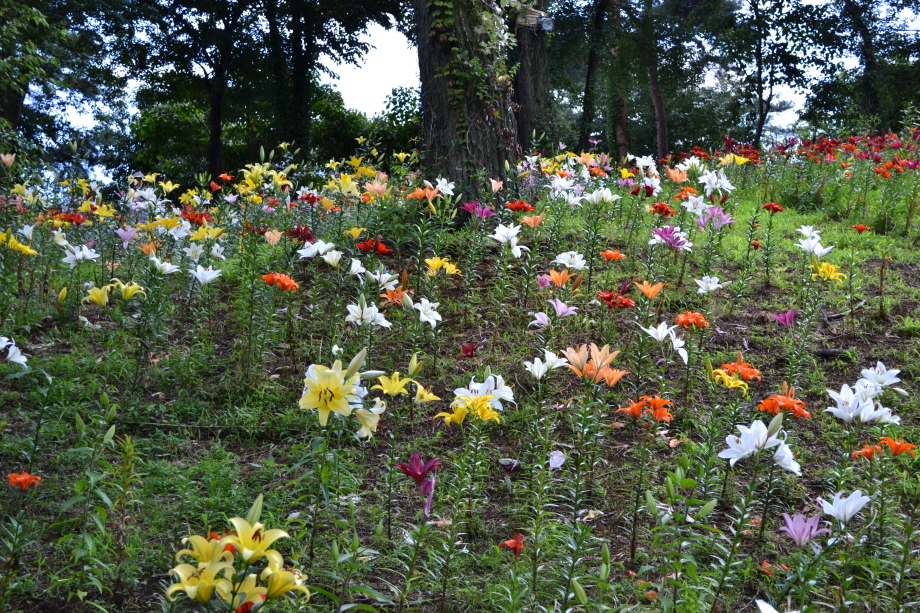 西武球場の横にゆり園がありました。ゆりの種類が多く、ゆりの花が盛りで、いい匂いをしていた。