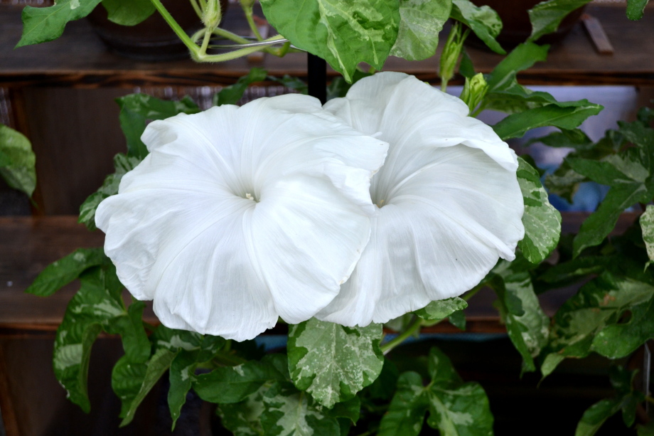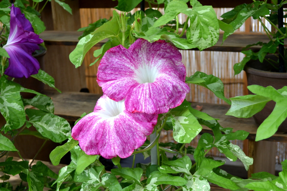 靖国神社で行われている朝顔展に行きました。早朝から行きましたが、朝顔の花が大きく、綺麗に咲いている花は少なかった感じです。 茶色の朝顔も多く、色々な朝顔の花がありました。暑い時期に靖国神社に行くことは多少気になりました。