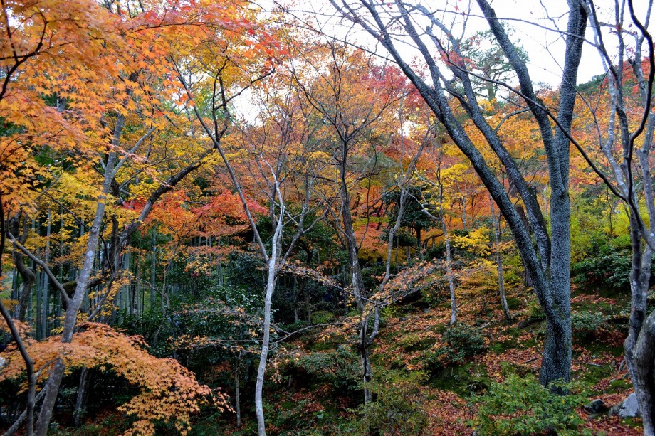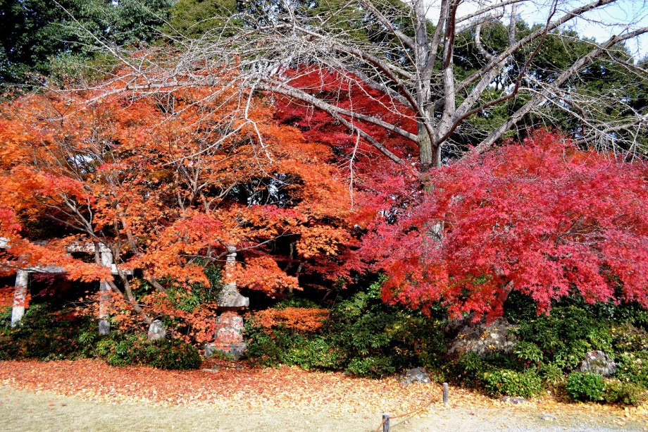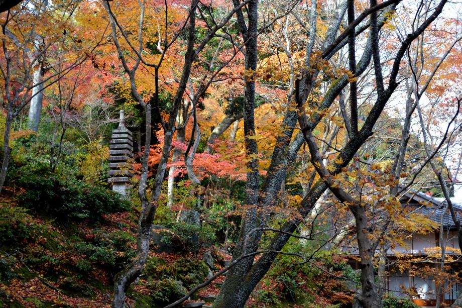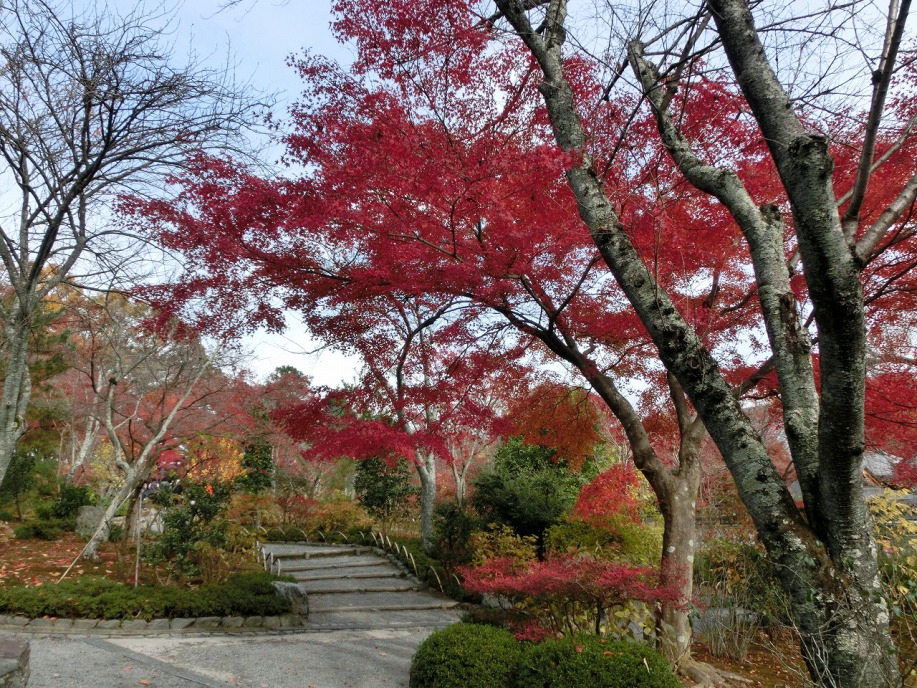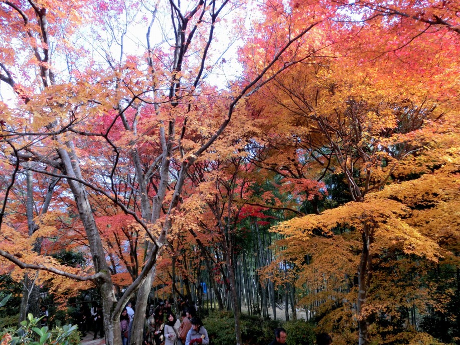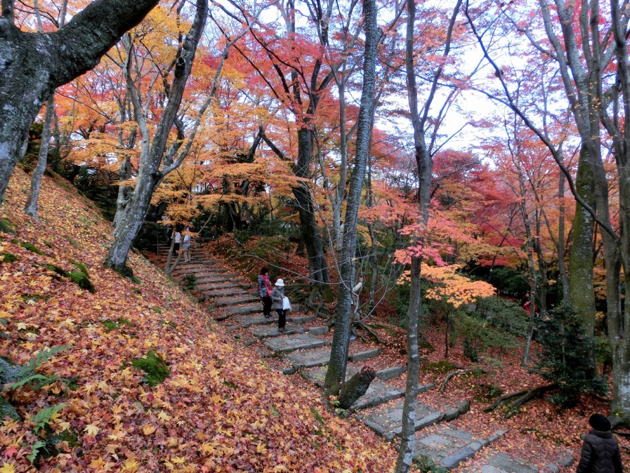 常寂光寺も裏山に登り、紅葉や黄葉が綺麗でしたが、山登りという感じで疲れました。