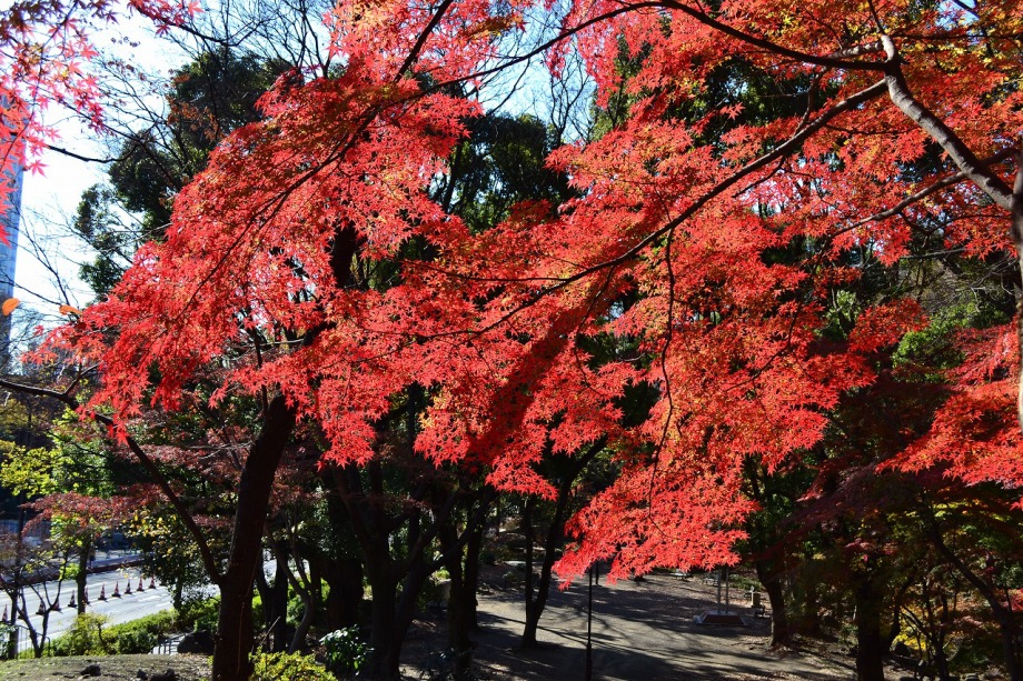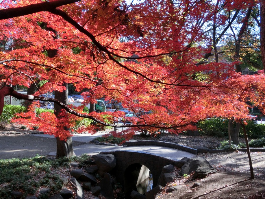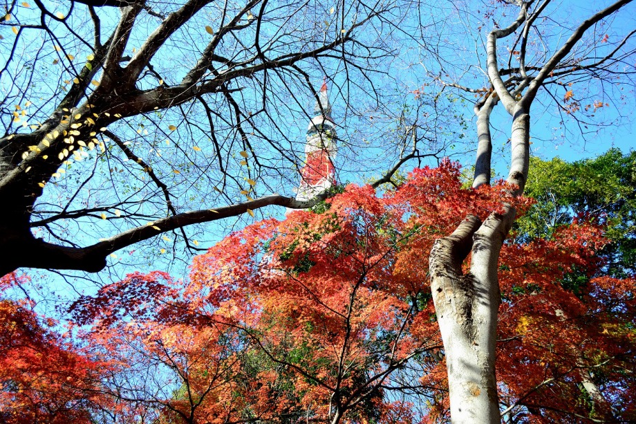 東京タワーに下の”もみじ谷”に紅葉を見に行った。都心とは思えないような滝があり、小川が流れているところに