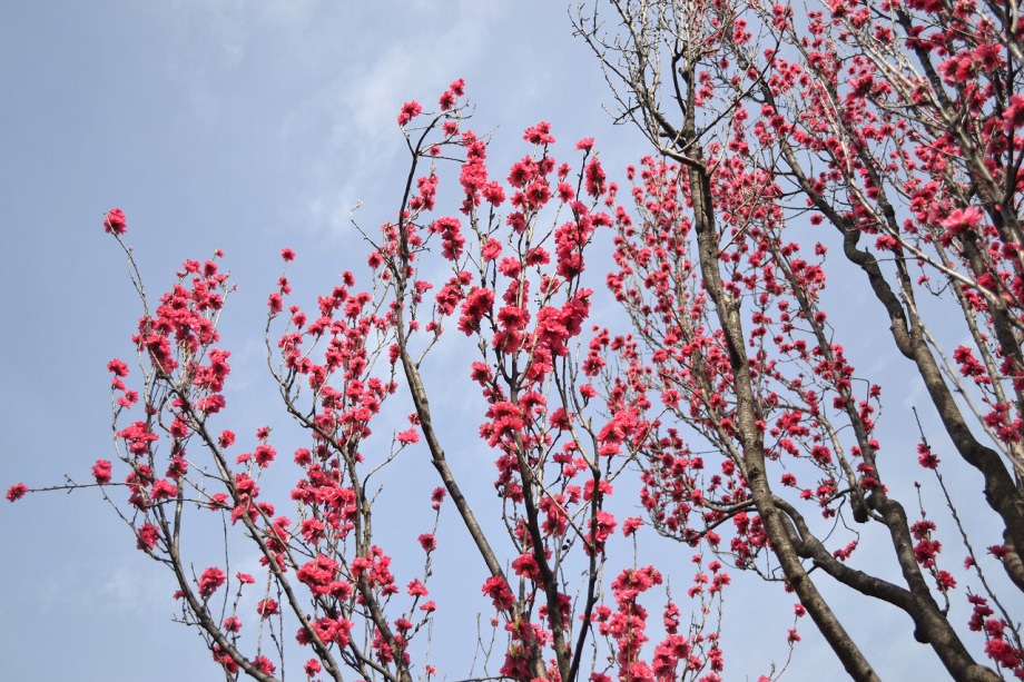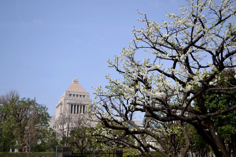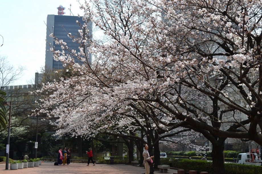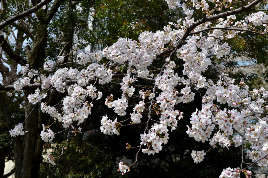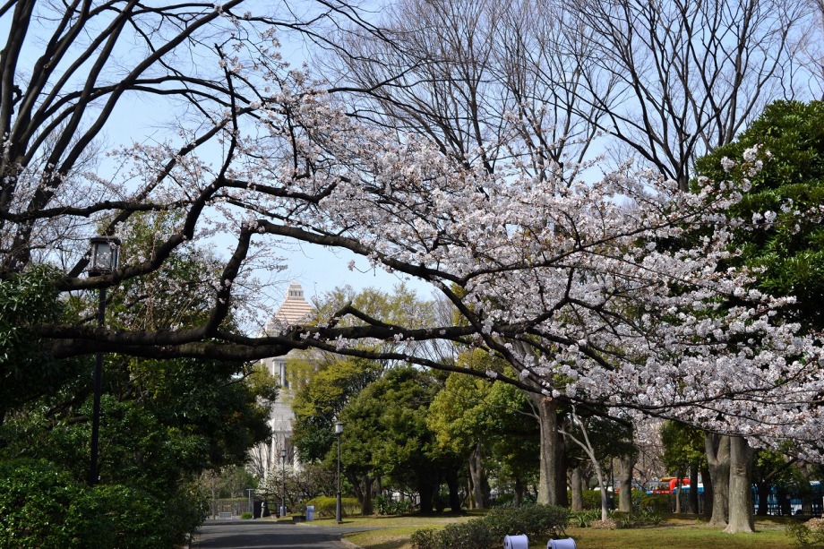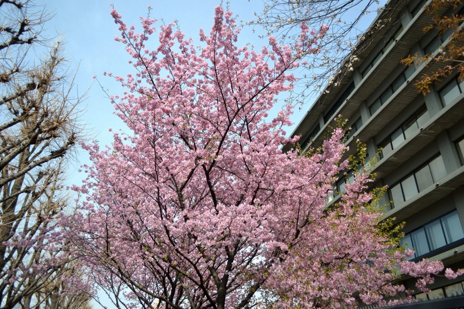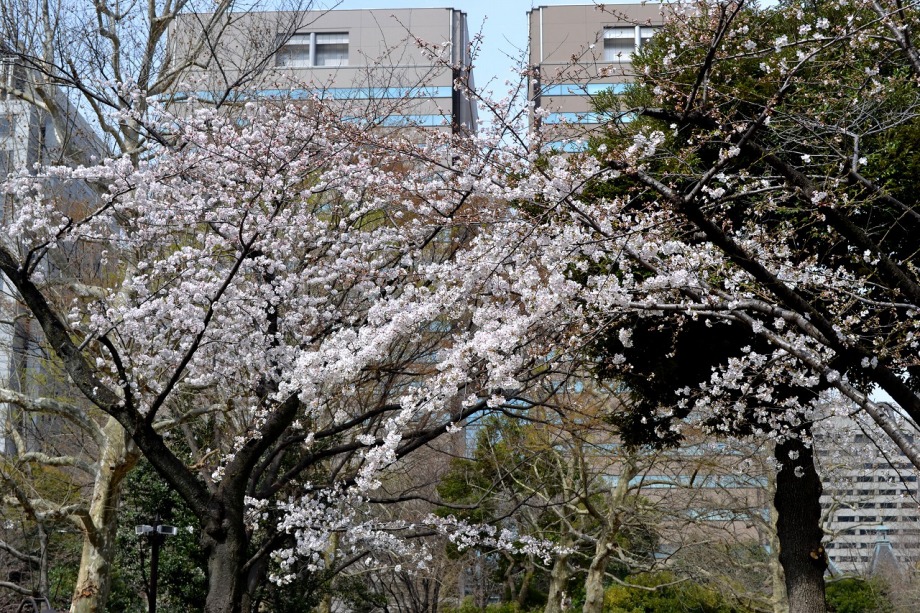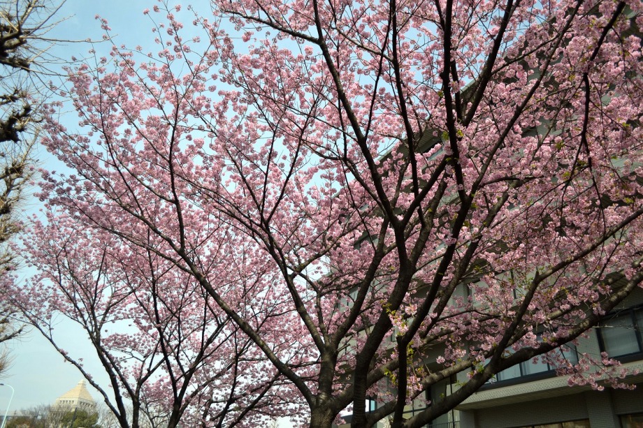 暖かくなりましたので、桜の写真を撮りに行きました。桜が早く咲く外務省に行きましたら、染井吉野桜は既に咲いていました。奥に、 ピンク色の桜が咲いていました、鳥が沢山集まっていました。日比谷公園も桜が咲いていました。