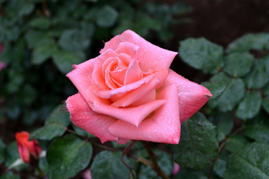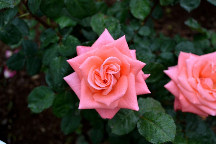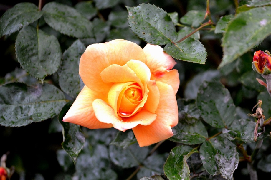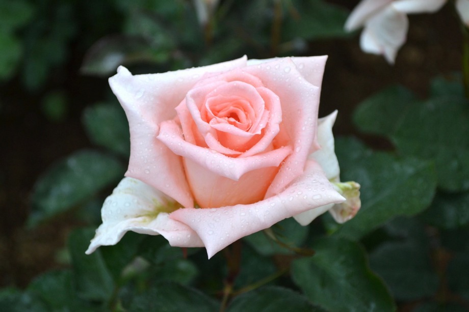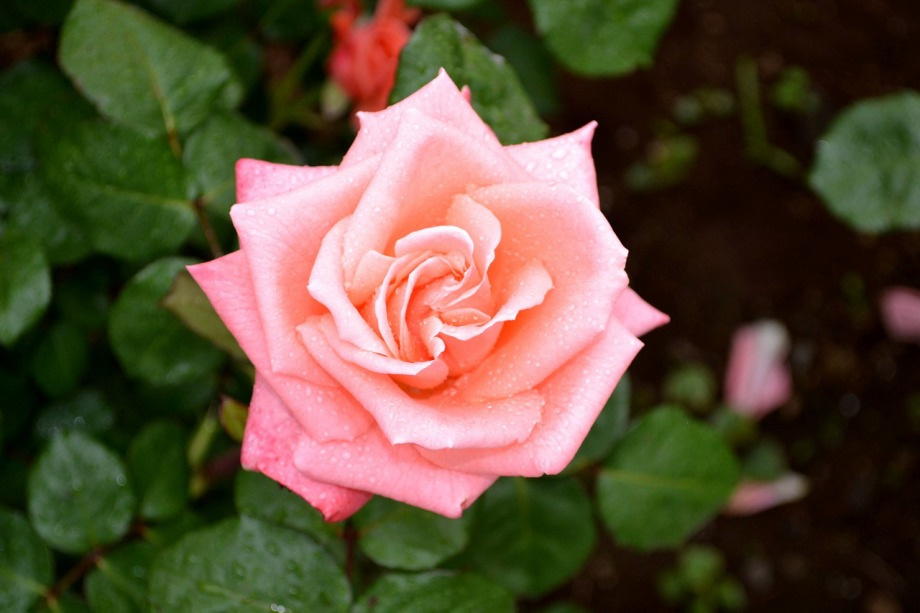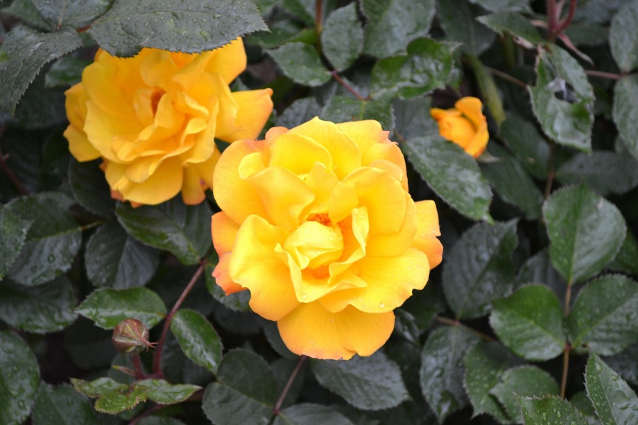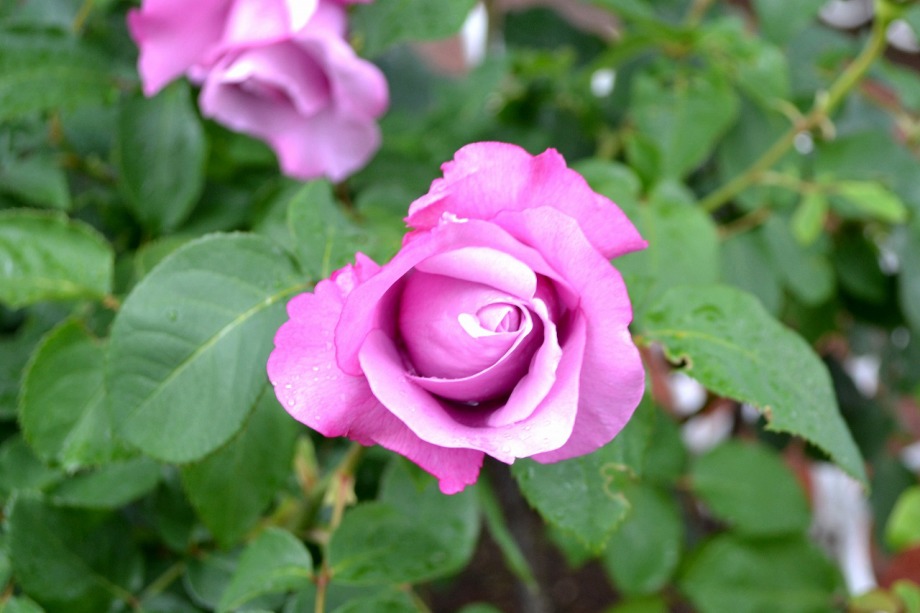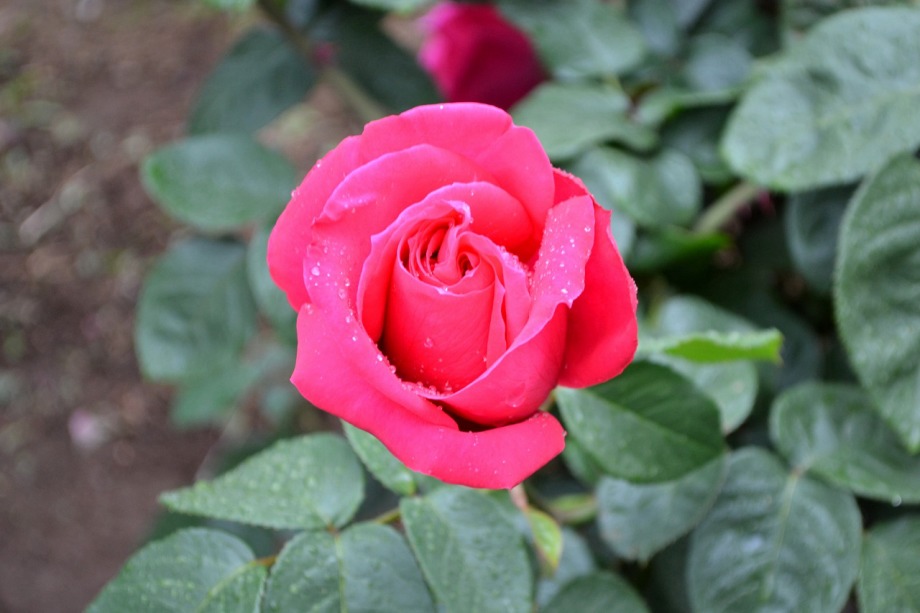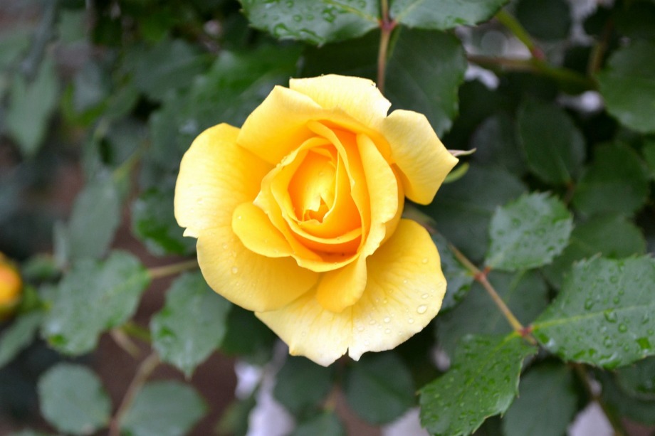 写真を撮り始めると小雨が降ってきて、バラに水滴がついて、いつもと違う感じになった。
