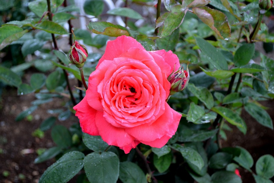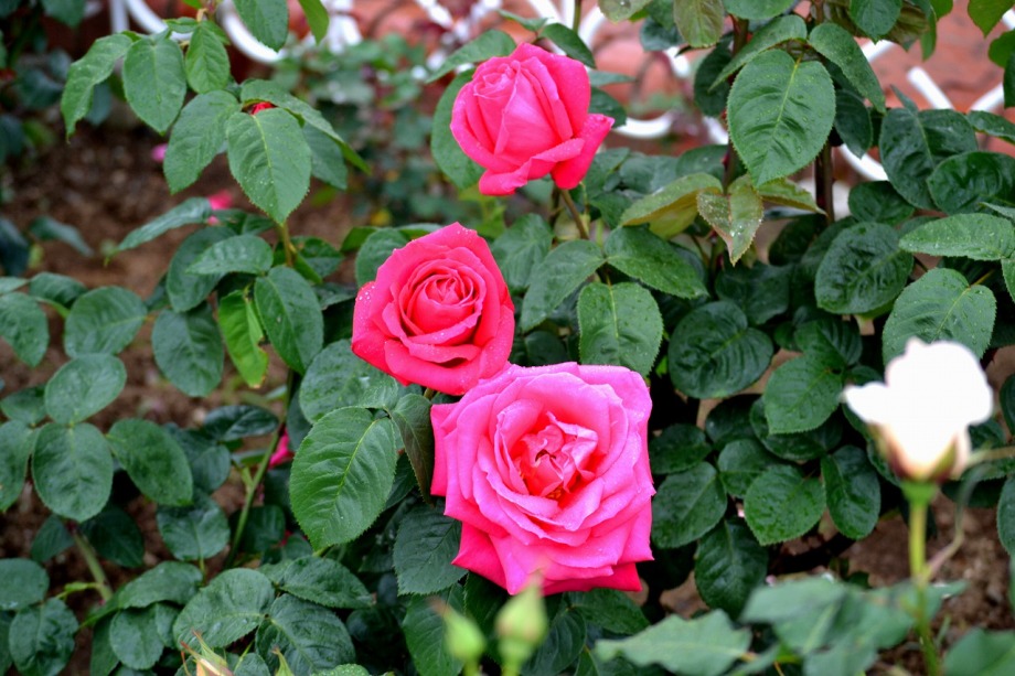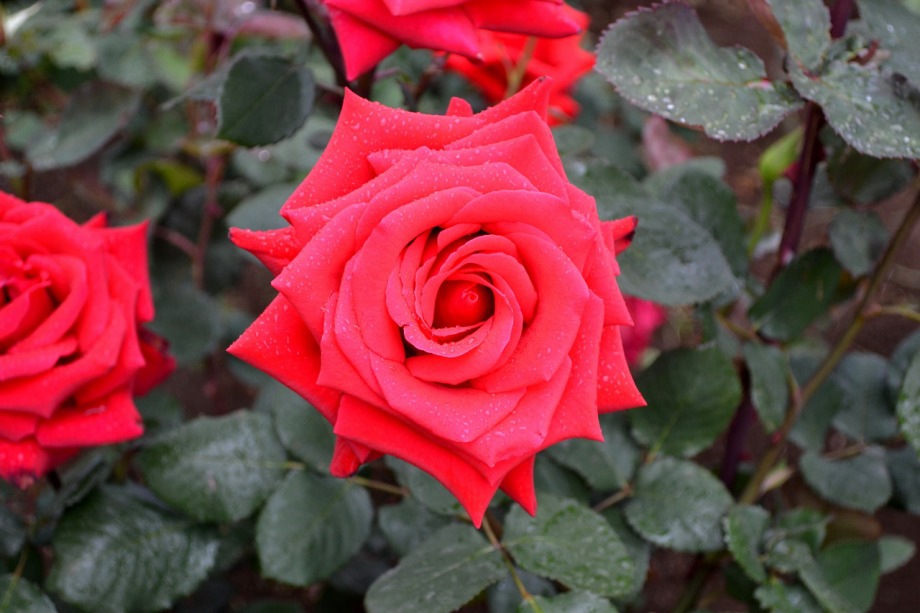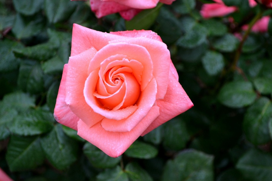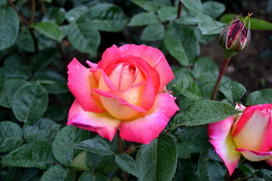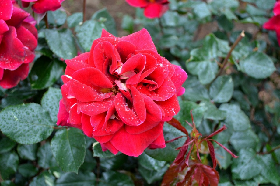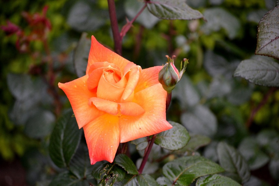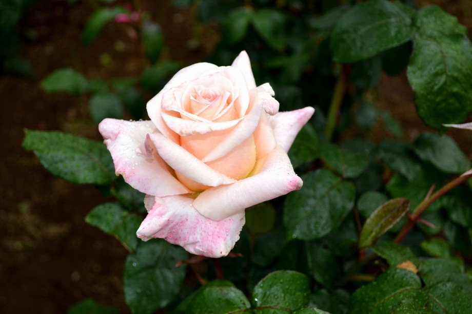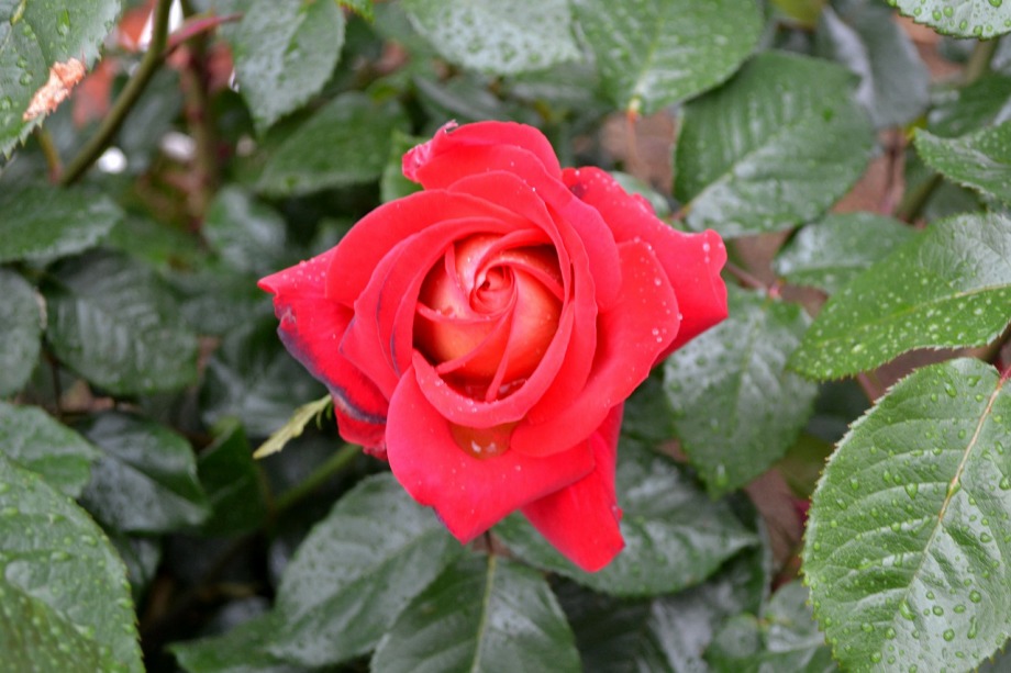 写真を撮り始めると小雨が降ってきて、バラに水滴がついて、いつもと違う感じになった。