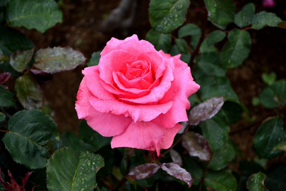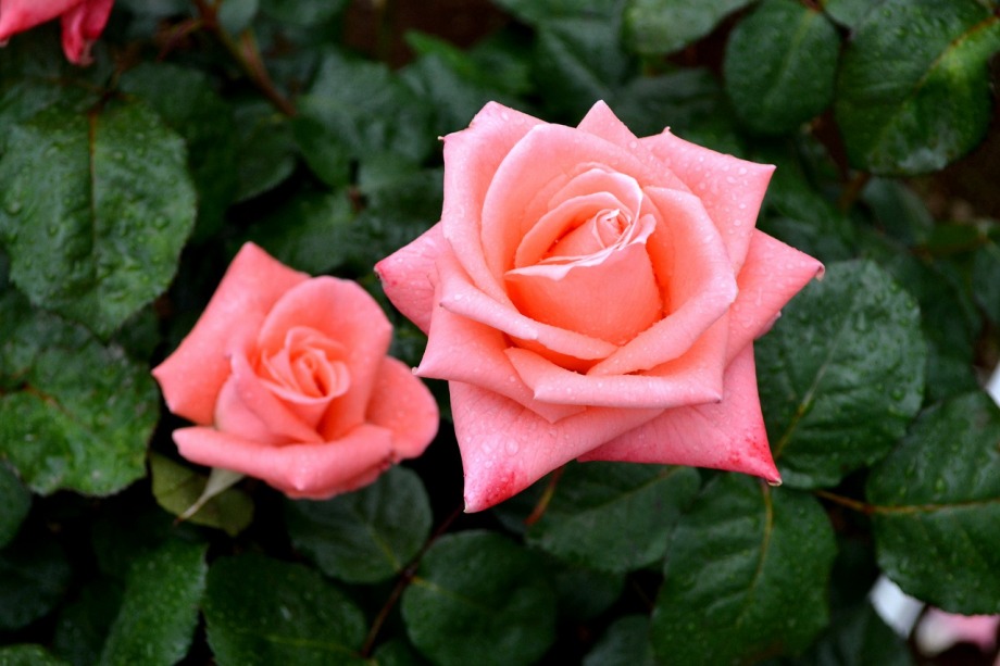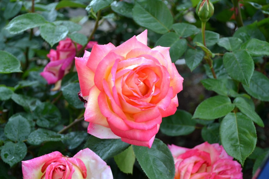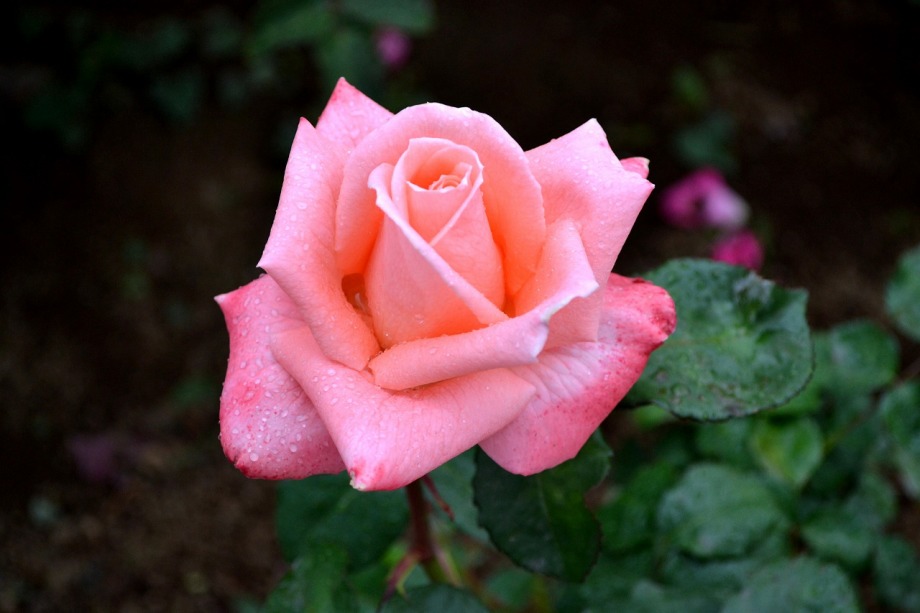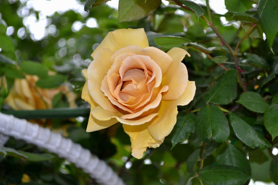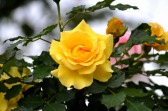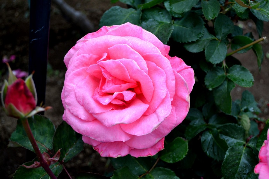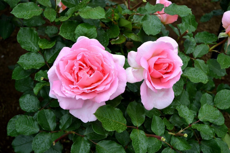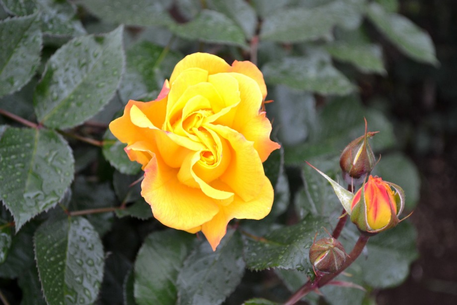 写真を撮り始めると小雨が降ってきて、バラに水滴がついて、いつもと違う感じになった。