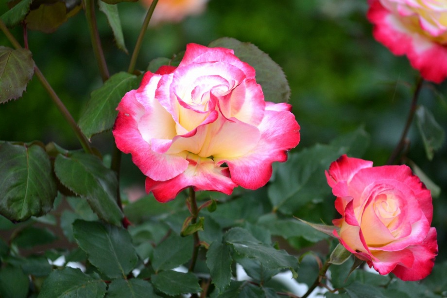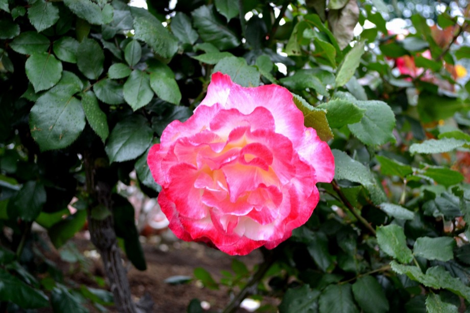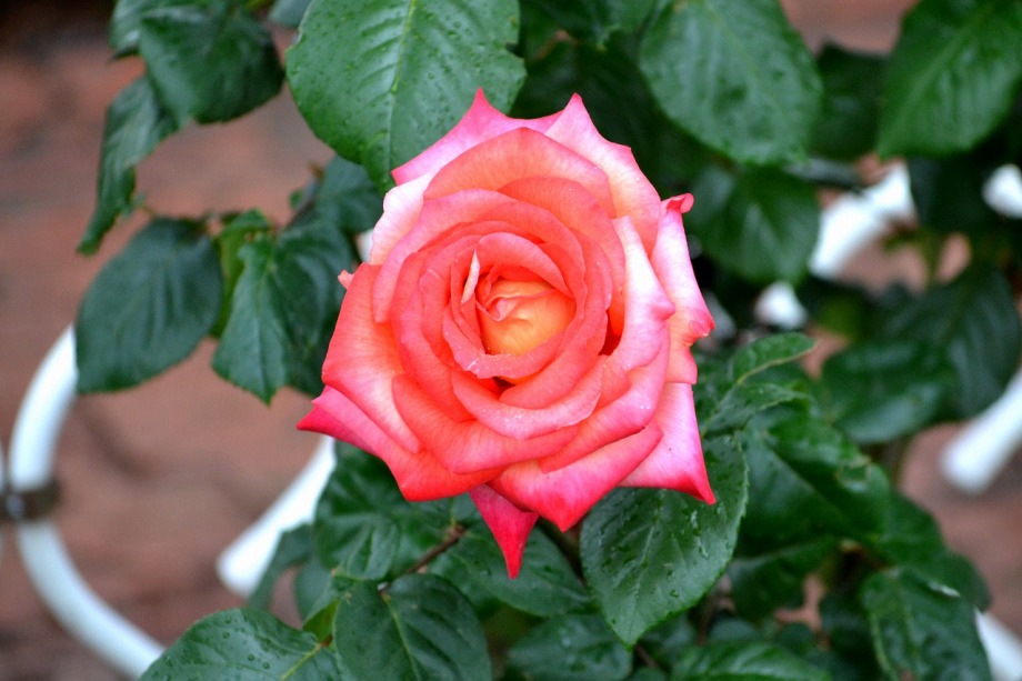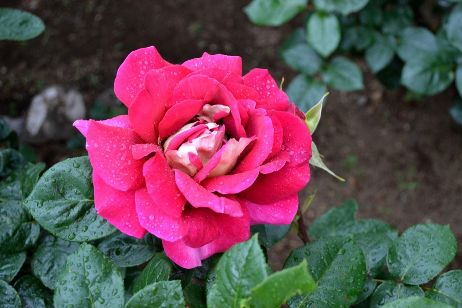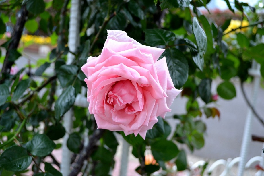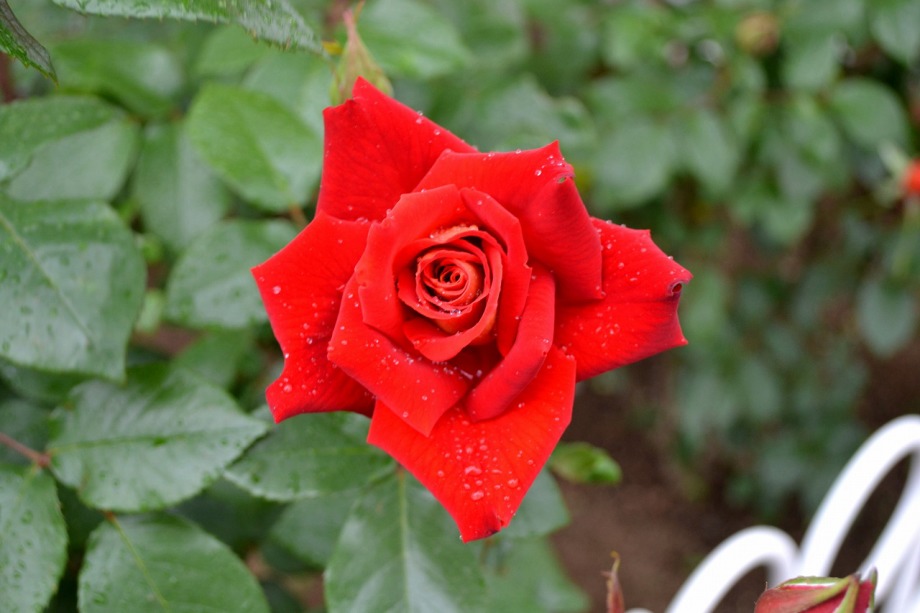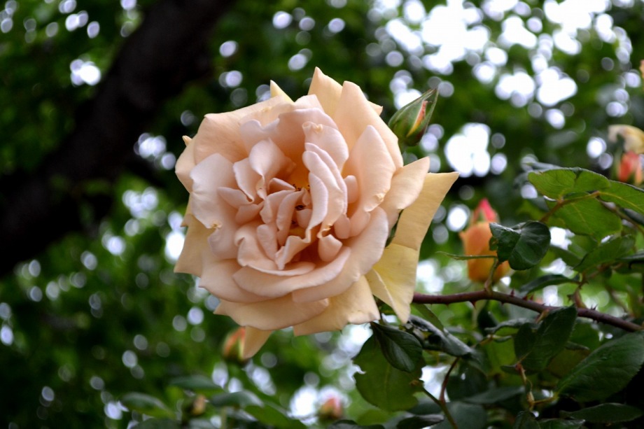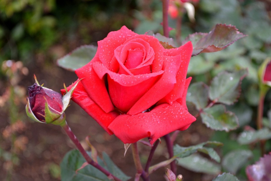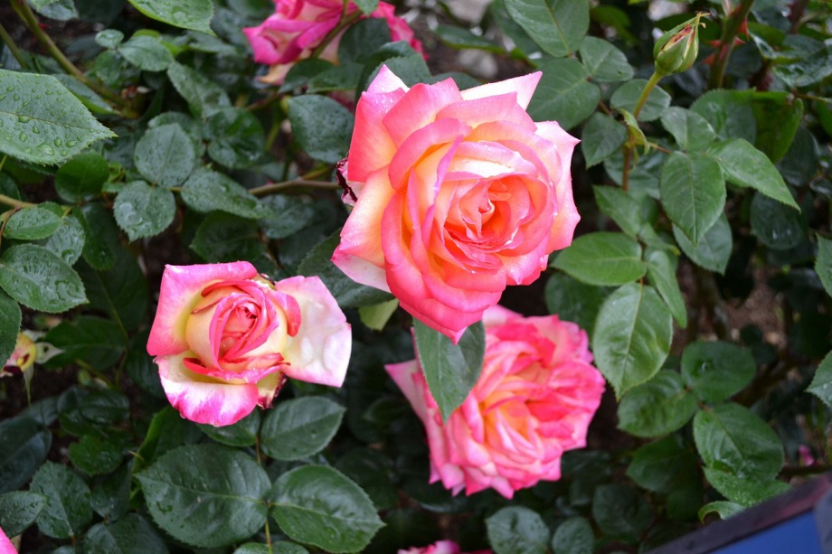 写真を撮り始めると小雨が降ってきて、バラに水滴がついて、いつもと違う感じになった。