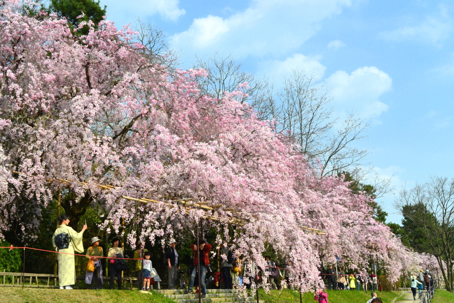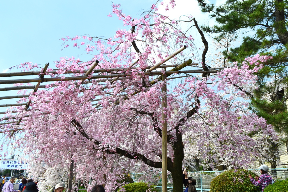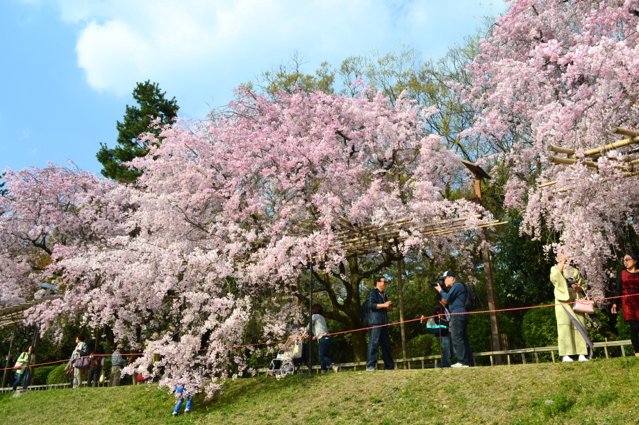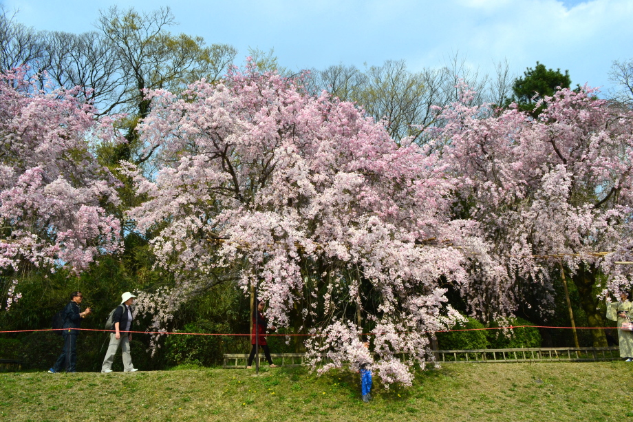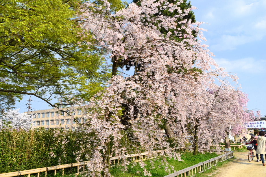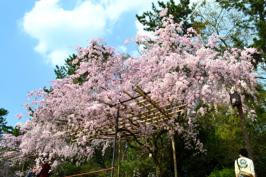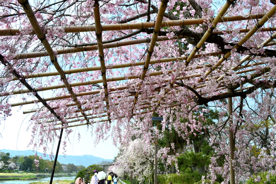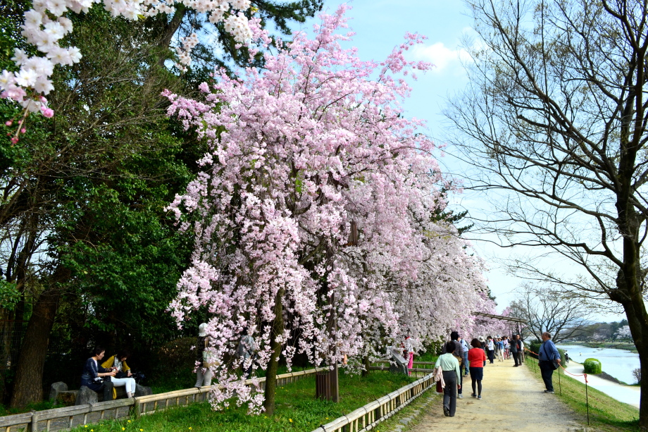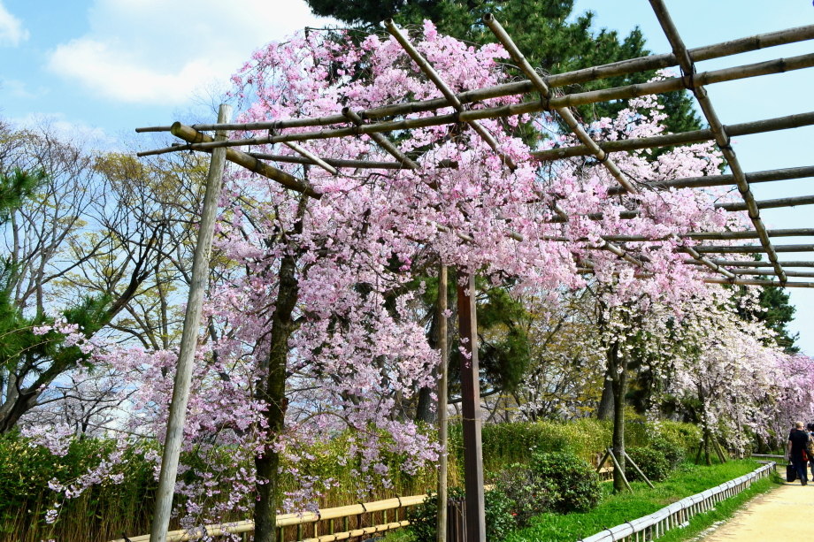 「感想」 京都植物園を見た後、半木の道の桜を見に行った。しだれ桜の花が満開の状況で、道沿いの桜は綺麗だった。