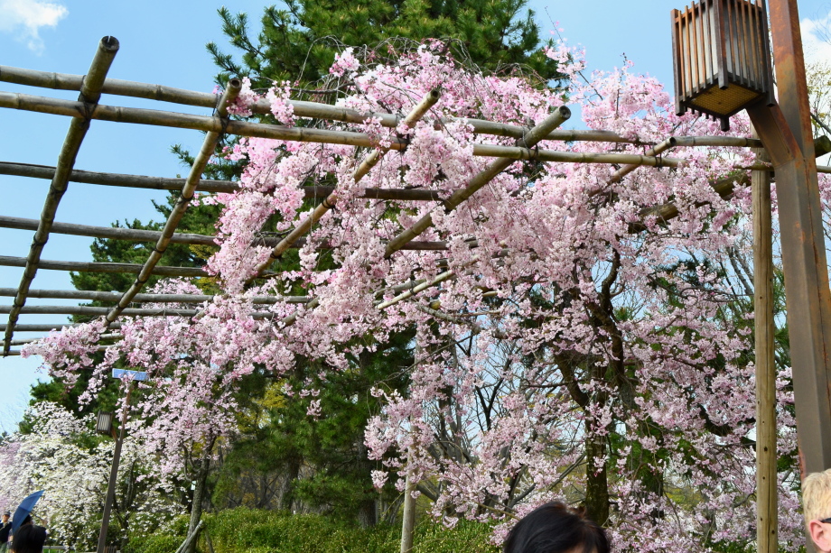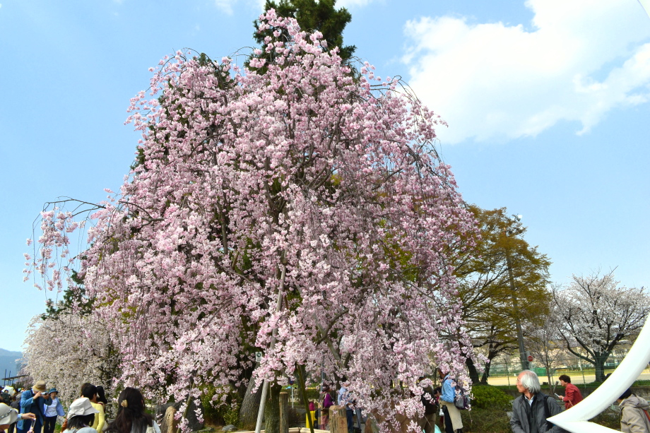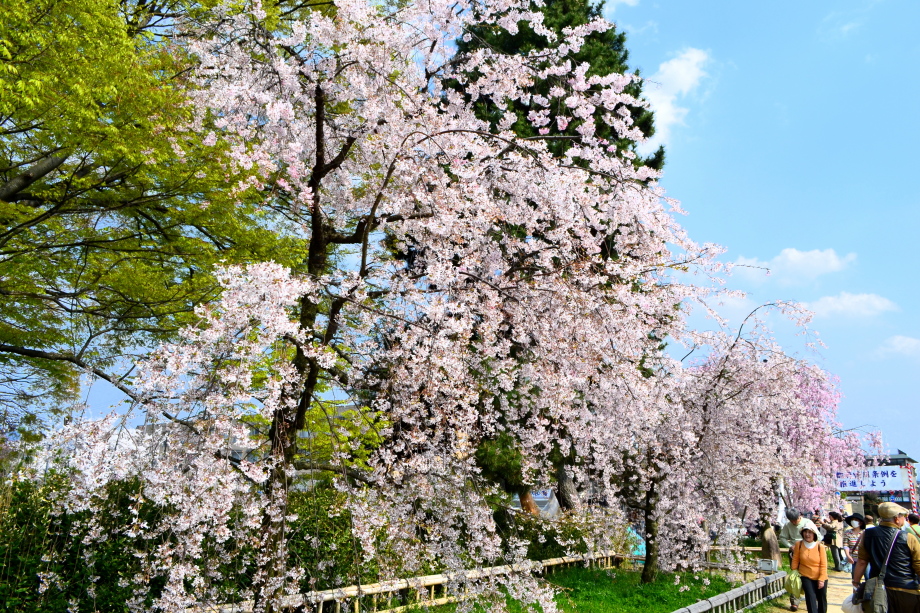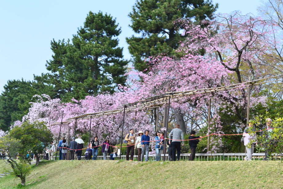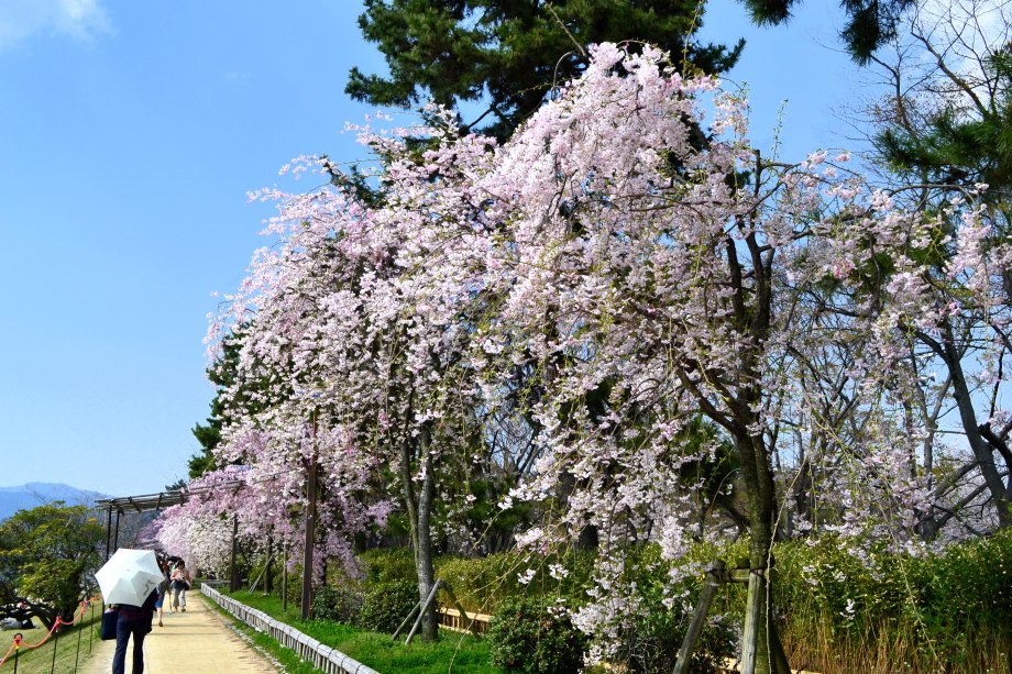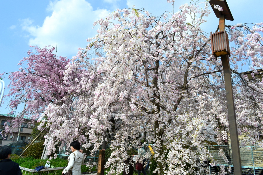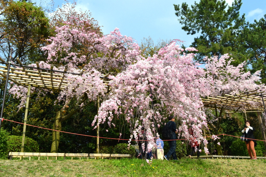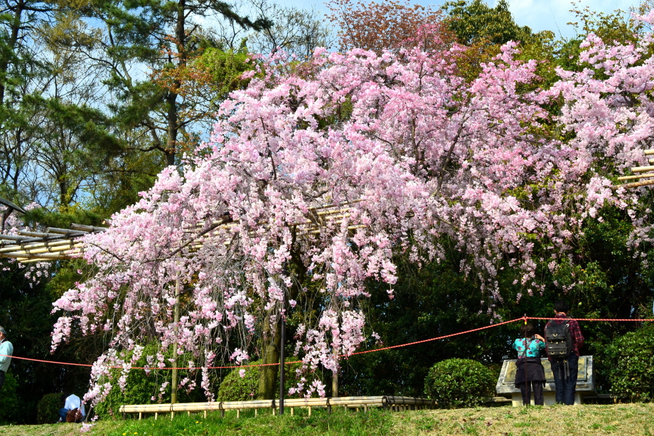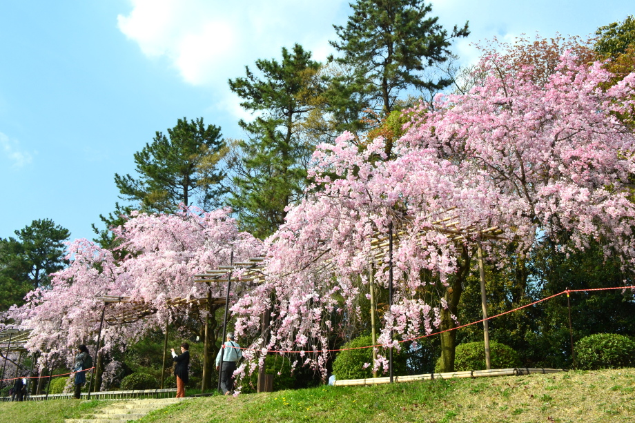 「感想」 京都植物園を見た後、半木の道の桜を見に行った。しだれ桜の花が満開の状況で、道沿いの桜は綺麗だった。