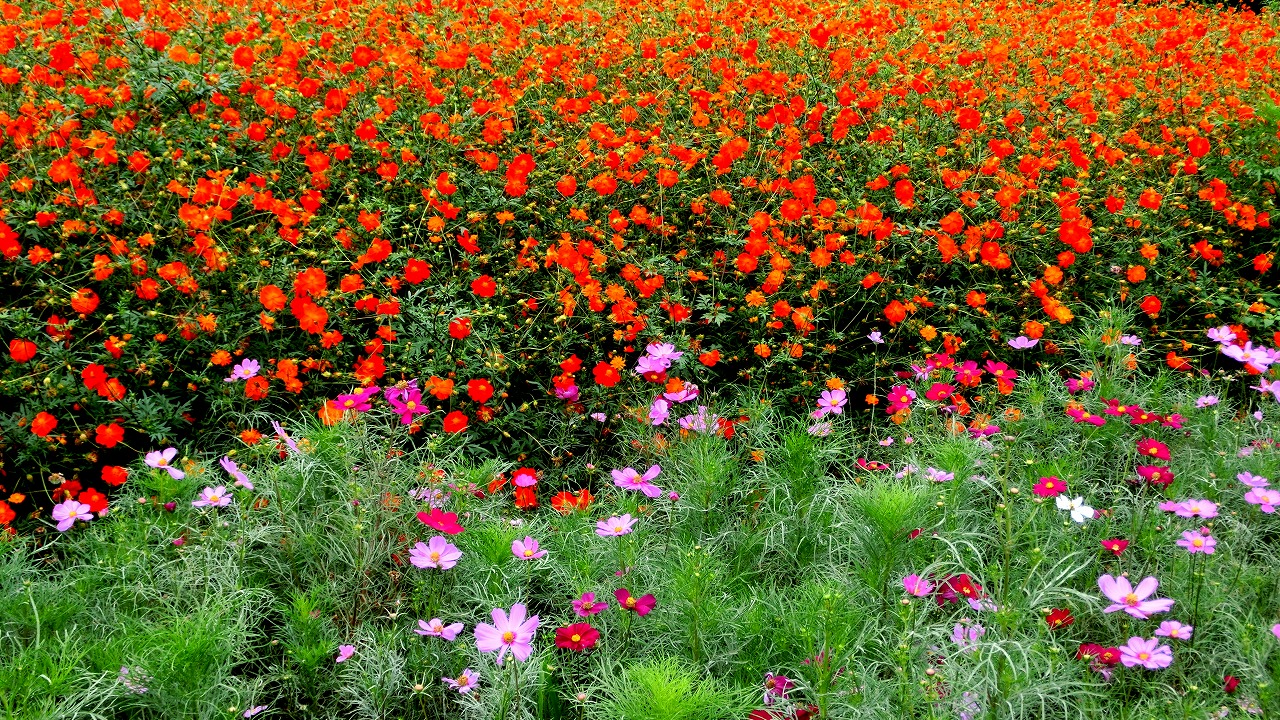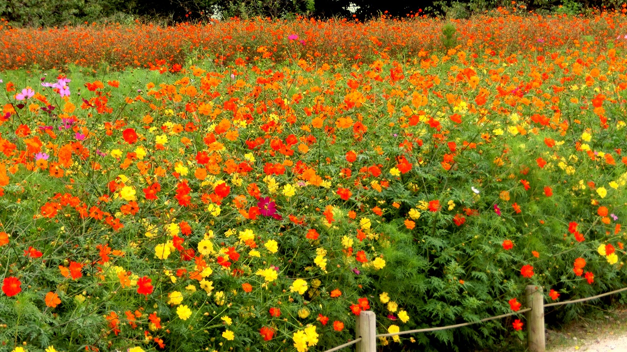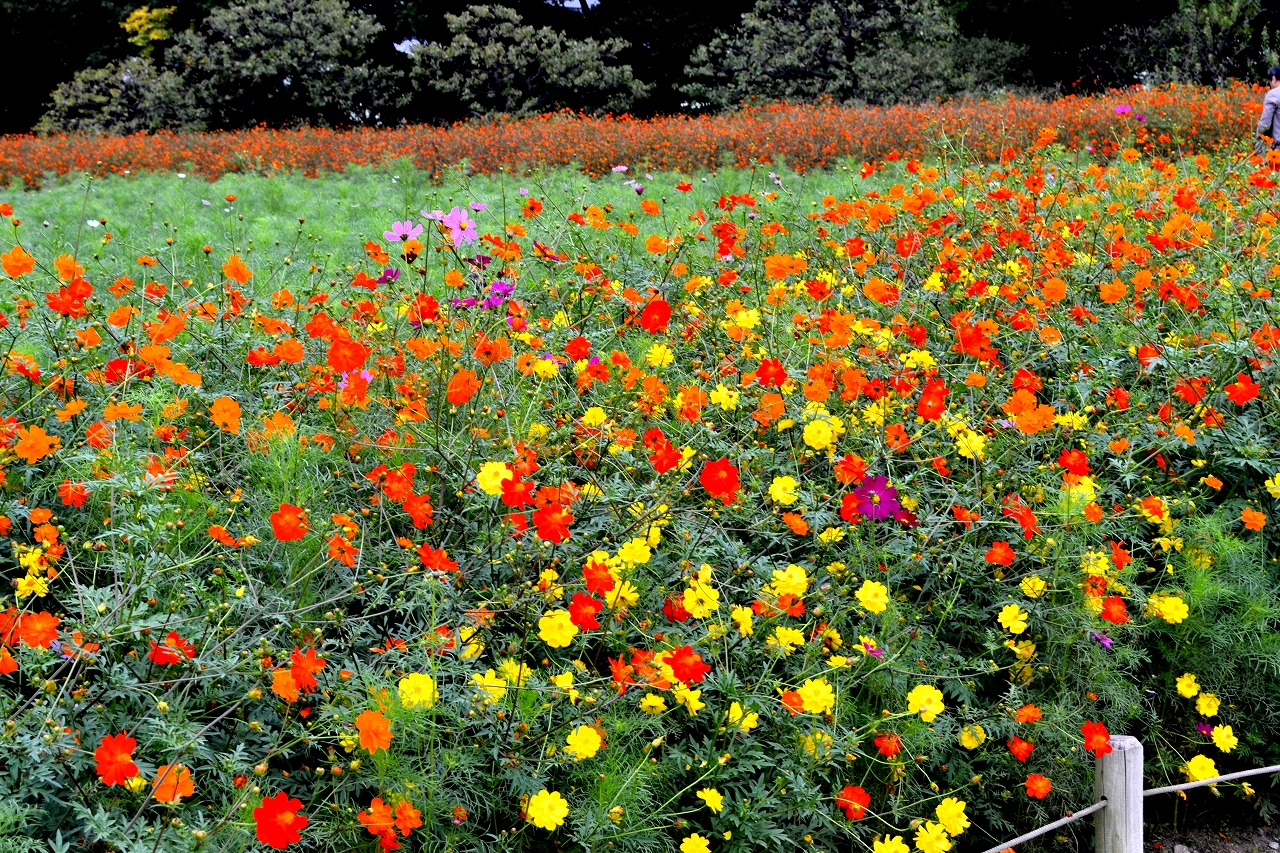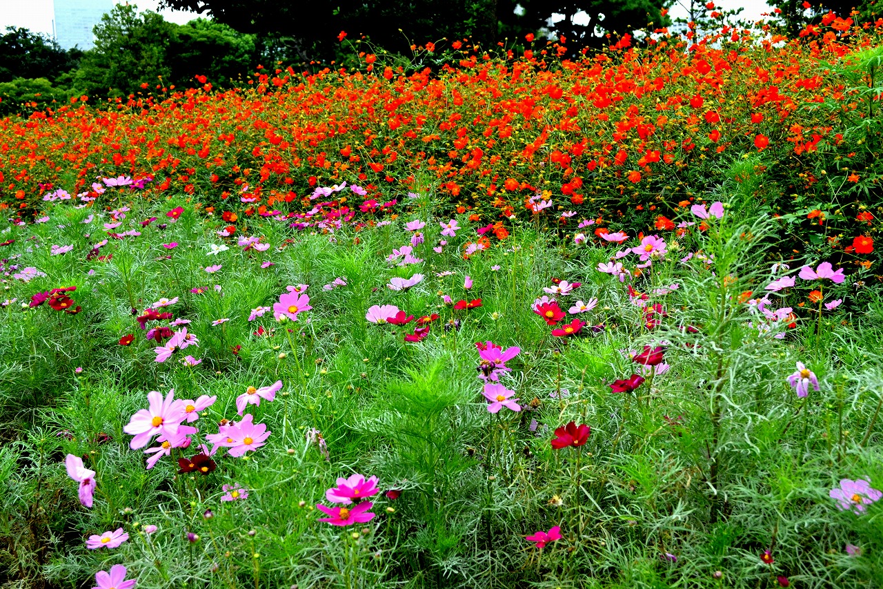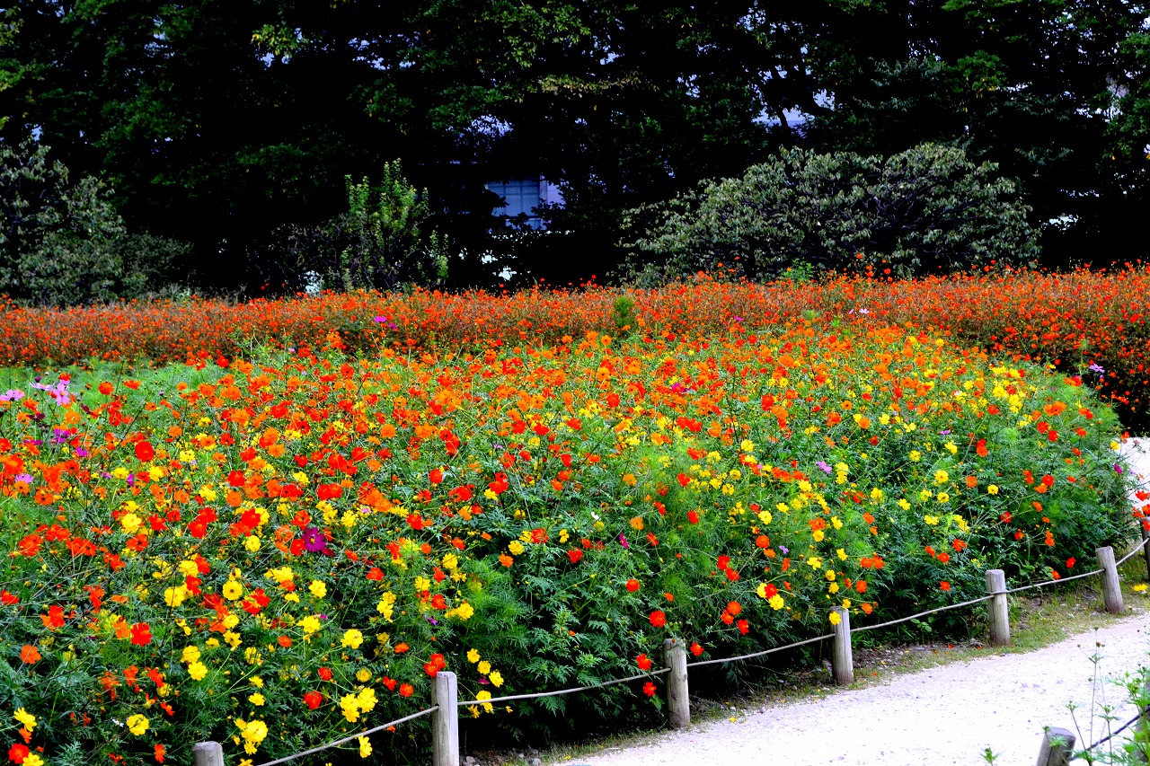 「感想」浜離宮に彼岸花を見に行きました。彼岸花は見頃でしたが、昨年に比べると花の数が少ない感じです。 キバナコスモスも盛りは過ぎた感じですが、まだまだ、沢山の花が咲いていました。コスモスも咲き始めて いて、綺麗でした。敬老の日だったのか、今週は60歳以上は入園料が無料でした。